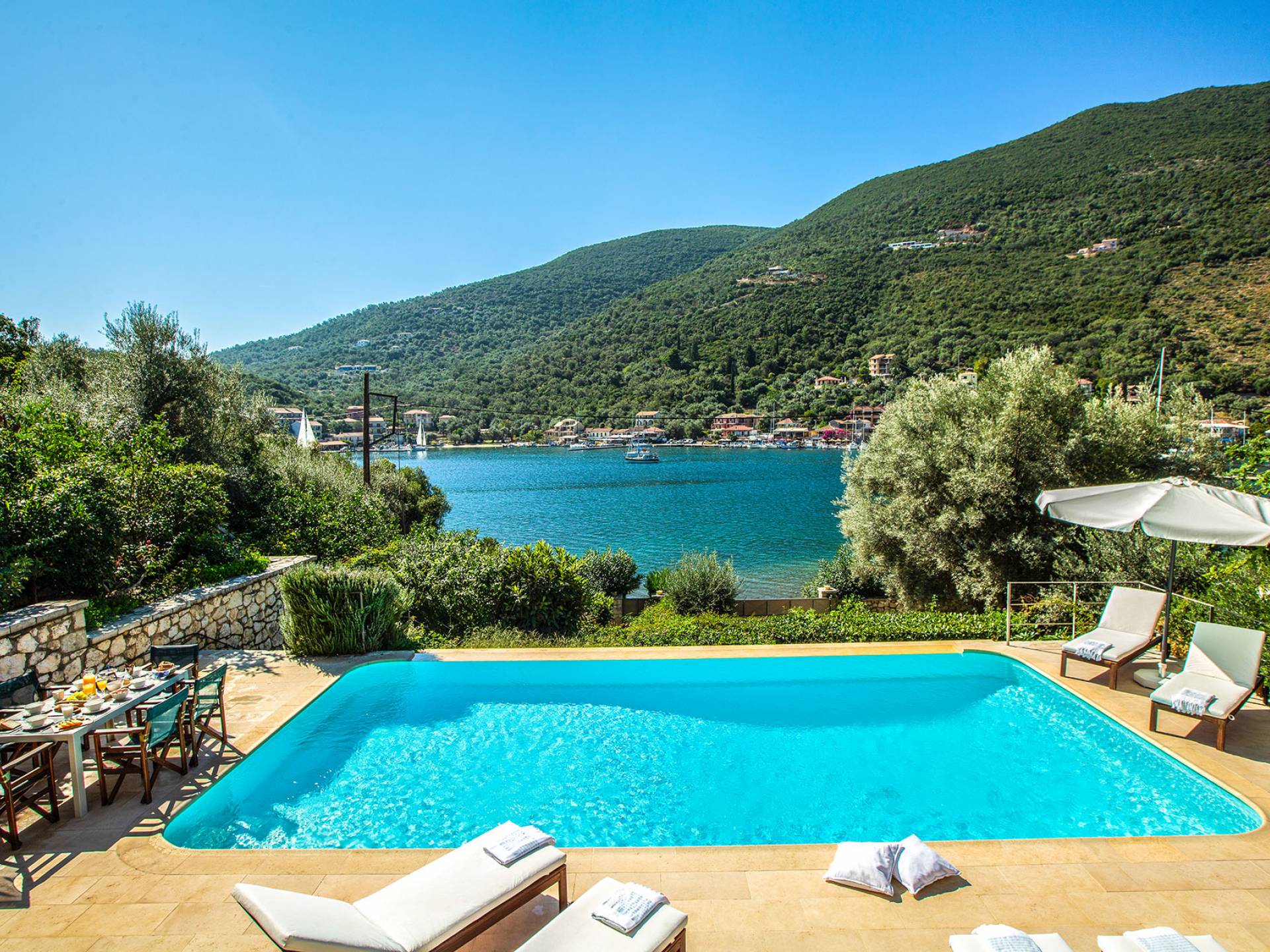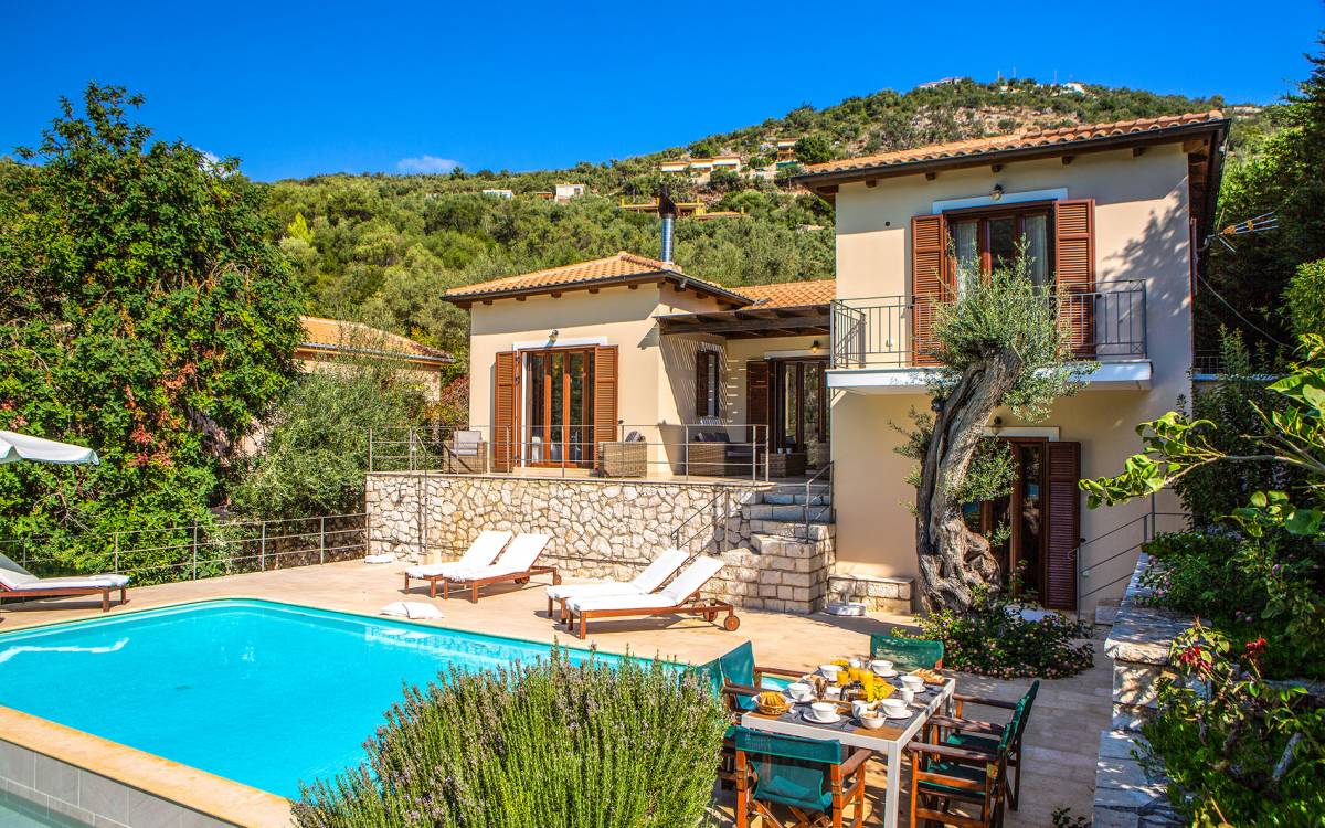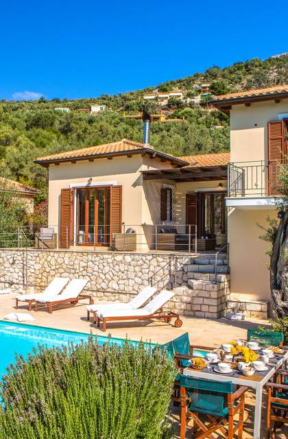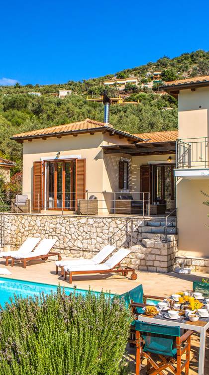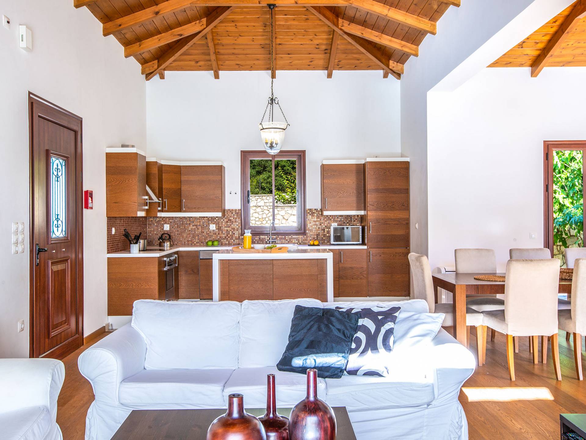 Villa Christina bei Arodo Villas Lefkada ist eine Luxusvilla mit 4 Schlafzimmern und privatem Pool. Eine Villa von auffallender Schönheit, deren 145 m2 bis zu 8 Gäste beherbergen können. Es besteht aus einem einheitlichen Erdgeschoss mit Küche, Wohnzimmer und Esszimmer, während die 4 Schlafzimmer und die 2 Badezimmer auf 2 Ebenen verteilt sind und den Vorteil der Unabhängigkeit auch innerhalb der Familie oder innerhalb der Gruppe von Freunden bieten, die in der Villa wohnen. Holzdächer, exquisite dekorative Artefakte und Kunstwerke und ein uneingeschränkter Blick auf das Meer schaffen eine charmante, friedliche und luxuriöse Umgebung für Ihren Urlaub.