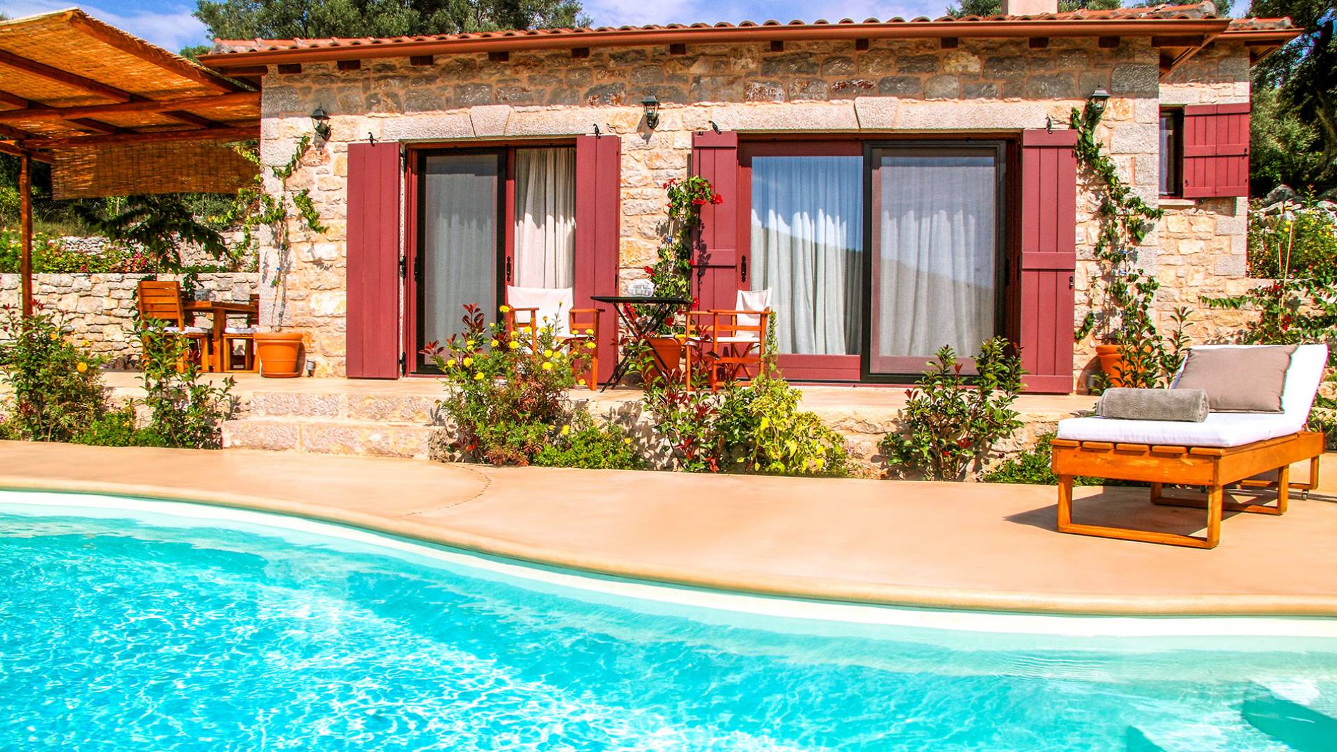 Um jeden Pool herum gibt es Holzsonnenliegen mit bequemen Kissen und persönlichen Handtüchern, eine Dusche, ein Tagesbett und Steinsofas im Schatten der Odas oder des natürlichen Schattens der umliegenden Bäume. All dies zusammen mit den bunten Blumen und Pflanzen bilden eine besondere Harmonie. Von den Farben des Sonnenaufgangs bis zum Sonnenuntergang, vom wohltuenden Tageslicht bis zum Nachthimmel, mit den Düften der Natur und den Geräuschen der Stille ist der Poolbereich definitiv der ideale Ort für die schönen Momente Ihres Urlaubs. Die Pools werden zweimal pro Woche vom Verantwortlichen gereinigt. Auf der Unterseite des Pools und des Grundstücks führt ein Weg einfach und schnell zum Meer. Dort können Sie im kristallklaren Wasser schwimmen oder ein Boot für weiter entfernte Erkundungen zu den schönen Stränden der Insel warten lassen.