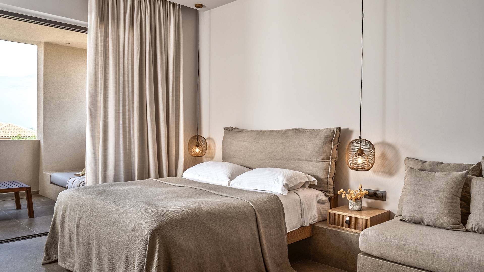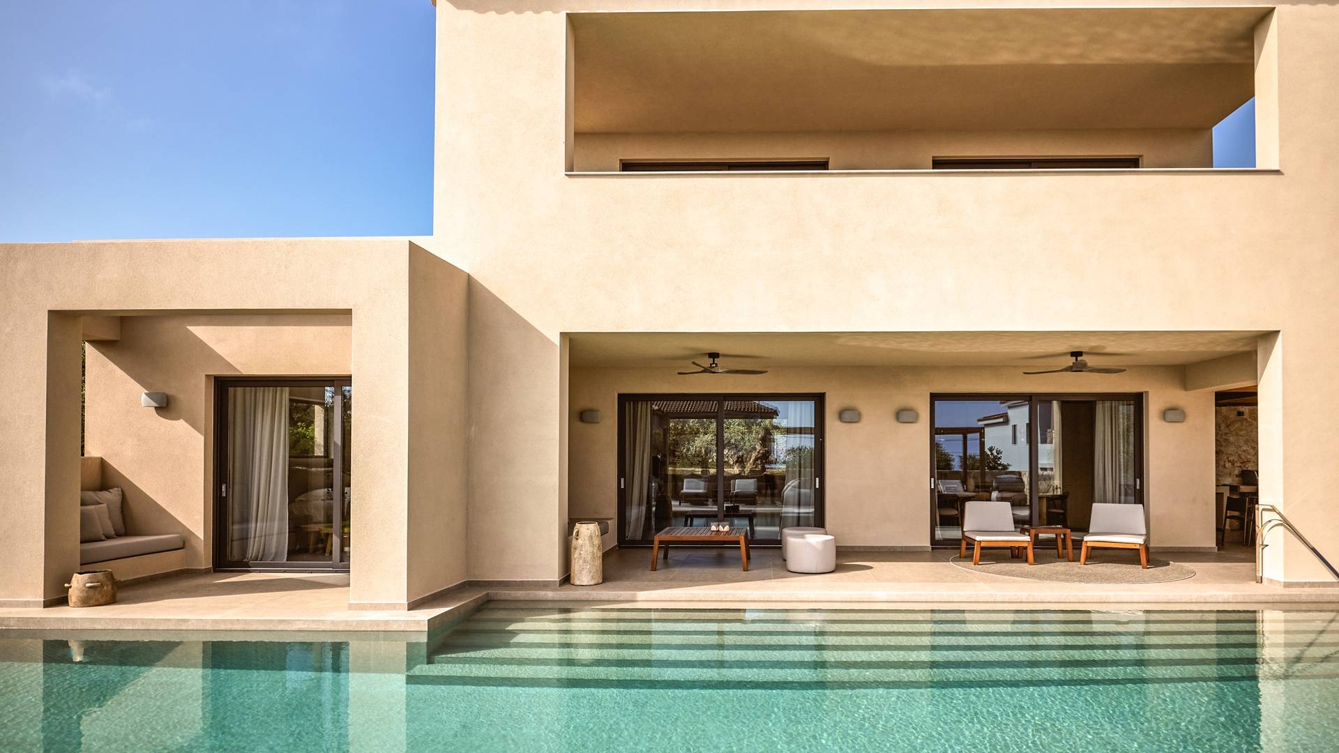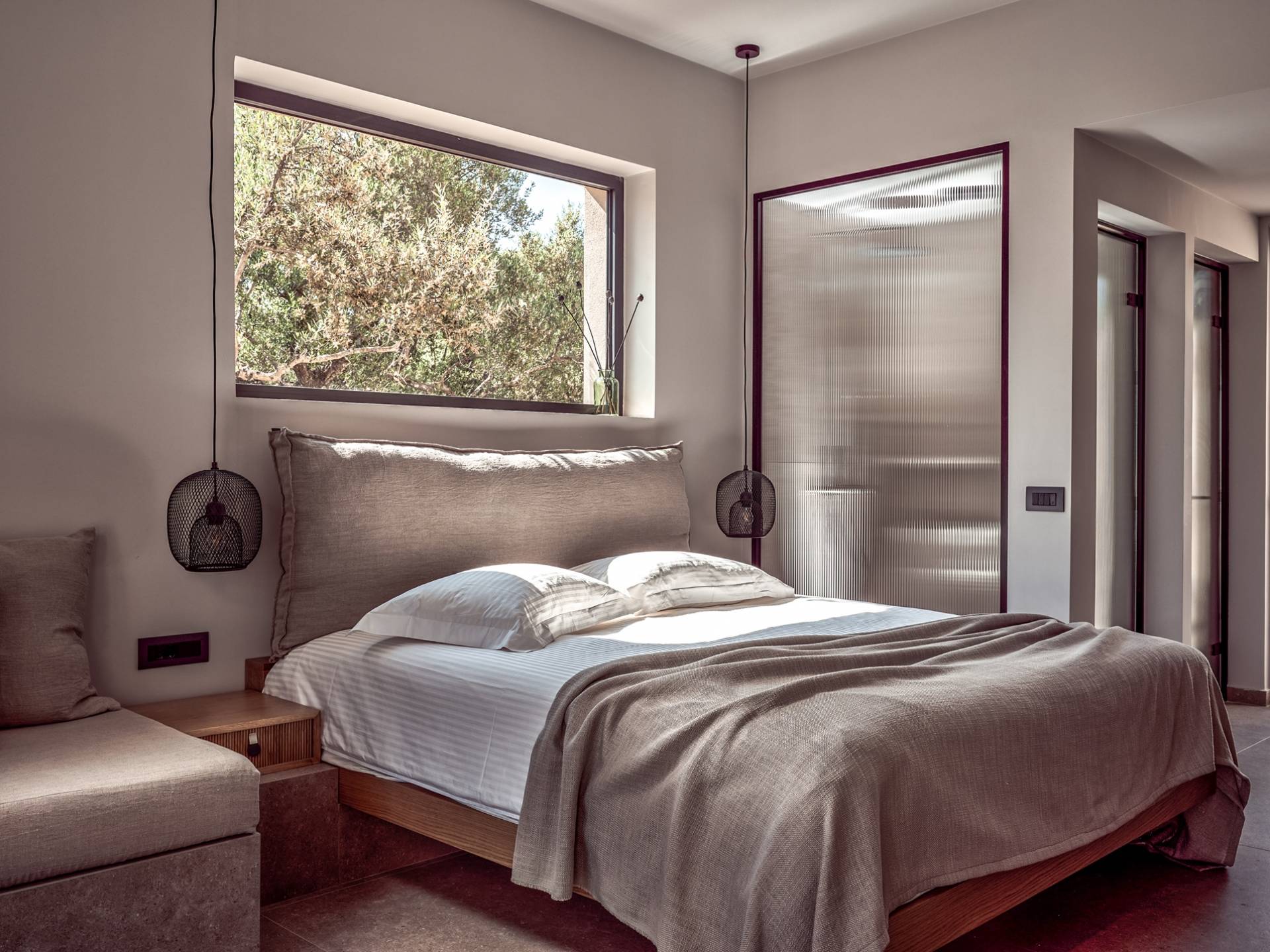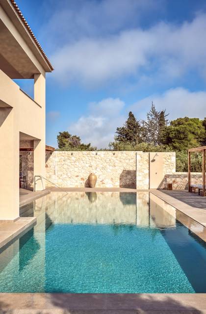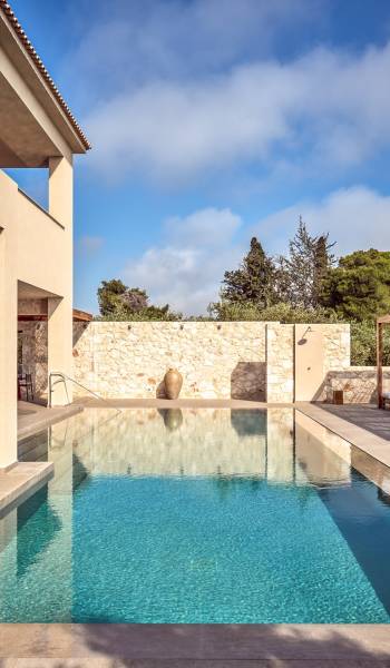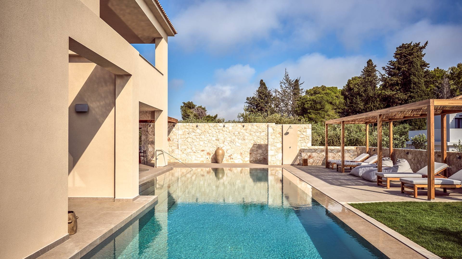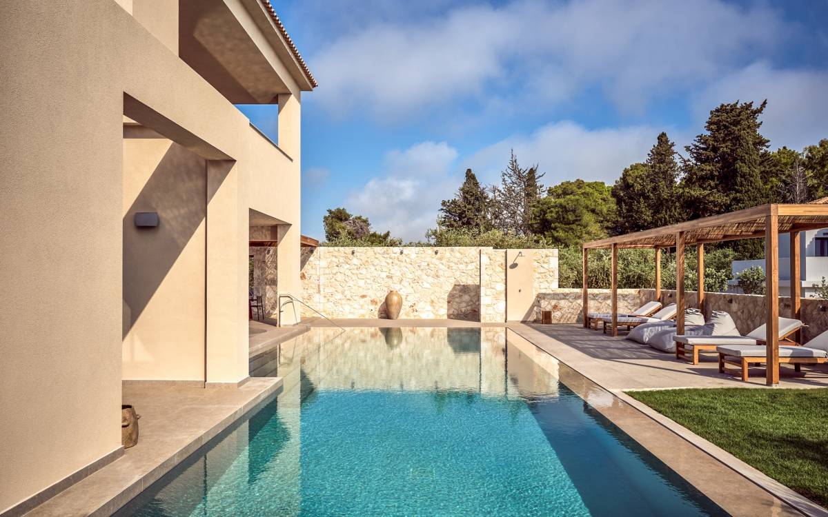 Alle Zimmer sind komplett mit Coco-Mat-Betten, Atlas-Matratzen, Iviskos-Obermatratzen und Kyriaki-Toppern (hochwertige griechische Naturmatratzen und Schlafprodukte) ausgestattet und verfügen über Klimaanlage und LED-Fernseher. Es gibt Sonnenliegen am privaten Swimmingpool (5mx15m). Die Villa verfügt außerdem über ein Alarmsystem, um die Sicherheit der Gäste zu gewährleisten.