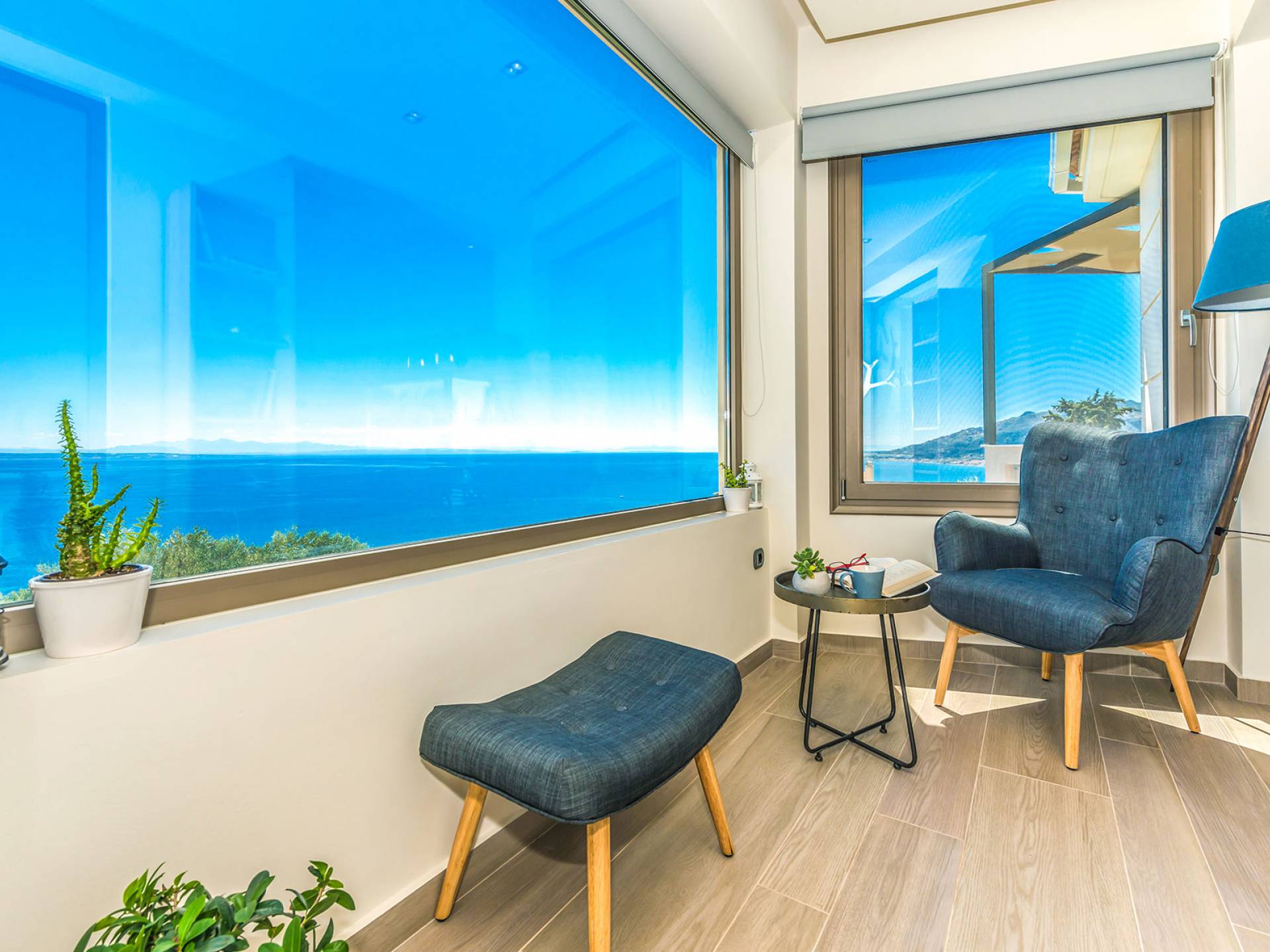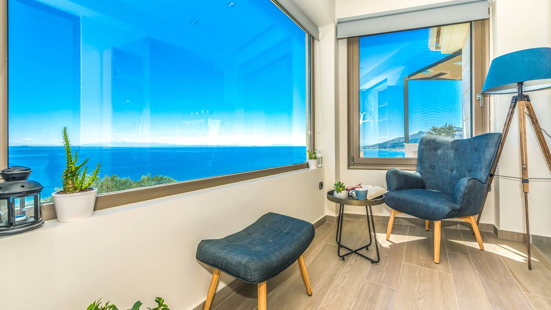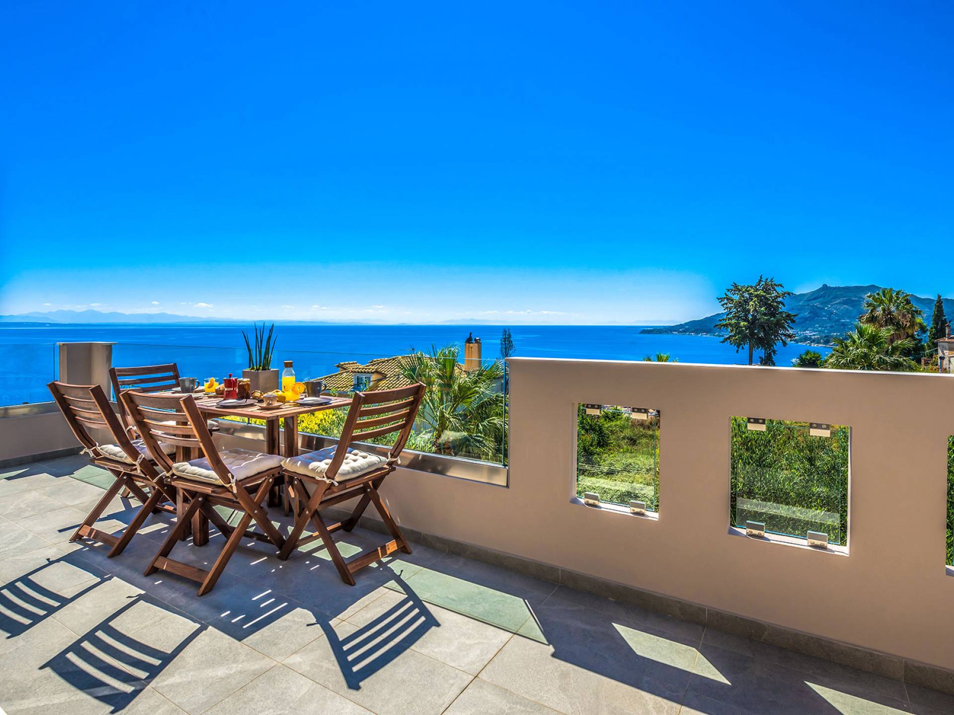 Sie werden von einer privaten Auffahrt begrüßt, die zur Pasithea Elegant Villa Zante führt, einem gesicherten Privatparkplatz, gepflegtem Gras auf mehreren Ebenen, einem Steingrill und einem schöner Garten mit bunten Blumen. Genießen Sie etwas Sonne, speisen Sie auf dem Balkon mit Meerblick oder legen Sie sich einfach auf das Gras und genießen Sie die magische Landschaft...