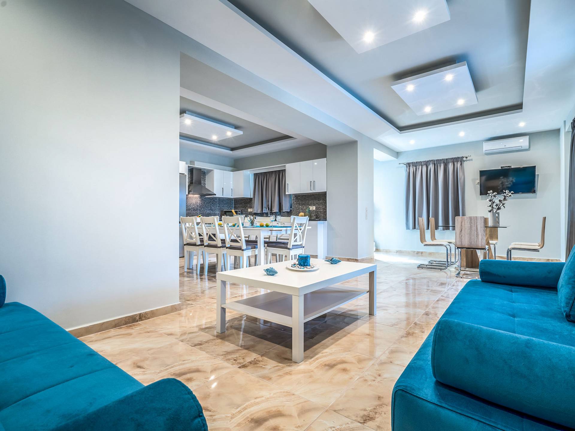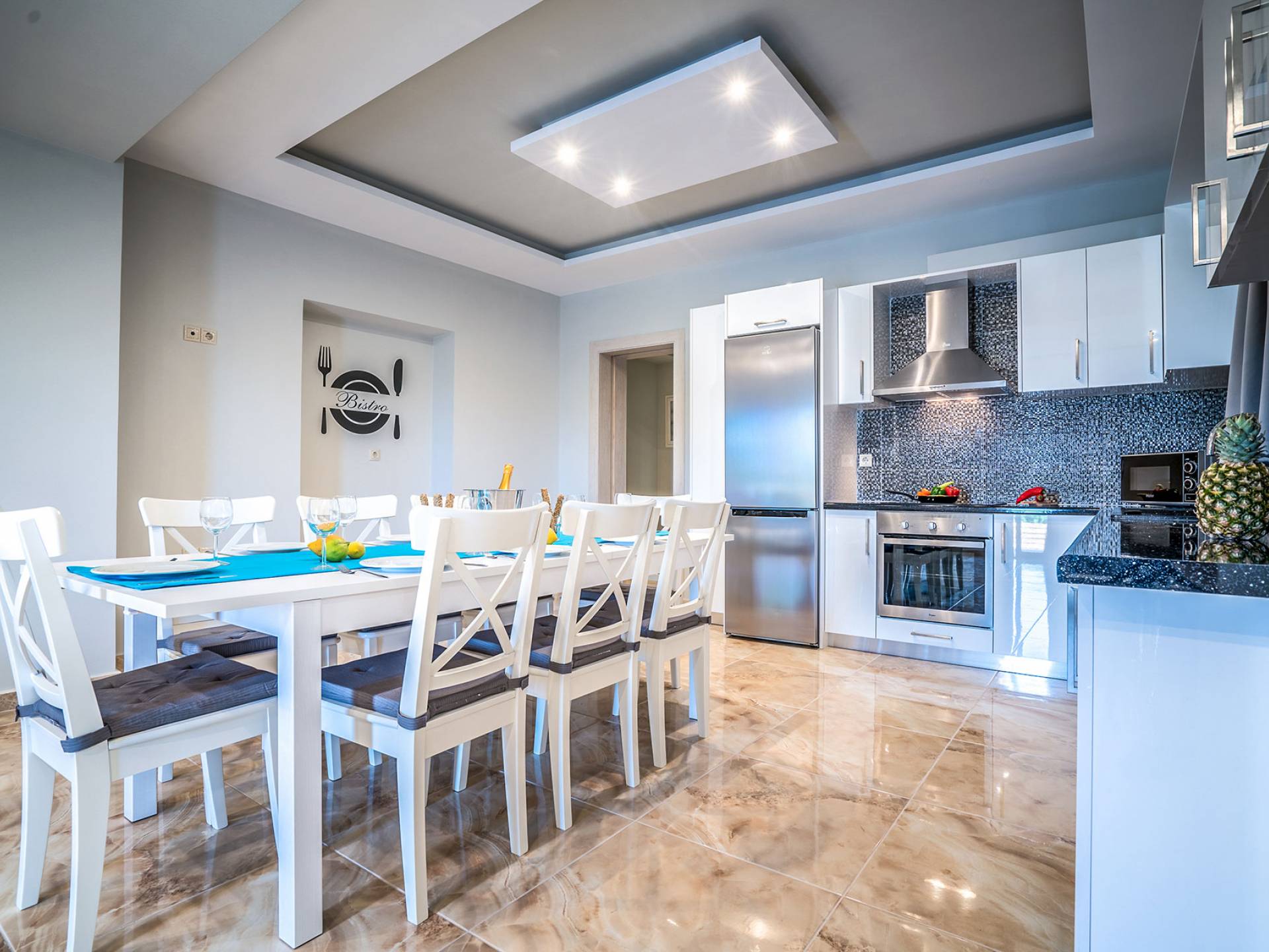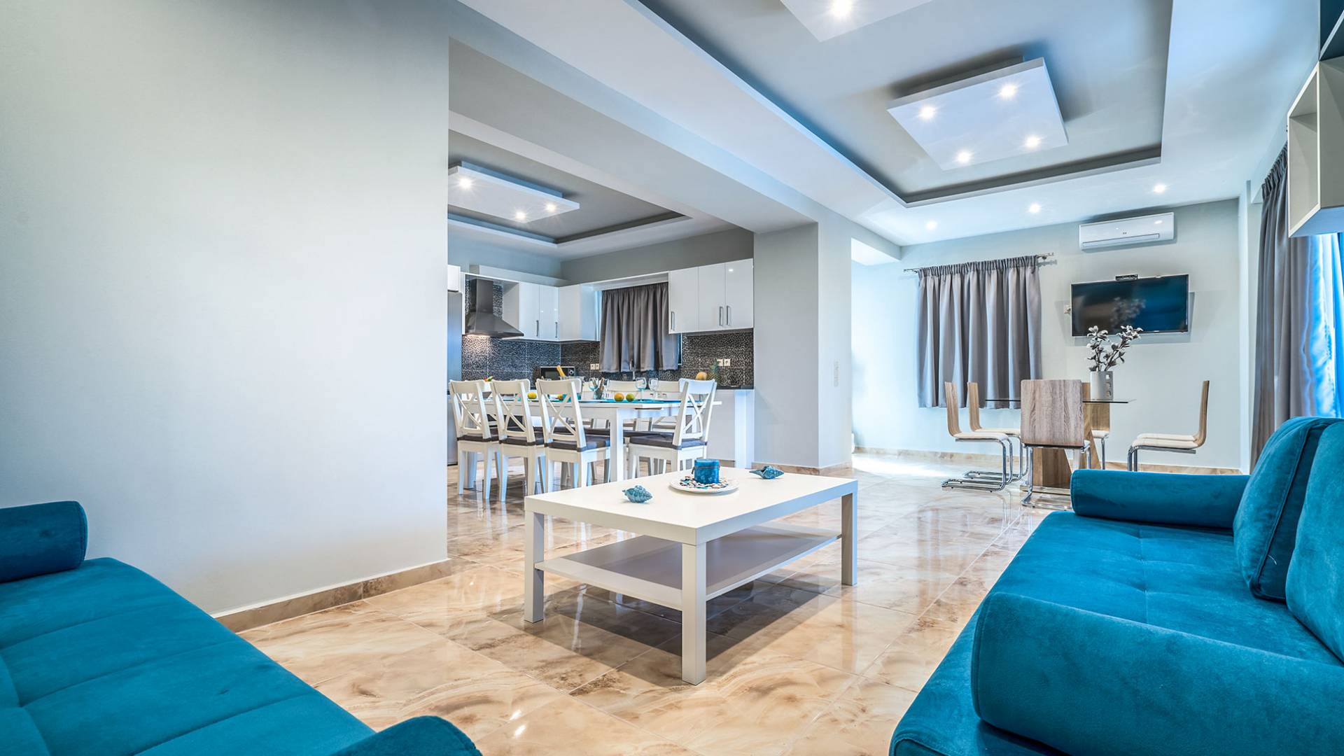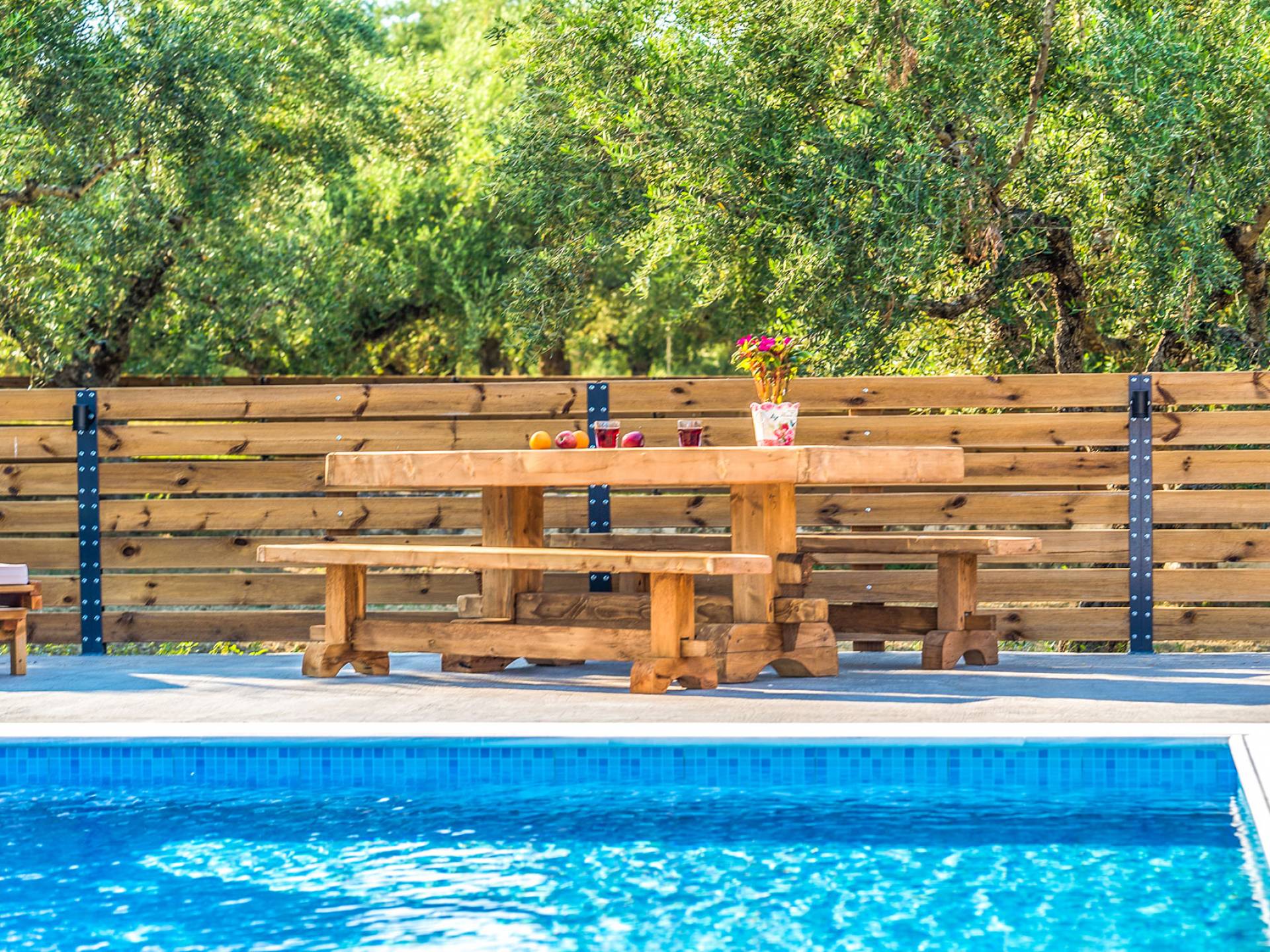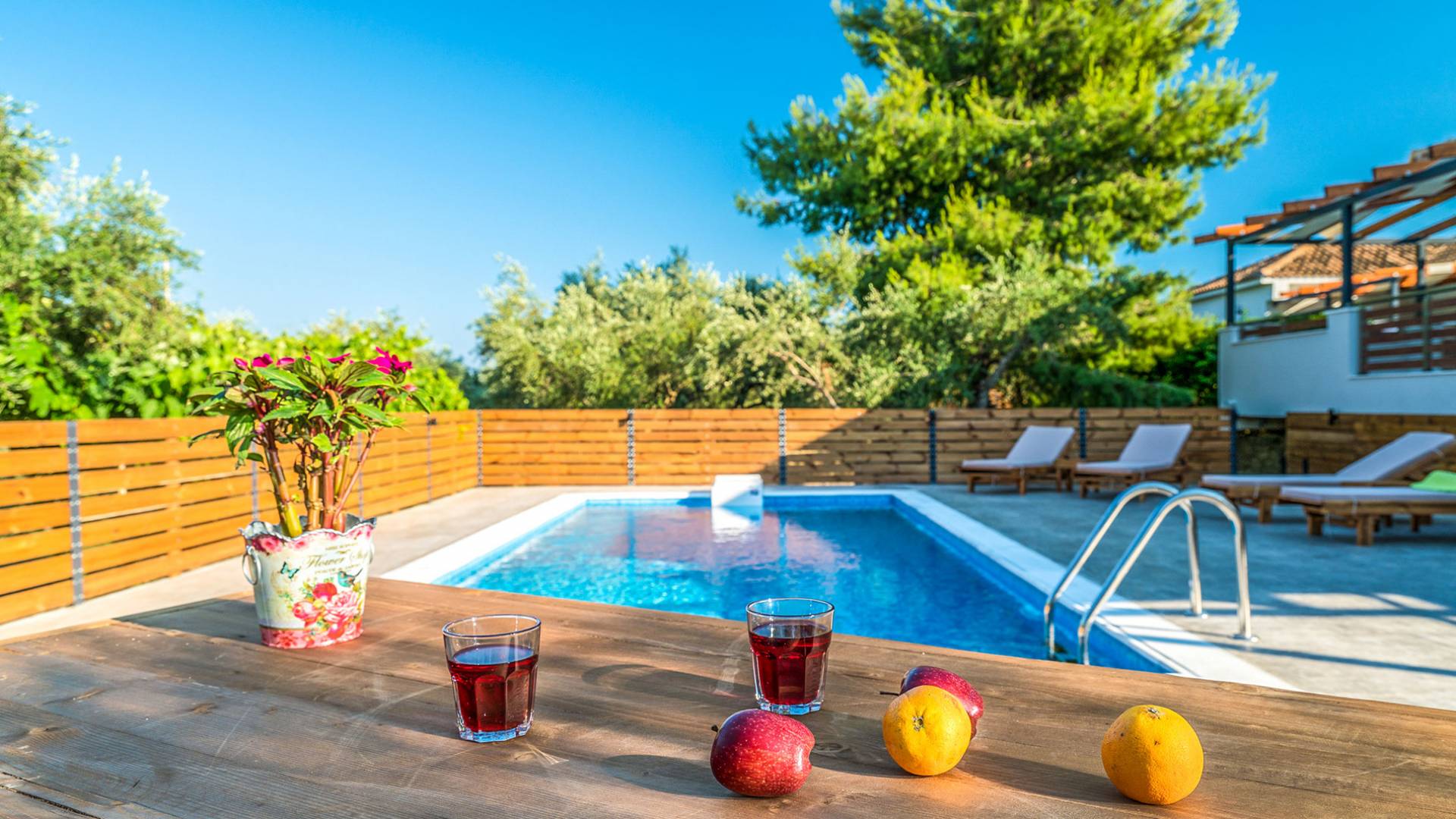 Villa Chloe Zante ist eine Villa mit 4 Schlafzimmern, die sich in der Mitte des Komplexes befindet, etwa 160 m² groß ist und über einen neu gebauten privaten Pool verfügt. Die Villa bietet bequem Platz für bis zu 8 + 5 Gäste. Der Haupteingang der Villa führt zu einem modernen und geräumigen Wohnzimmer mit einer voll ausgestatteten Küche und einem Essbereich sowie einem Hauptbadezimmer mit Dusche. Das Wohnzimmer verfügt über zwei 3-Sitzer-Sofas, die in ein Doppelbett (150 x 210 cm) umgewandelt werden können.