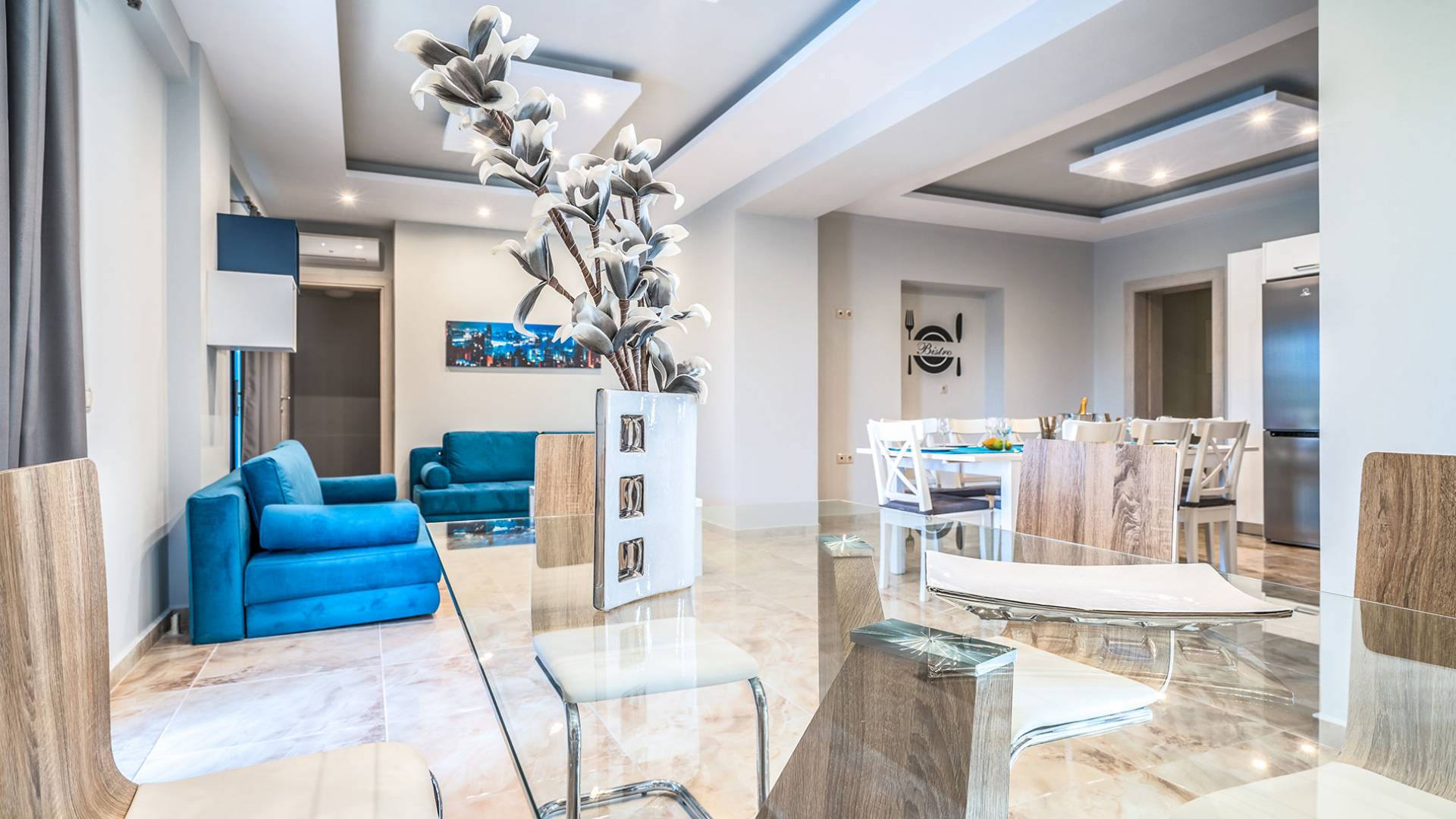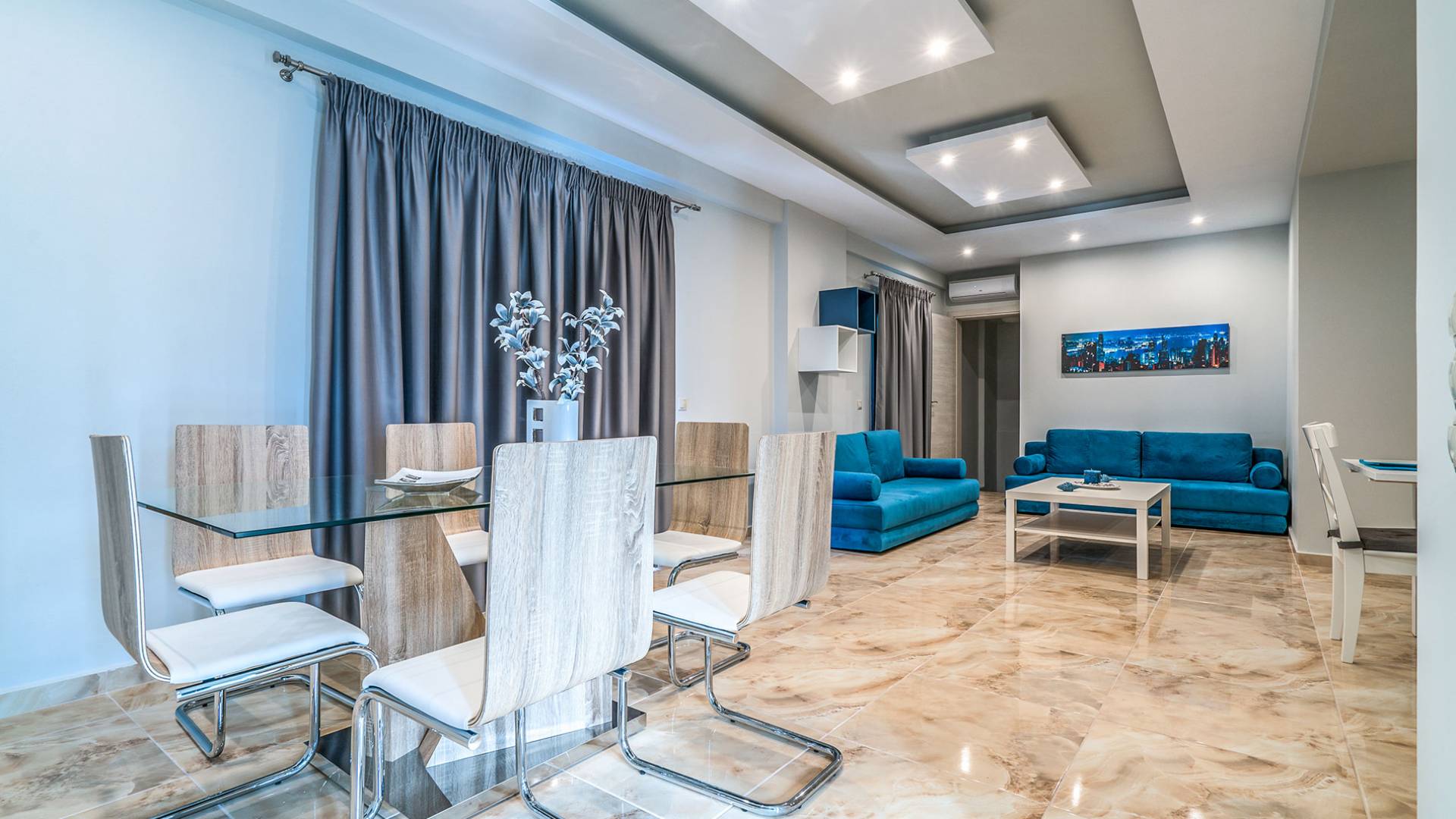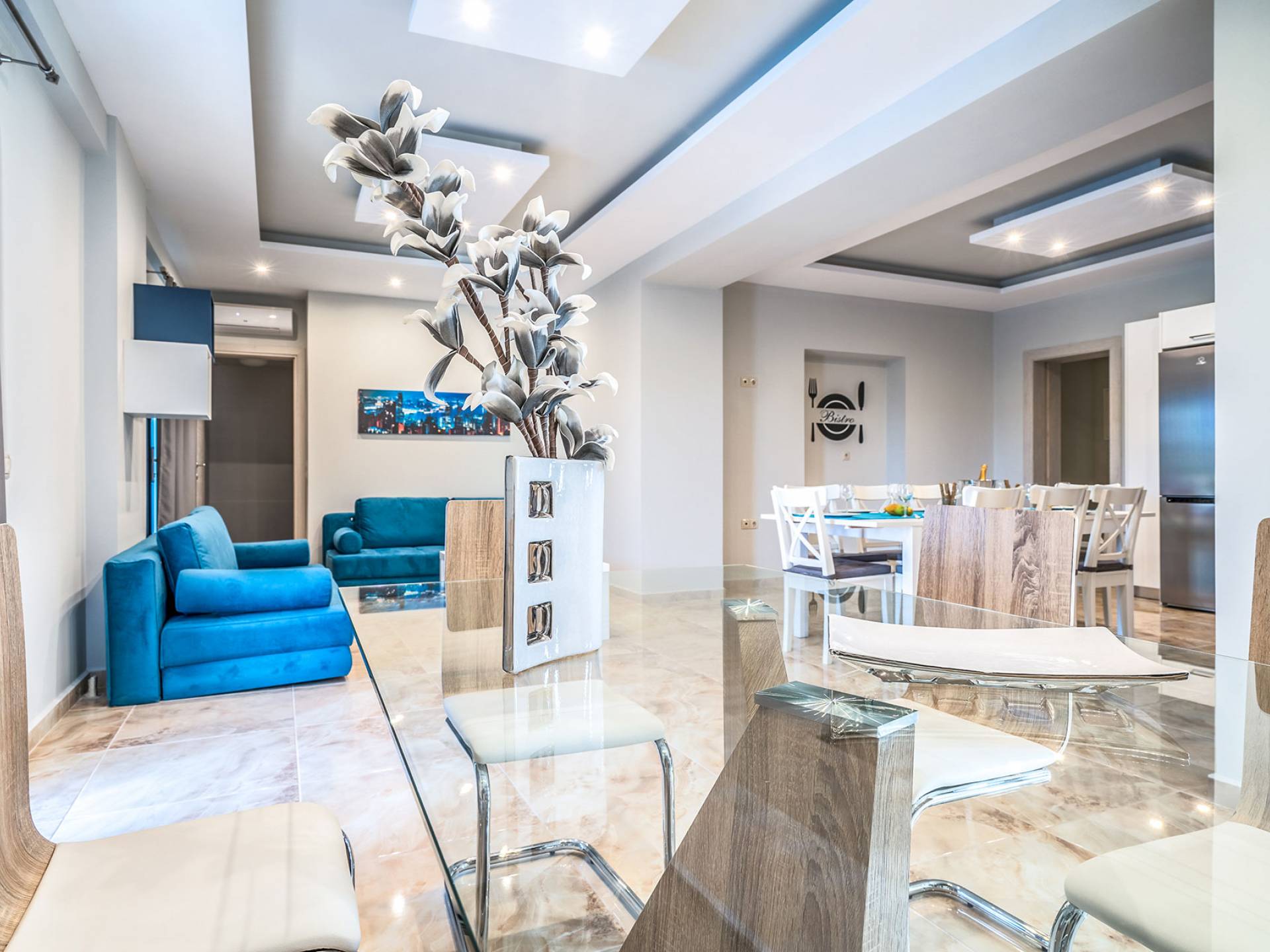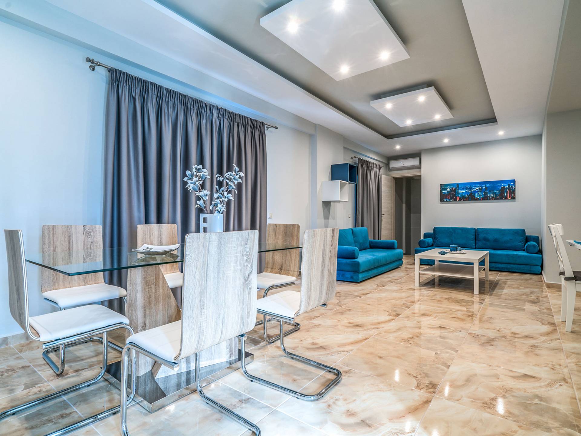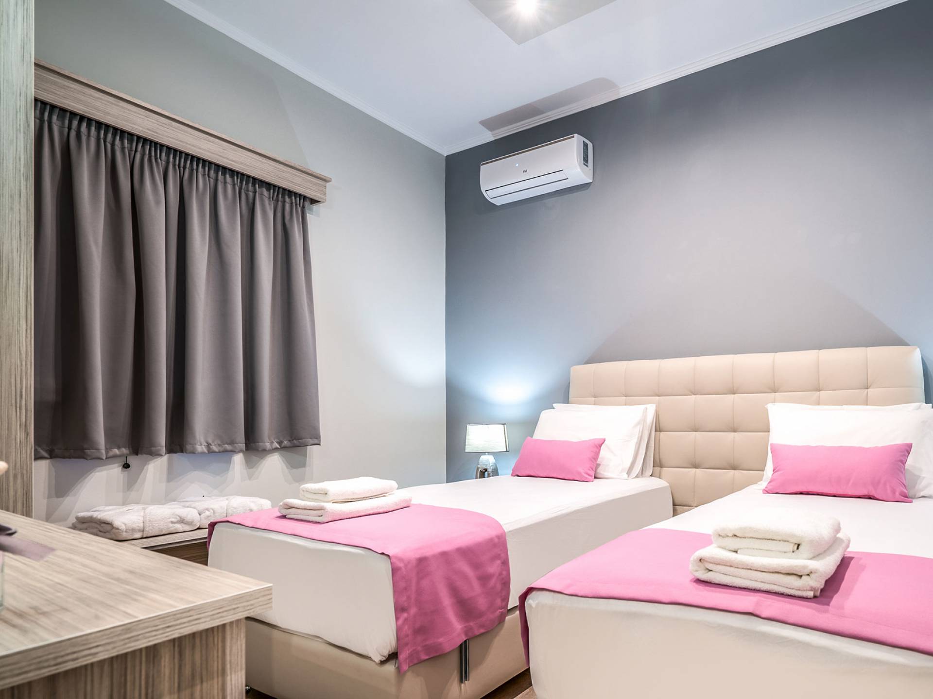 Villa Chloe Zante ist eine Villa mit 4 Schlafzimmern, die sich in der Mitte des Komplexes befindet, etwa 160 m² groß ist und über einen neu gebauten privaten Pool verfügt. Die Villa bietet bequem Platz für bis zu 8 + 5 Gäste. Der Haupteingang der Villa führt zu einem modernen und geräumigen Wohnzimmer mit einer voll ausgestatteten Küche und einem Essbereich sowie einem Hauptbadezimmer mit Dusche. Das Wohnzimmer verfügt über zwei 3-Sitzer-Sofas, die in ein Doppelbett (150 x 210 cm) umgewandelt werden können.