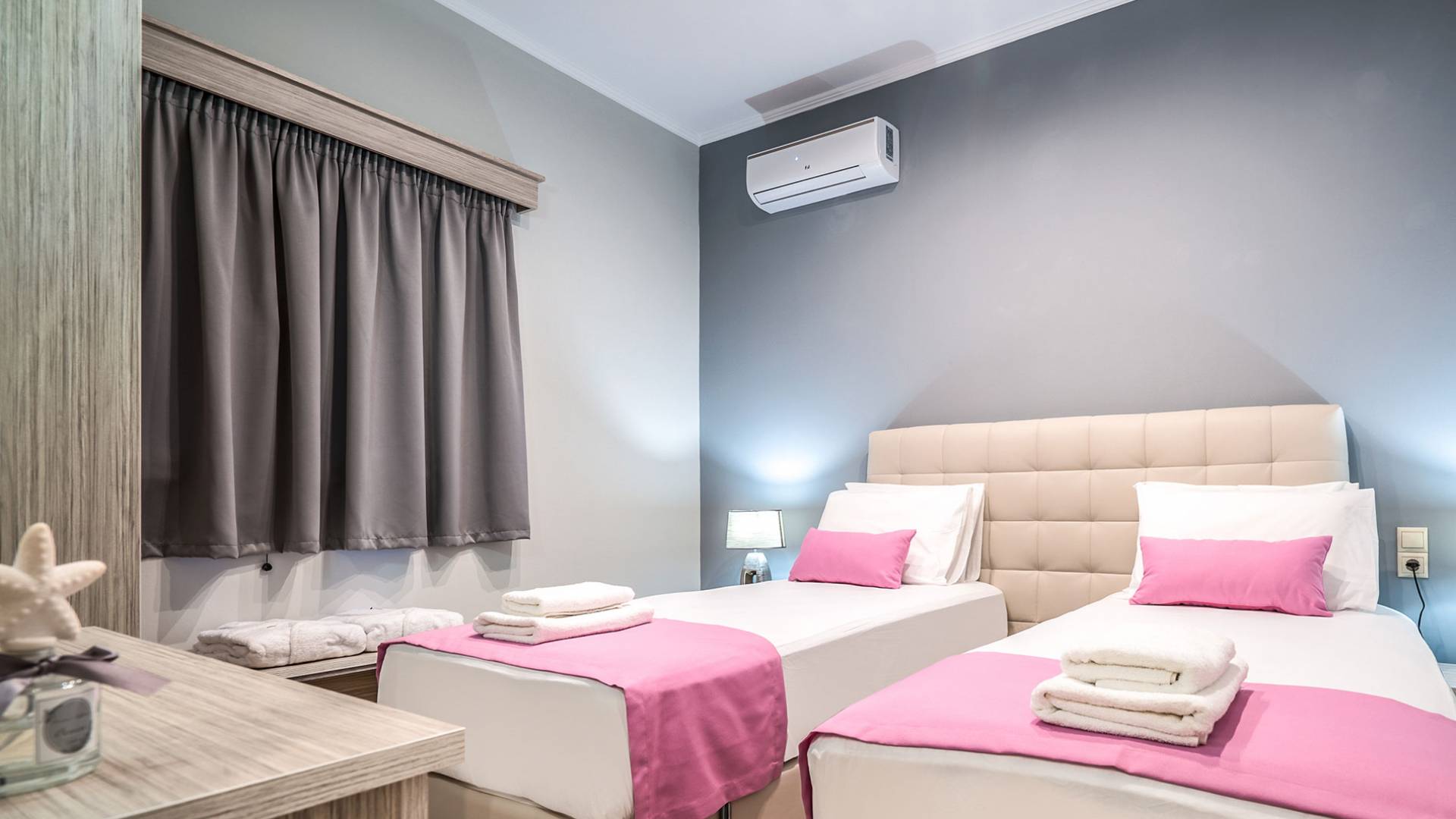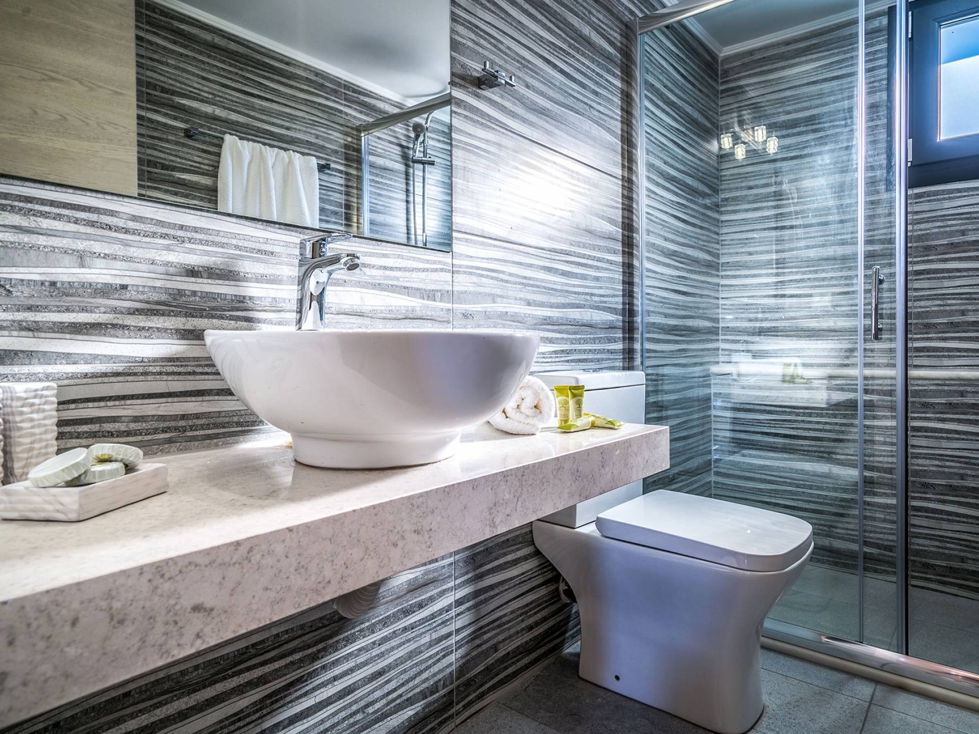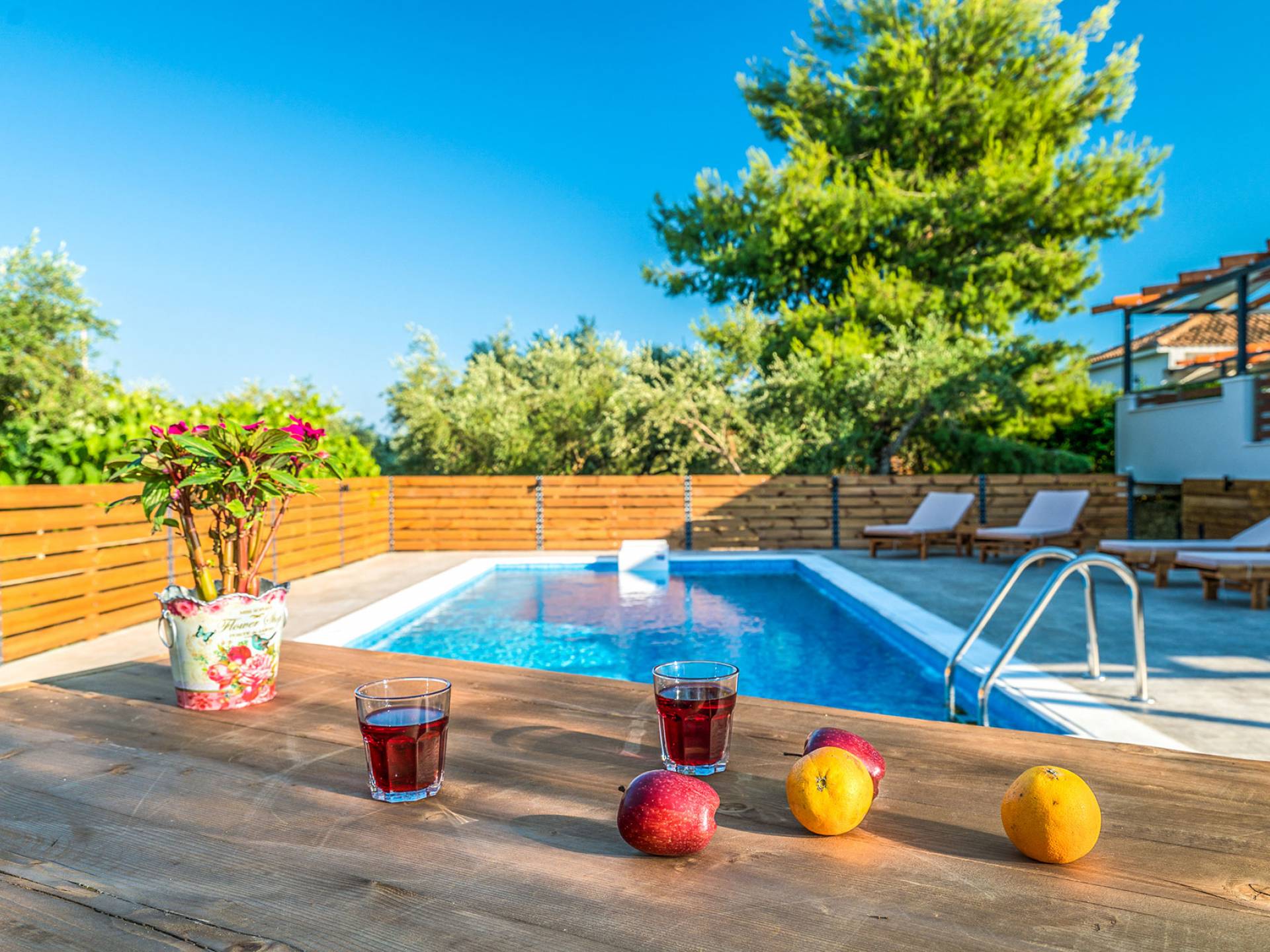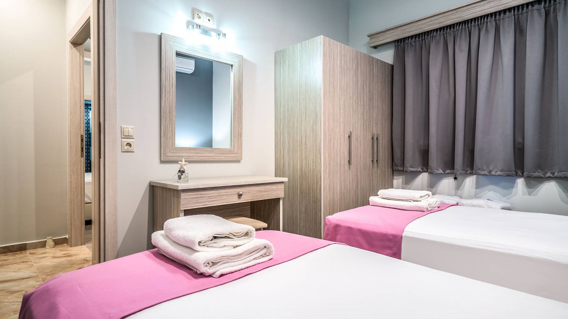 Das Erdgeschoss bietet 3 Schlafzimmer, von denen eines ein Hauptschlafzimmer mit einem Queensize-Bett (160 x 200 cm) und einem eigenen Badezimmer mit Dusche ist. Das zweite Schlafzimmer bietet 2 Einzelbetten (90 x 200 cm), die zu einem Kingsize-Bett (180 x 200 cm) und einem Einzelschlafsofa (75 x 190 cm) verbunden werden können, während das dritte Schlafzimmer 2 Einzelbetten (90 x 200 cm) bietet ), die zu einem Kingsize-Bett (180 x 200 cm) verbunden werden können. Ein paar Stufen in die untere Etage führen zu einem weiteren geräumigen Schlafzimmer mit einem Queensize-Bett (160 x 200 cm) und einem 3-Sitzer-Sofa, das durch einen praktisch mühelosen Betätigungsmechanismus in ein Doppelbett (150 x 210 cm) umgewandelt werden kann. Die vordere möblierte Veranda der Villa Chloe bietet einen privaten Pool und Blick auf den Garten sowie direkten Zugang zum Pool.