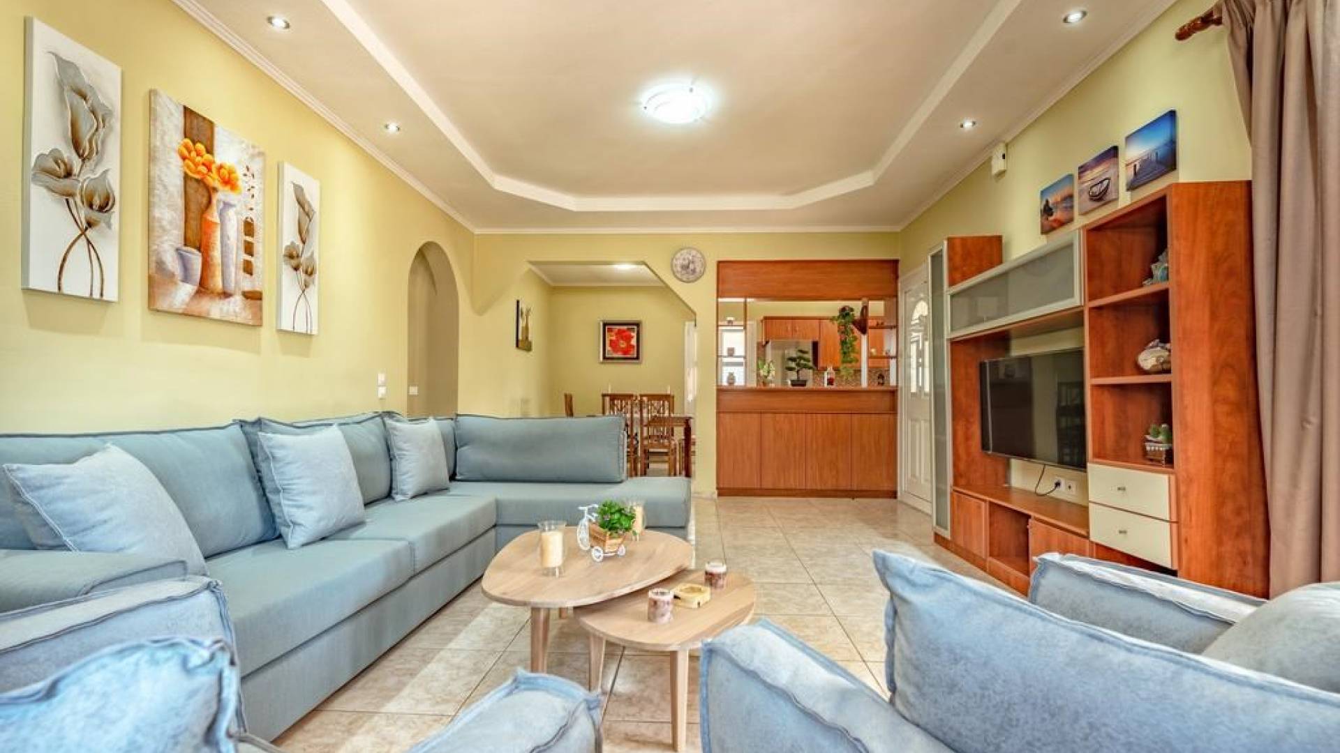 Bei Ihrer Ankunft werden Sie erst interessant, wenn Sie durch die Haupttür eintreten und sich im schönen Wohnzimmer wiederfinden. Der offen gestaltete Wohn- und Essbereich bietet eine perfekt gemütliche Umgebung zum Entspannen nach einem langen Tag voller Erkundungen. Ein großes Sofa und zwei bequeme Sessel blicken auf eine exquisite Veranda, die für ein durch und durch helles, luftiges Interieur sorgt. Die warmen Farben und die modernen Möbel schaffen im gesamten Zimmer eine heimelige und einladende Atmosphäre und sorgen für Ihren Komfort und Ihre Zufriedenheit.