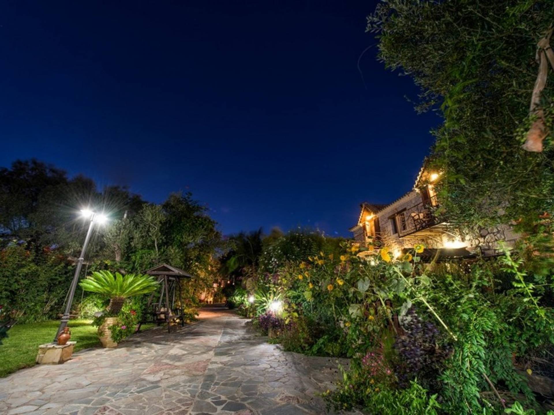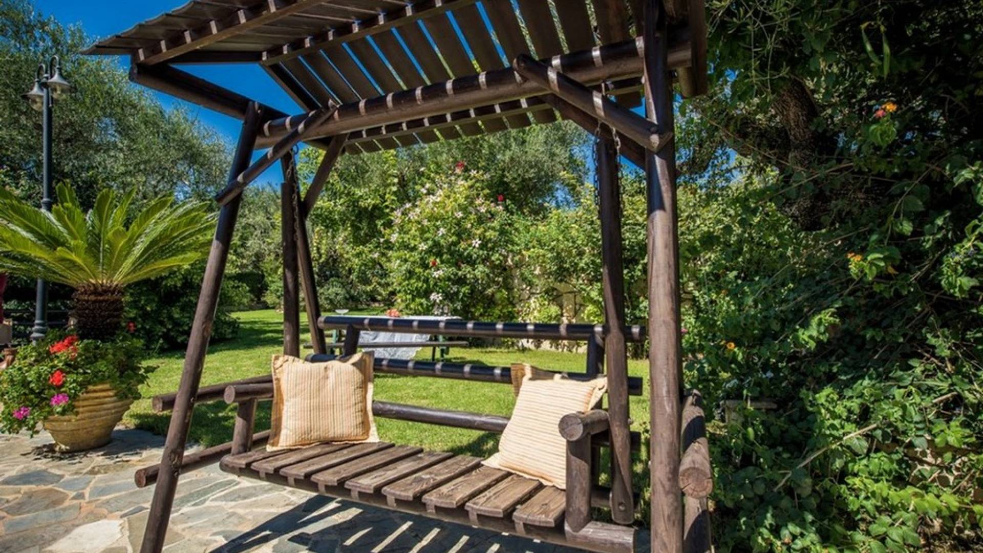 Genießen Sie die Ruhe im Schatten der langlebigen Olivenbäume namens "Dopies", von denen Hängematten hängen, oder sitzen Sie sogar im Hain auf den Holzbänken eines Bauernhofs abseits der Häuser. Auch die Umgebung ist ideal für diejenigen, die in den Feldern spazieren, ein Buch lesen oder die segnende Natur genießen möchten. Gehen Sie um den Teich herum und füttern Sie die Enten, die Gänse und die anderen Nutztiere. Kinder werden viel Spaß haben und den Spielplatz lieben, der sicher ist, da das Anwesen von Steinmauern umgeben ist.