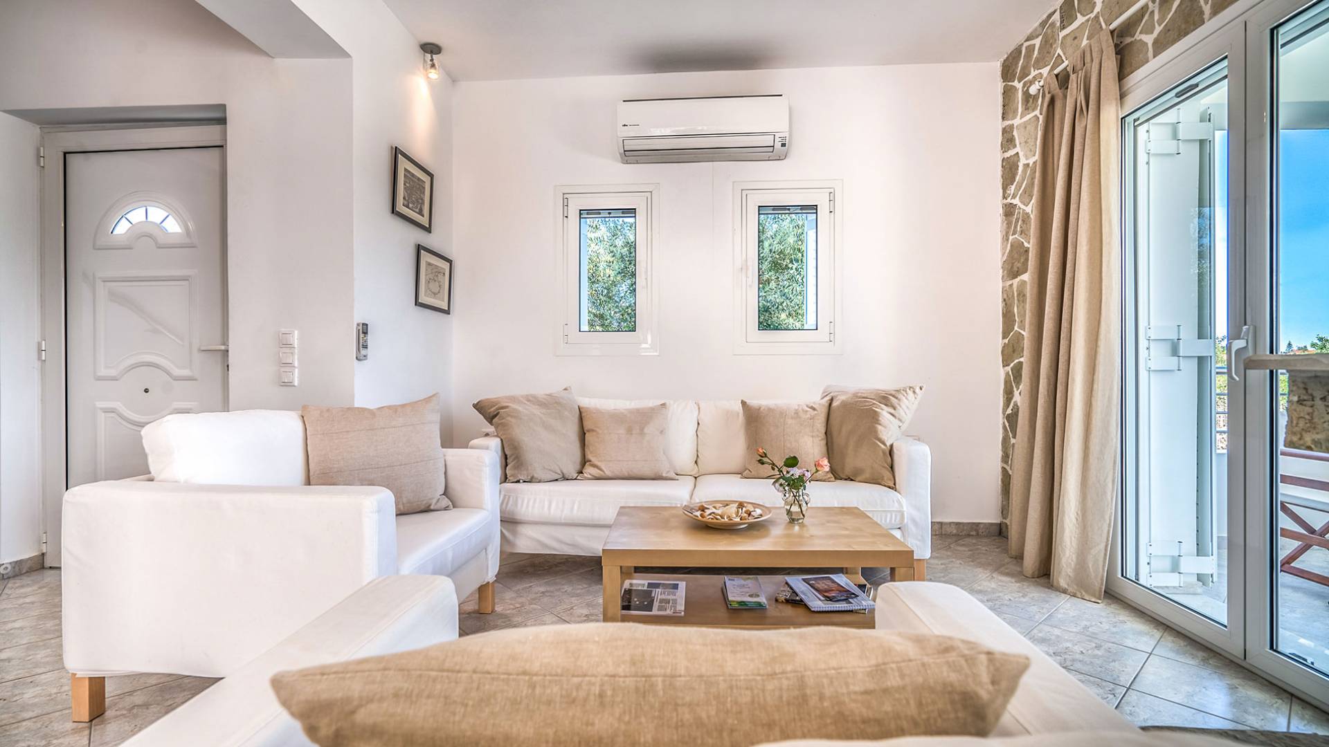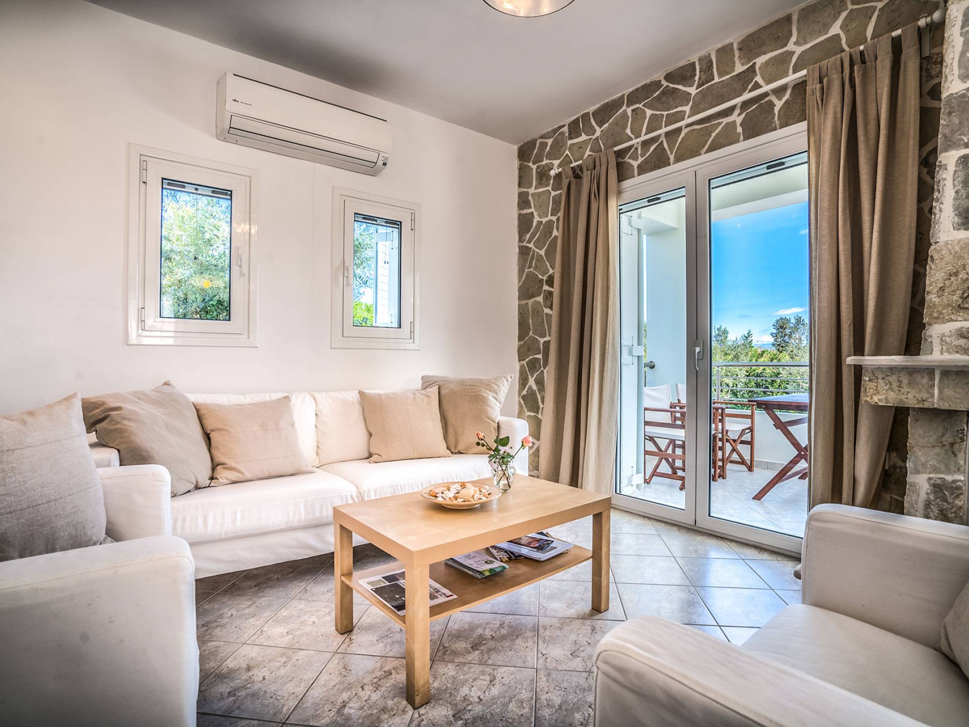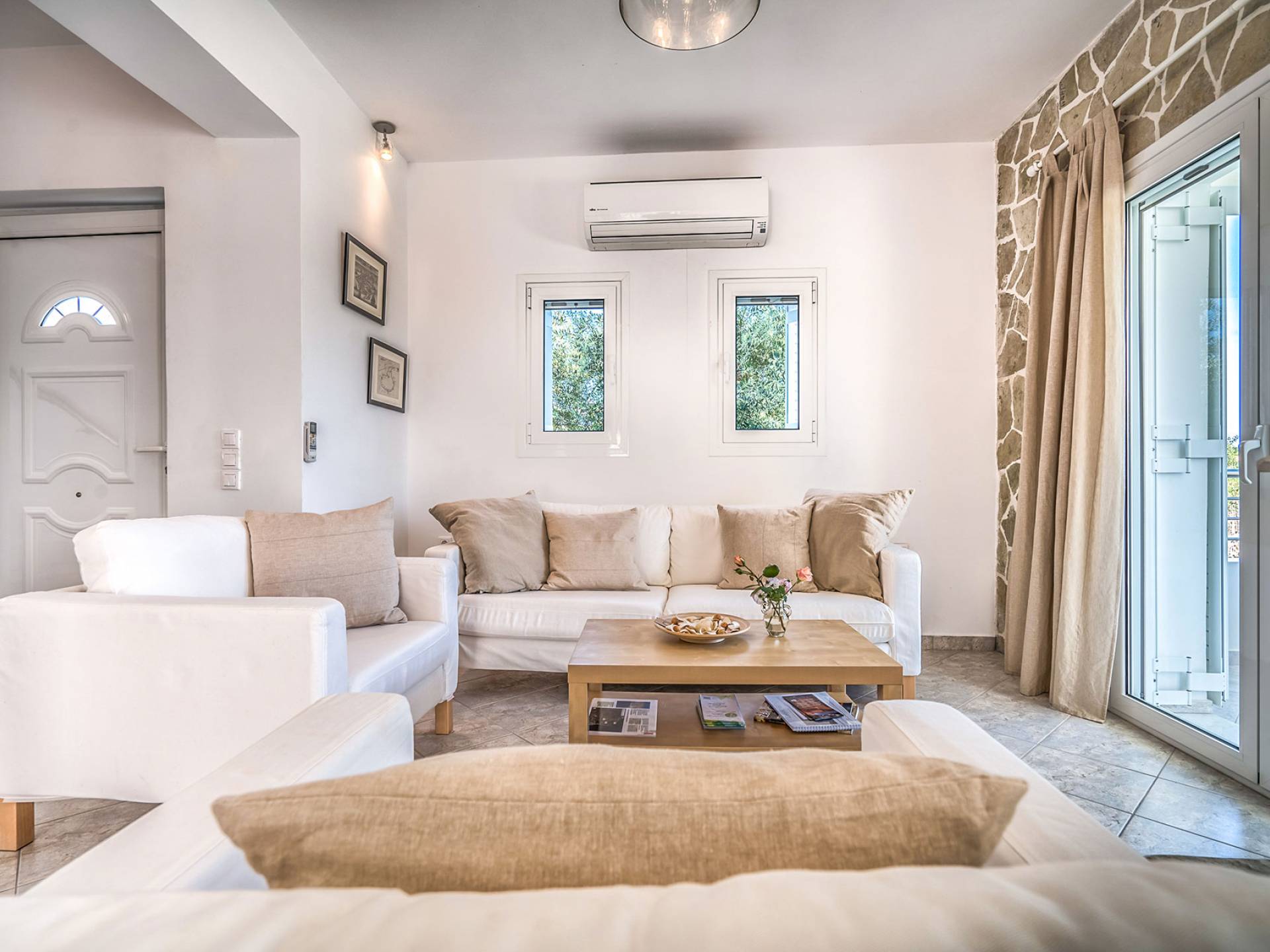 Entdecken Sie die einzigartige Schönheit der Naturlandschaft und genießen Sie einen unvergesslichen Sommerurlaub in dieser wunderschönen Villa am Meer, die einen privaten Pool für die Tage bietet, an denen Sie dem Strand entfliehen möchten. Momente der Entspannung vor oder nach Ihren Ausflügen zu faszinierenden Sehenswürdigkeiten und kristallklaren Stränden, die es auf der Insel zu entdecken gilt. Traditioneller Stein fügt sich in eine von Olivenbäumen umgebene Umgebung ein und bietet mit individuellen Formen genussvolle Momente unter dem dunkelblauen Sternenhimmel. Die Villa kann einen dauerhaften Wohnsitz ersetzen und bietet Ihnen das einzigartige Gefühl von Komfort und griechischer Gastfreundschaft an einem für den Urlaub geeigneten Ort. Das Hotel liegt nicht weit von der Stadt Tsilivi entfernt, wo es viele Geschäfte gibt und