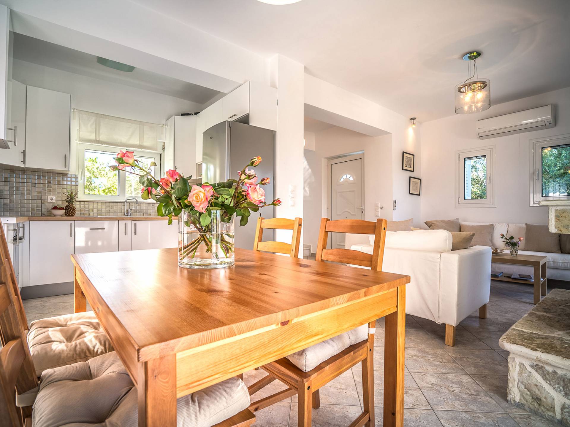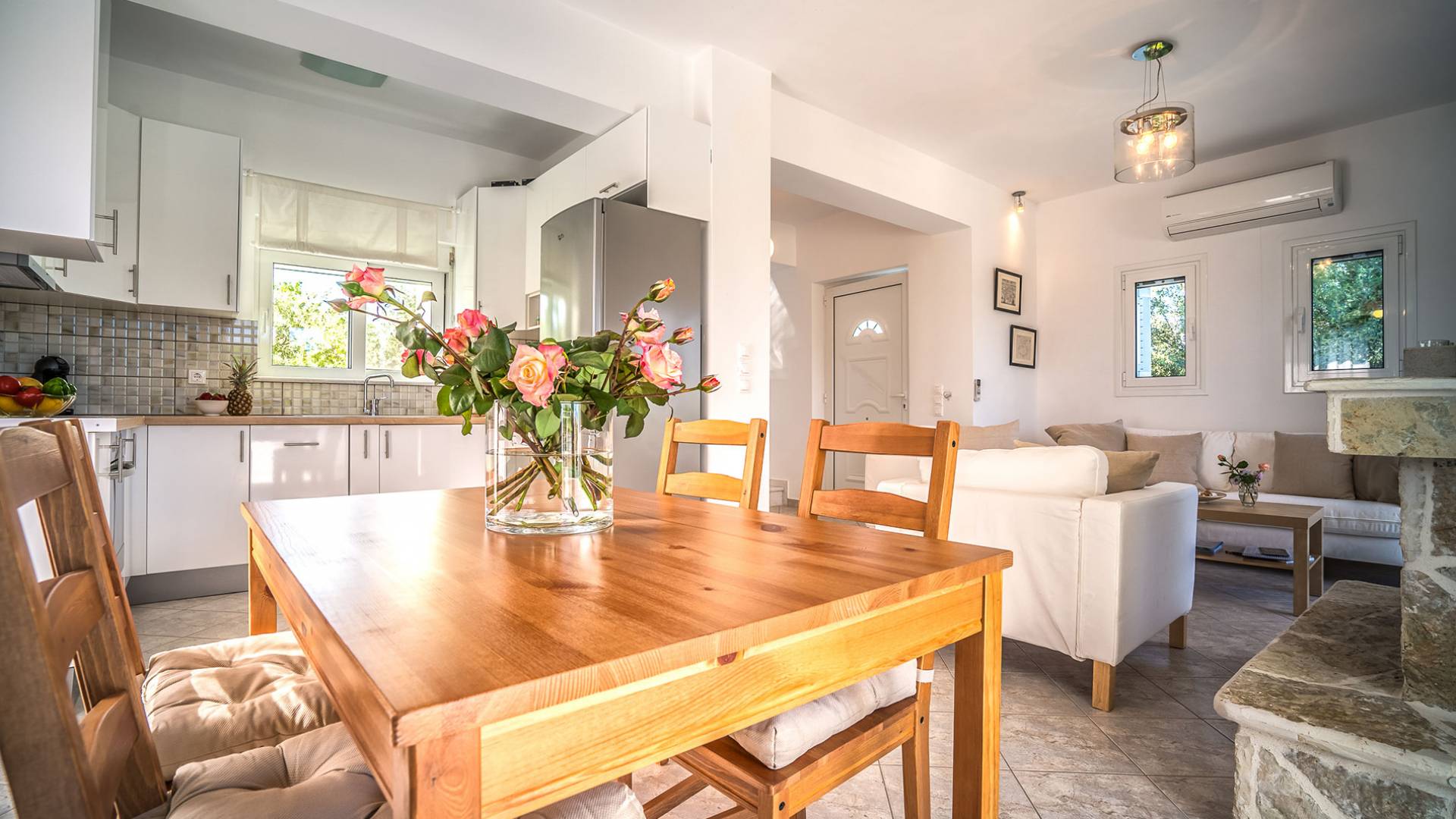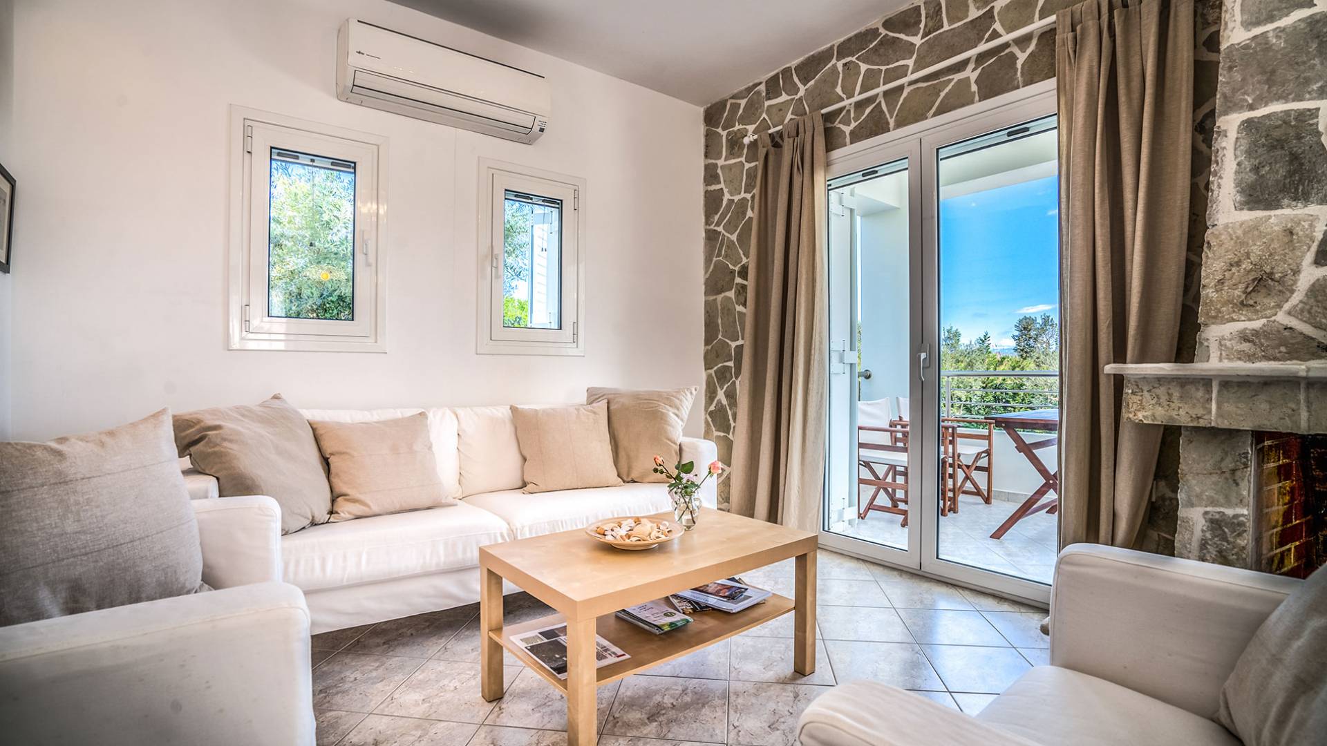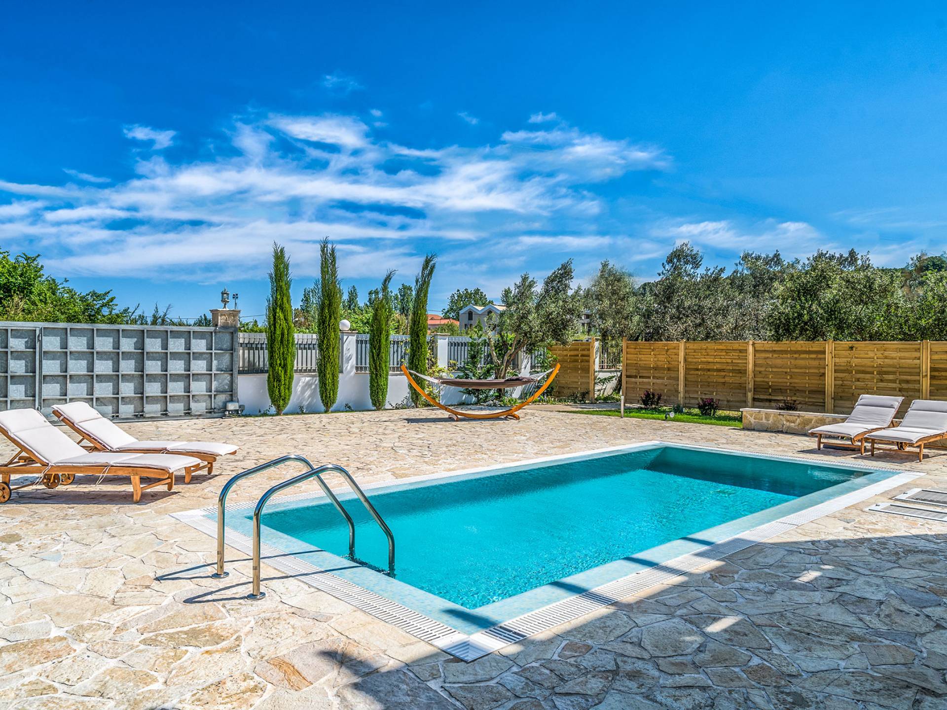Entdecken Sie die einzigartige Schönheit der Naturlandschaft und genießen Sie einen unvergesslichen Sommerurlaub in dieser wunderschönen Villa am Meer, die einen privaten Pool für die Tage bietet, an denen Sie dem Strand entfliehen möchten. Momente der Entspannung vor oder nach Ihren Ausflügen zu faszinierenden Sehenswürdigkeiten und kristallklaren Stränden, die es auf der Insel zu entdecken gilt. Traditioneller Stein fügt sich in eine von Olivenbäumen umgebene Umgebung ein und bietet mit individuellen Formen genussvolle Momente unter dem dunkelblauen Sternenhimmel. Die Villa kann einen dauerhaften Wohnsitz ersetzen und bietet Ihnen das einzigartige Gefühl von Komfort und griechischer Gastfreundschaft an einem für den Urlaub geeigneten Ort. Das Hotel liegt nicht weit von der Stadt Tsilivi entfernt, wo es viele Geschäfte gibt und