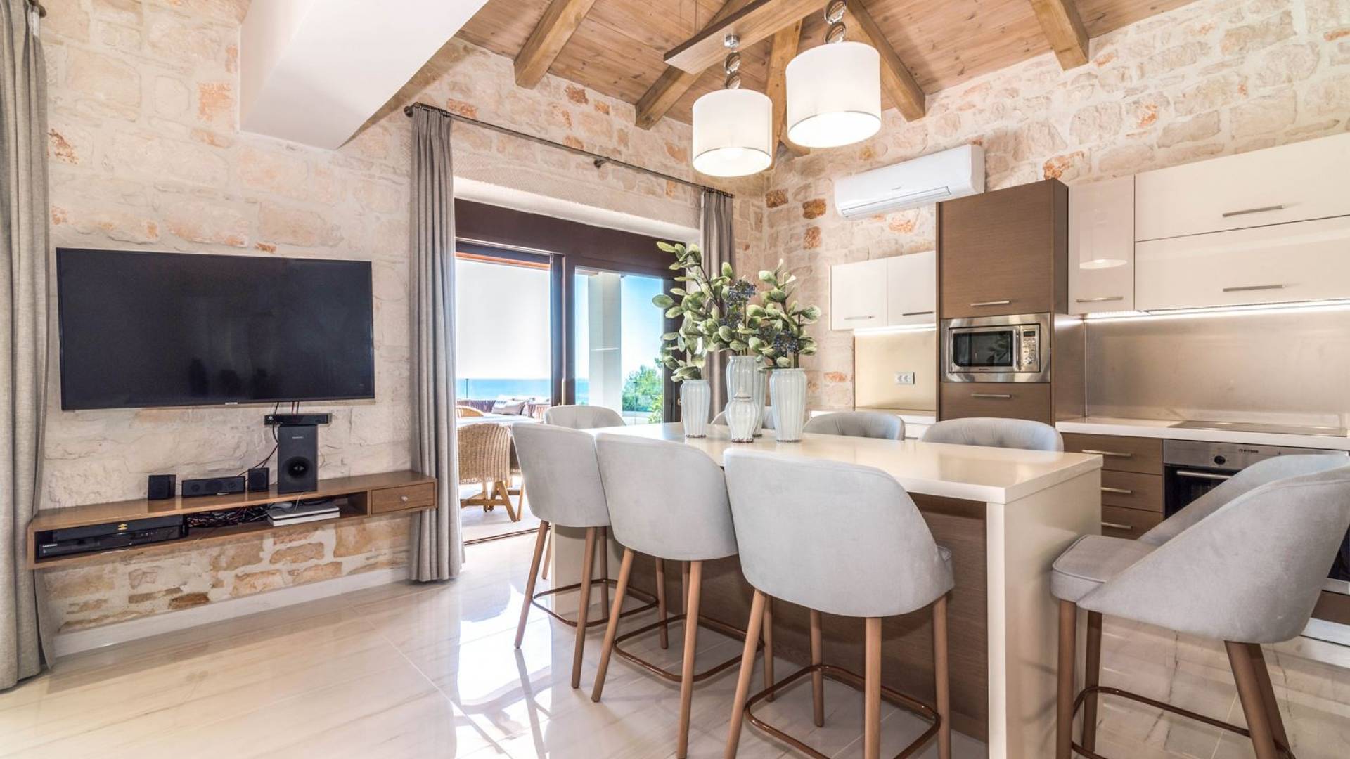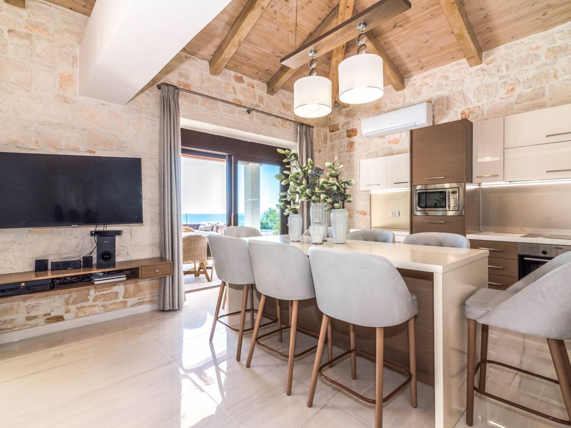 Beachfront Villa Portale Zakynthos combines comfort, style, and an unbeatable location right by the sea. Set close to the beach and within easy reach of local attractions, it’s the perfect base for exploring the vibrant side of Zakynthos as well as its natural beauty.