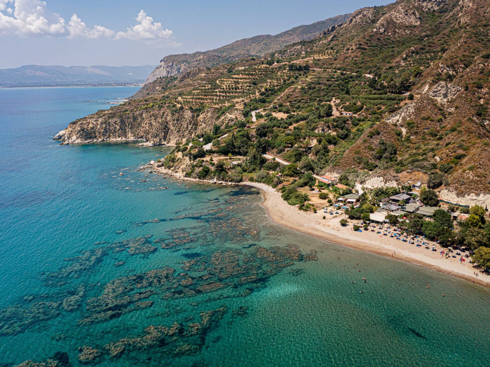 mehrDas Dorf Vasilikos liegt 11 km von der Stadt Zakynthos entfernt und ist eines der beliebtesten Ziele von Zakynthos auf der Halbinsel der Insel im Südosten. Vasilikos ist eher ein allgemeines Gebiet der Halbinsel als ein separates Resort, einschließlich vieler Dörfer. Es ist bekannt für seine natürliche Schönheit und Ruhe. Wunderschönes blaues und klares seichtes Wasser und Strände, umgeben von hohen Bergen und riesigen Olivenhainen, bilden den wunderschönen Rahmen, der sich auch ideal für Familien mit Kindern eignet. Der Zugang ist einfach mit dem Auto oder sogar zu Fuß. Hier liegen einige der atemberaubendsten Strände des gesamten ionischen Komplexes. Vasilikos ist auch ein bekannter Fortpflanzungsort für die berühmte Caretta-Meeresschildkröte. Vasilikos ist ein sehr ruhiges Resort und bietet viele Strandeinrichtungen. Es besteht aus vielen verschiedenen Stränden, aus denen Sie auswählen können. Kaminia, Porto Zoro, Ionio, Porto Roma, Daphni usw.