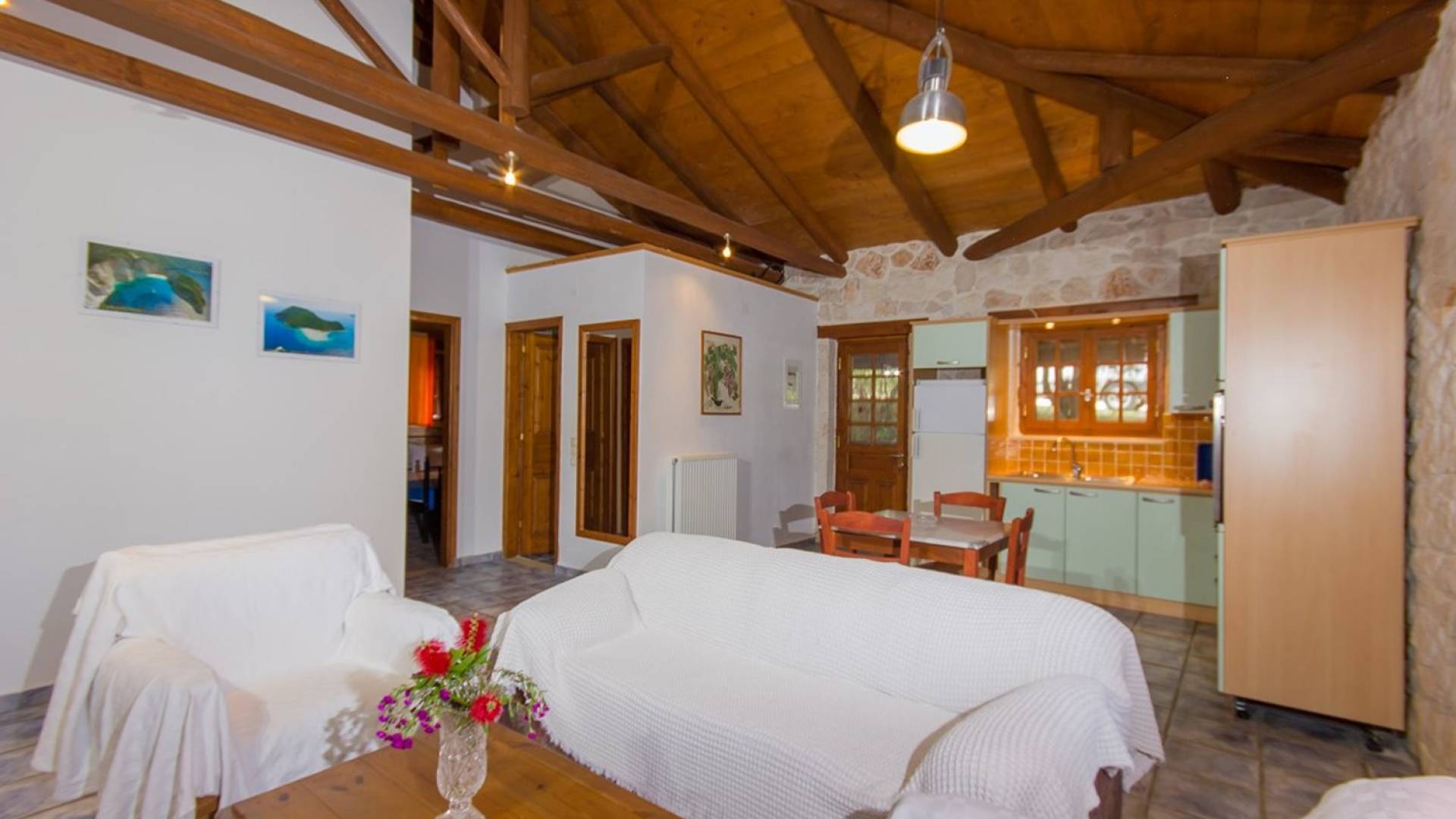 Irene House, das 140 m² große Steinhaus mit zwei Schlafzimmern, verfügt über einen neu gebauten privaten Swimmingpool und befindet sich auf der zweiten Ebene eines üppig grünen Hügels mit Blick auf das Meer. Das Haus bietet Platz für 4 Personen. Dieses Haus bietet zwei klimatisierte Schlafzimmer, eines mit Queensize-Bett und das andere mit zwei Einzelbetten. Das Haus Irene bietet auch ein Badezimmer mit Dusche sowie ein Wohnzimmer mit offenem Schnitt und eine voll ausgestattete Küche mit Essbereich. Es hat zwei Veranden, eine möblierte vordere Veranda, die zum Pool führt, wo unseren Gästen Sonnenliegen angeboten werden, und eine hintere Veranda, die ideal ist, um Ihre Nachmittagsentspannung zu genießen.