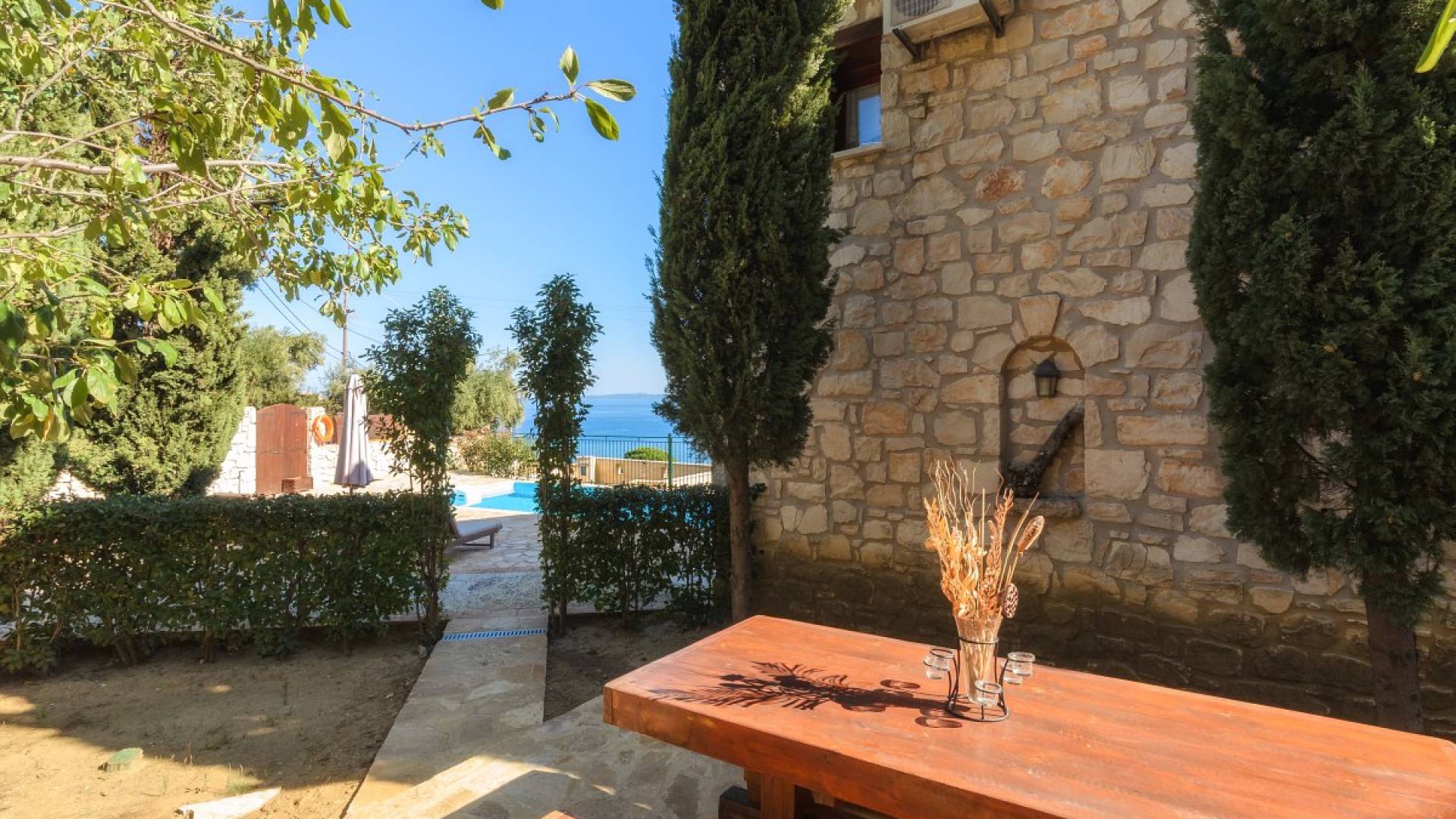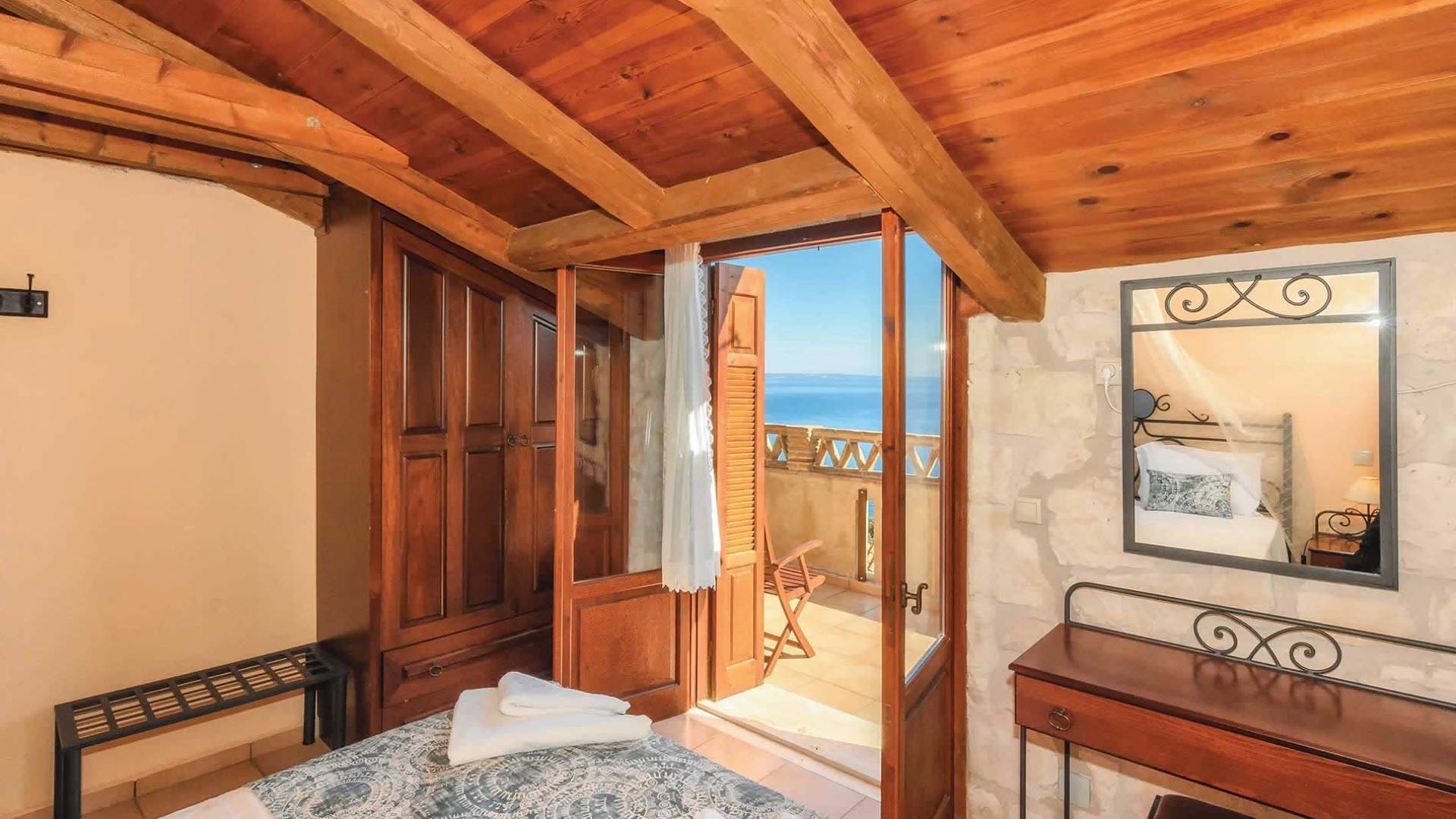 Diese Villa ist hübsch in einem modernen, aber dennoch traditionellen Stil eingerichtet und bietet eine voll ausgestattete Küche, ein Wohnzimmer mit Schlafsofa und ein Badezimmer mit einer Glasdusche. Im Obergeschoss befinden sich 2 Schlafzimmer und ein Badezimmer mit Badewanne. Das erste Schlafzimmer verfügt über ein Kingsize-Bett, das zweite über ein Doppelbett und ein Einzelbett. Alle Zimmer bieten einen herrlichen Meerblick.