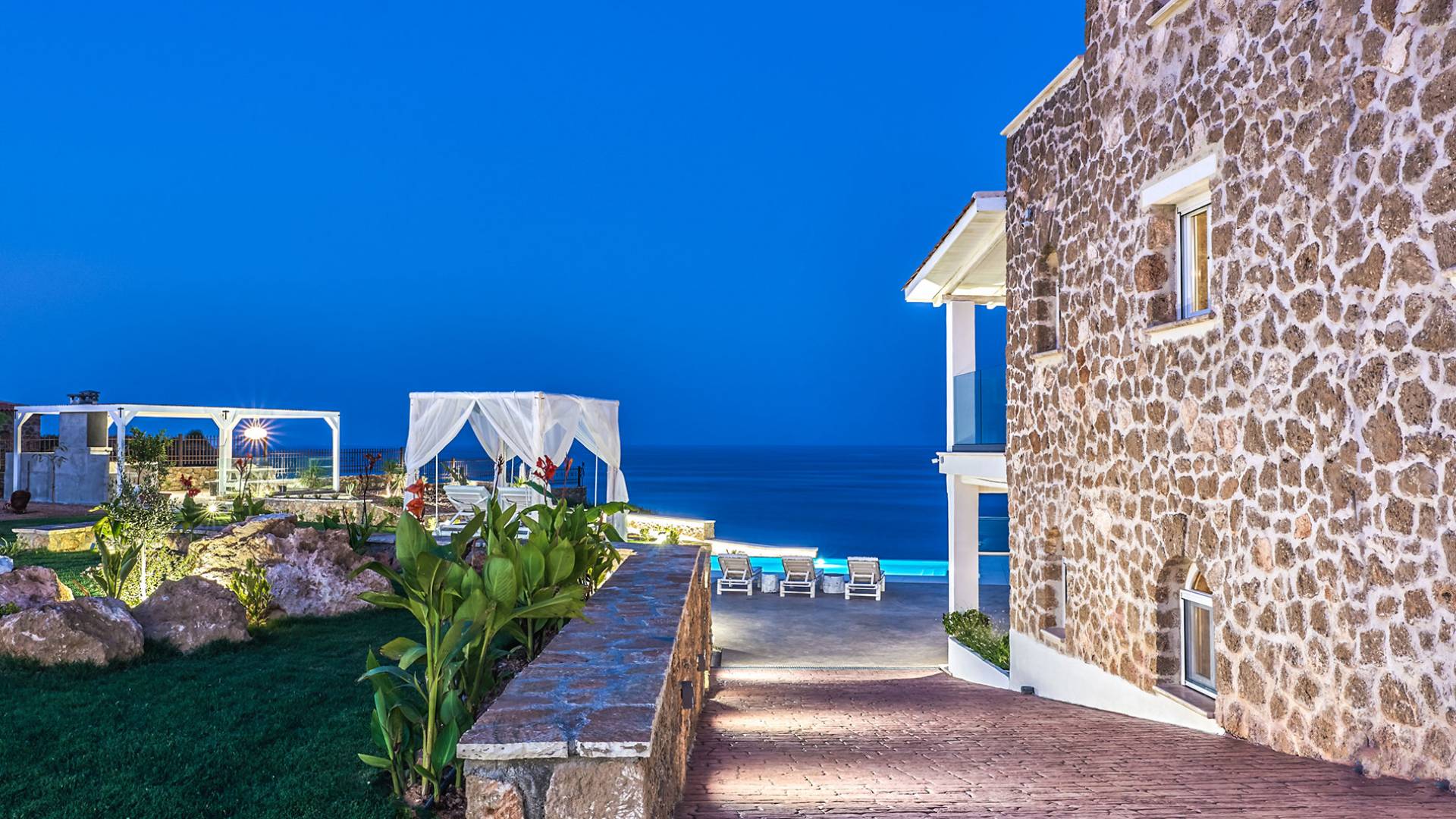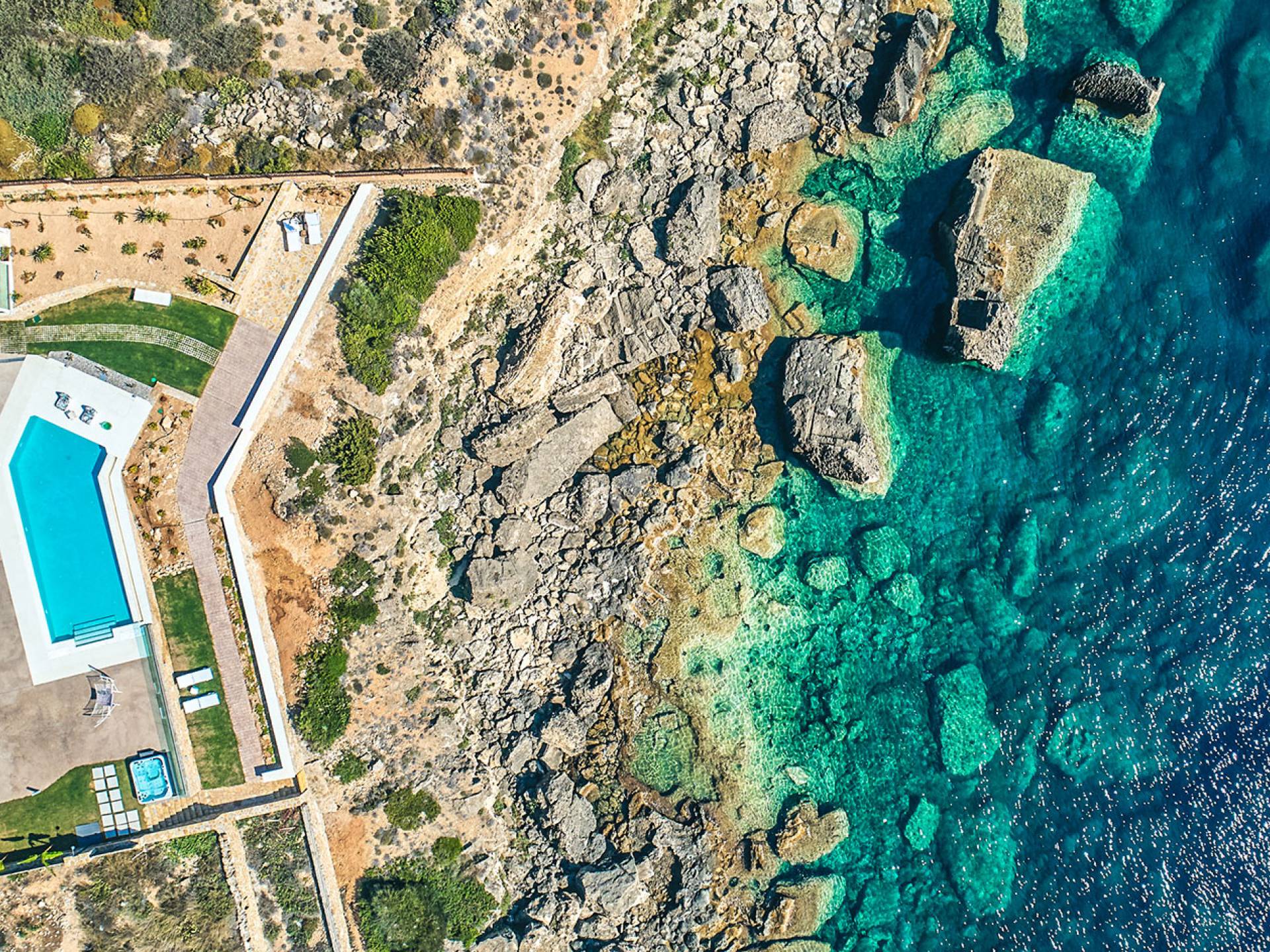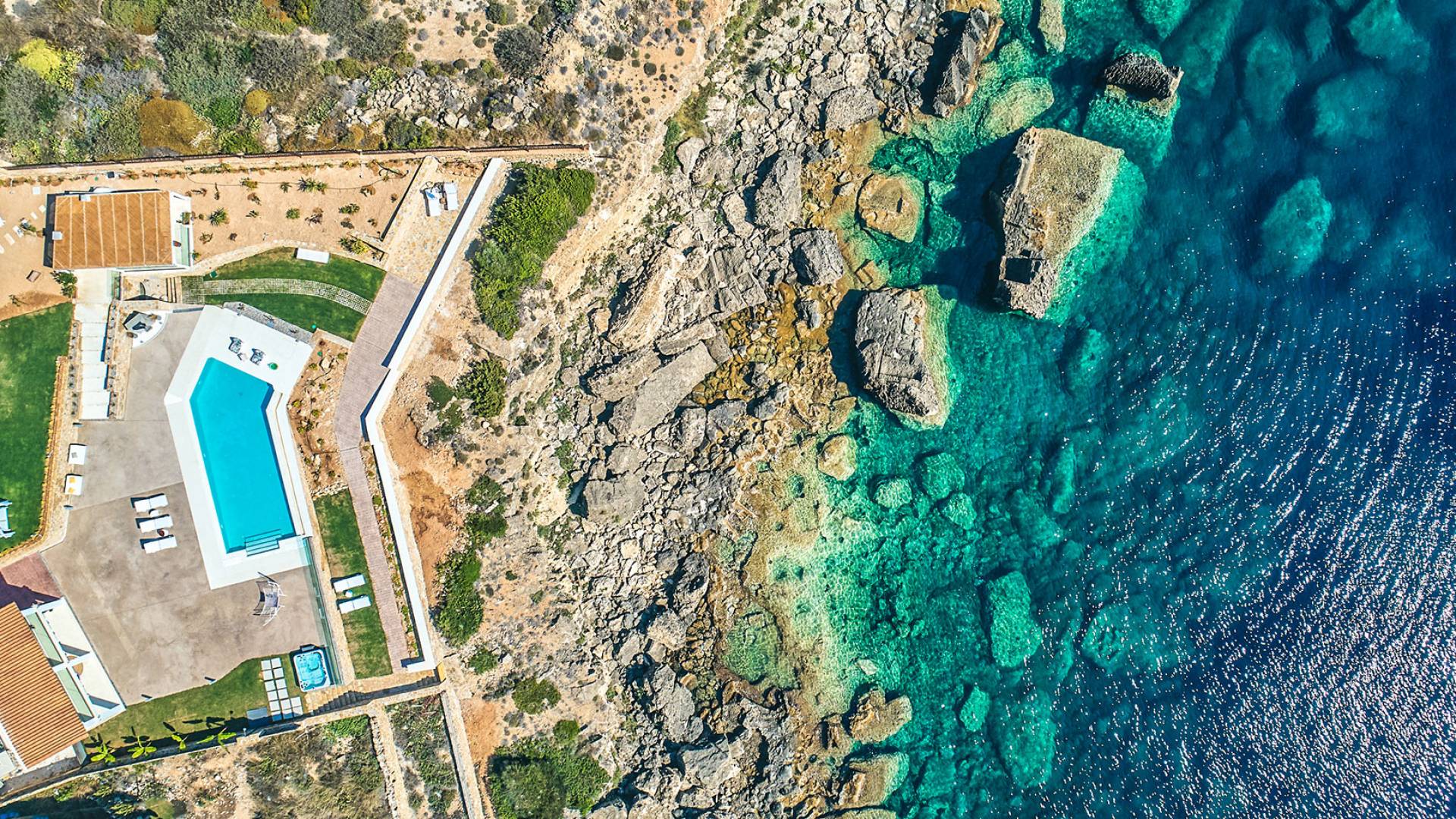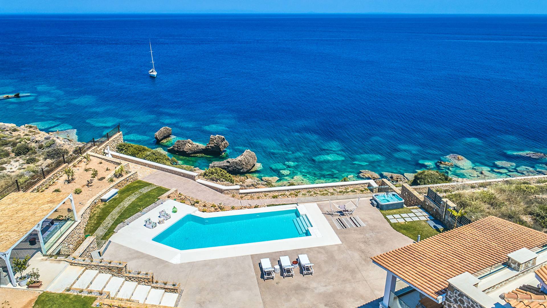 Der Außenbereich ist ein riesiger Hof, der direkt am Meer gebaut wurde. Es beinhaltet alles, was Sie brauchen, um Ihren Aufenthalt in der Arismari Villa zu genießen und zu entspannen. Die bedeutendste Einrichtung des Ortes ist ein großer unendlicher Swimmingpool, in dem Sie sich entspannen können, während Sie auf das Meer und den Horizont blicken. In der Nähe finden Sie auch einen Grill, falls Sie einfach einen ganzen Tag in der Villa verbringen möchten, entspannen, träumen, schwimmen, kochen, essen, schlafen.
