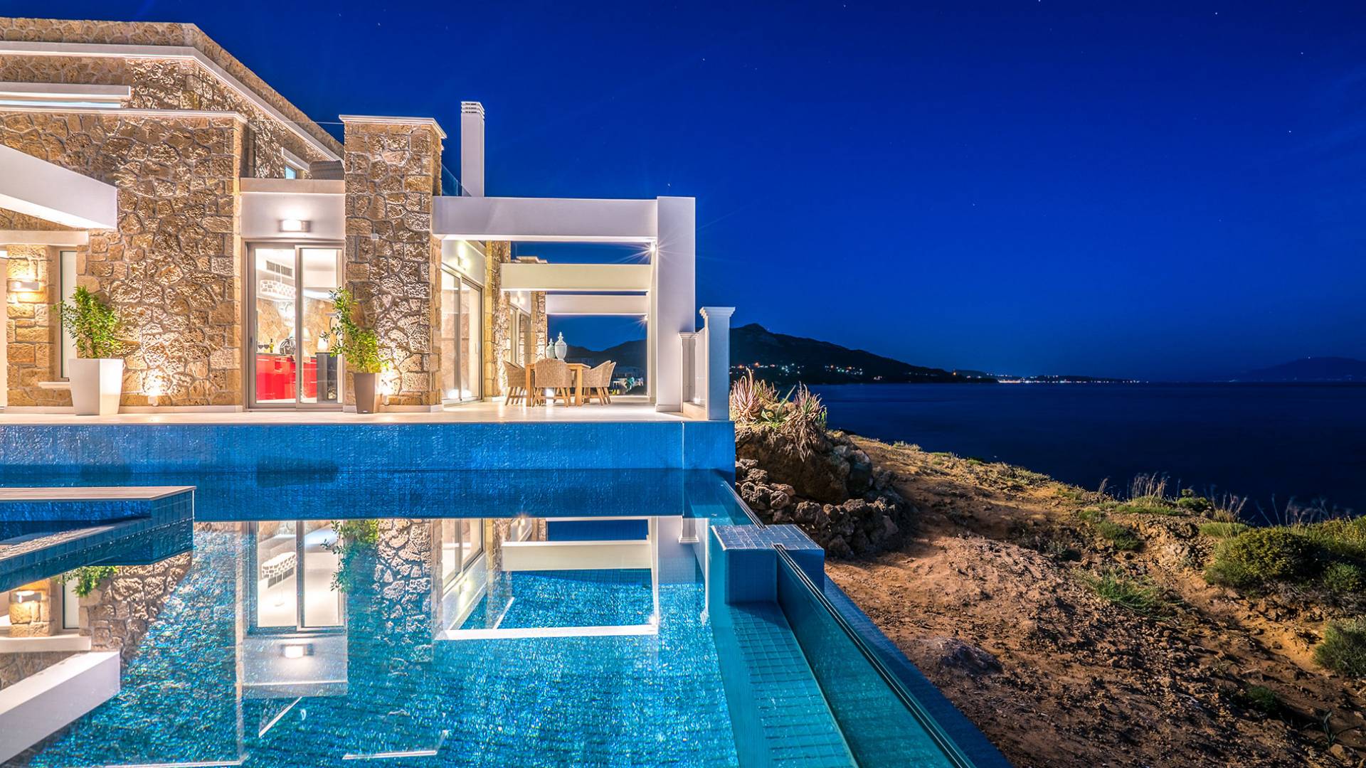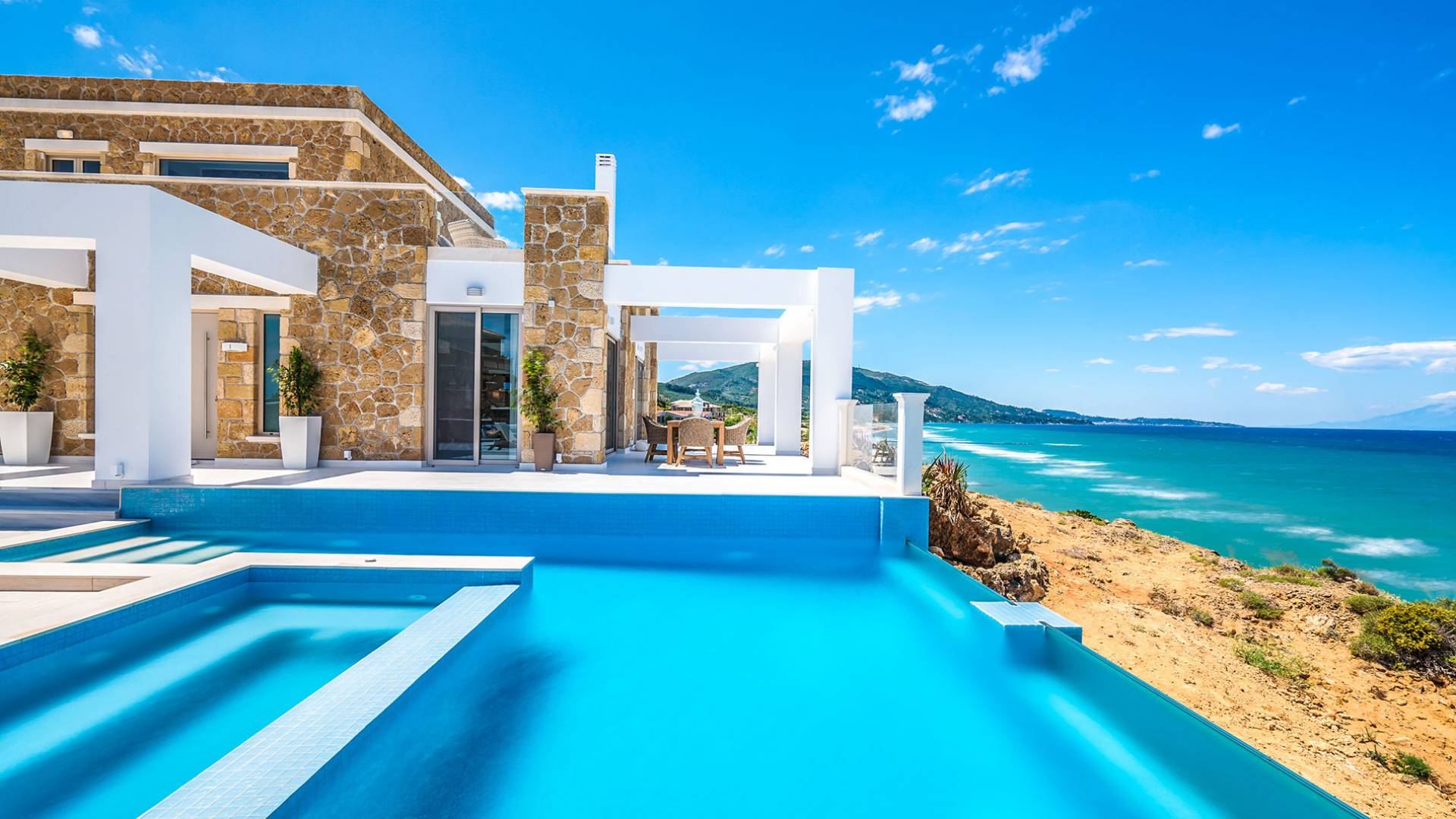 Villa Masada Zante ist eine Luxusvilla mit 3 Schlafzimmern und einem privaten Pool. Wir stellen Ihnen ein neues, einzigartiges, luxuriöses Steinhaus auf der Insel Zakynthos vor, die Masada Villa. Man kann dieses Design nur als stilvoll zeitgemäß, elegant bezeichnen. Die Villa liegt am landschaftlich reizvollsten Punkt der Insel, der Halbinsel St. Nikolaus, Vasilikos, bekannt für ihre kilometerlangen goldenen Sandstrände und „der“ Ort, an dem man sein muss.