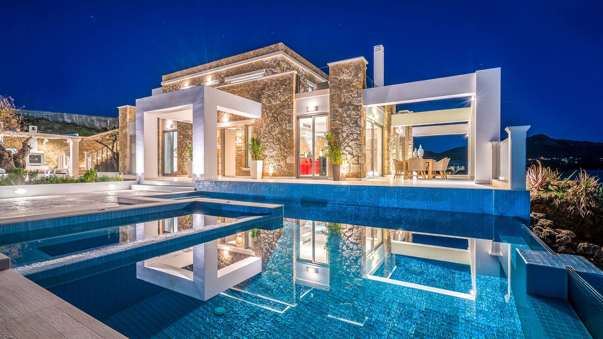 Farbe blau, Sonne und Luxus, nichts kann diese Kombination übertreffen. Was gibt es sonst noch für Ihren Urlaub zu fragen? Gönnen Sie sich einen beheizten privaten Pool in der Gemütlichkeit Ihrer eigenen Villa, entweder drinnen oder draußen. Das…