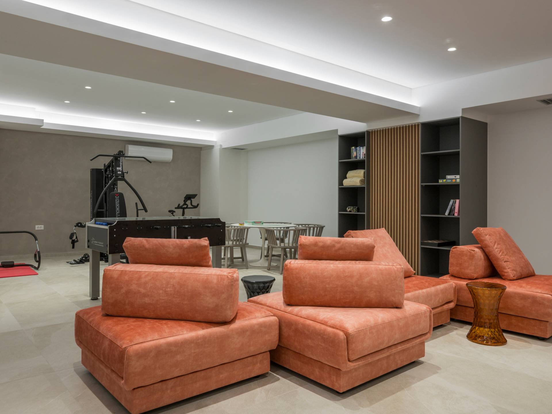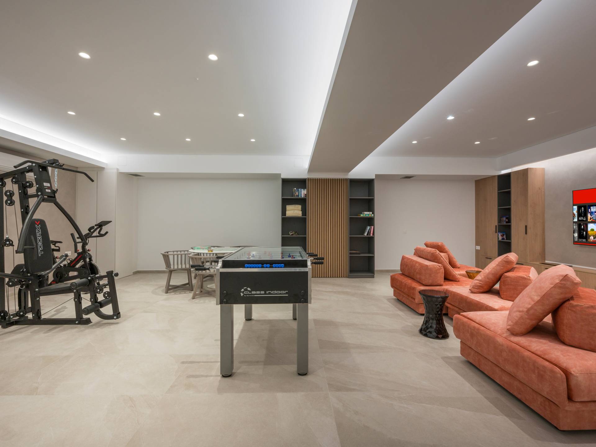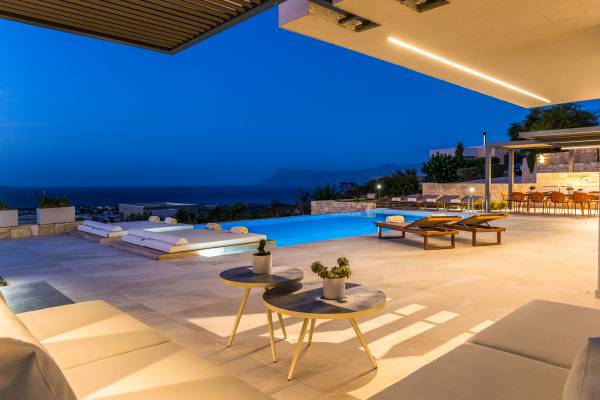 Villa Aeida Kissamos umfasst 280 Quadratmeter eleganten Wohnraum, einschließlich eines eigenen 70 Quadratmeter großen Spielzimmers und eines Fitnessstudios für Unterhaltung und Wellness. Mit ihrem eleganten, modernen Design bietet die Villa Aeida Kissamos einen Panoramablick auf Olivenhaine, die bis zum türkisfarbenen Wasser der Kissamos-Bucht reichen. Draußen ist das Herzstück des Anwesens der weitläufige 50 Quadratmeter große Swimmingpool mit einer Tiefe von 1,6 Metern und bequemem Zugang über eine Leiter. Die Villa ist sorgfältig am Hang positioniert und bildet zusammen mit ihrem Schwestergrundstück weiter unten am Hang einen harmonischen Rückzugsort am Hang.