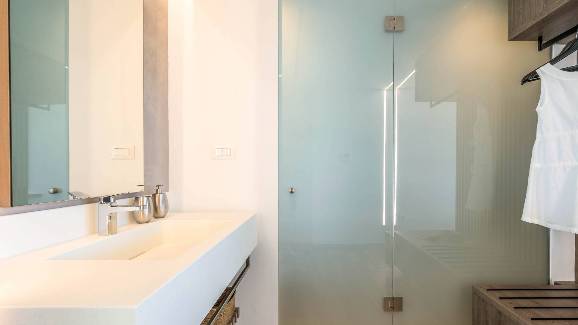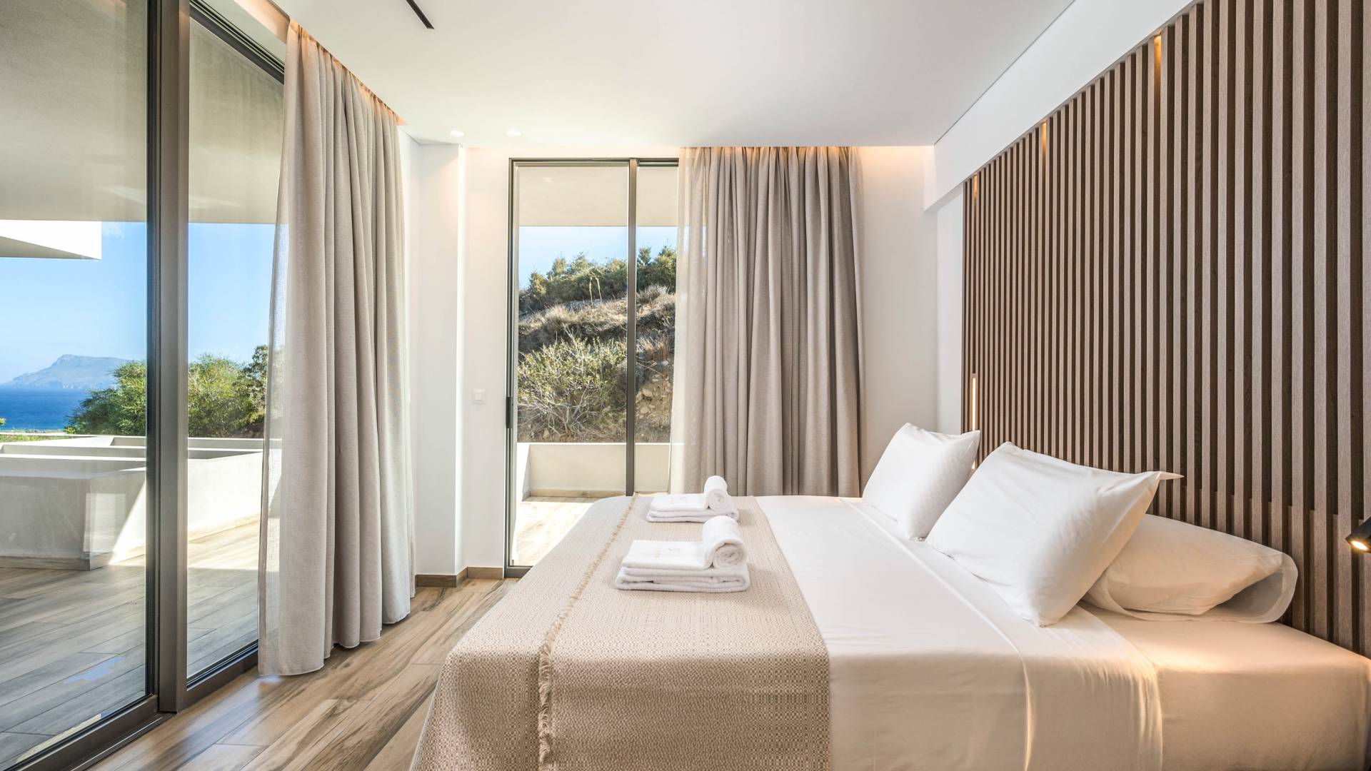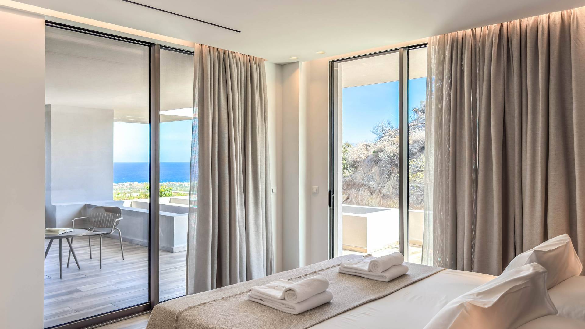 Im Inneren verfügt die Villa über eine offene Küche, die komplett mit erstklassigen Geräten ausgestattet ist und über ausreichend Ablagefläche für müheloses Kochen verfügt. Der angrenzende Ess- und Wohnbereich ist um einen umweltfreundlichen Kamin herum angeordnet und schafft einen gemütlichen Gemeinschaftsraum. Jedes Schlafzimmer bietet Platz für bis zu 10 Gäste und ist ein eigener privater Rückzugsort mit eigenem Bad und atemberaubendem Meer- und Bergblick.