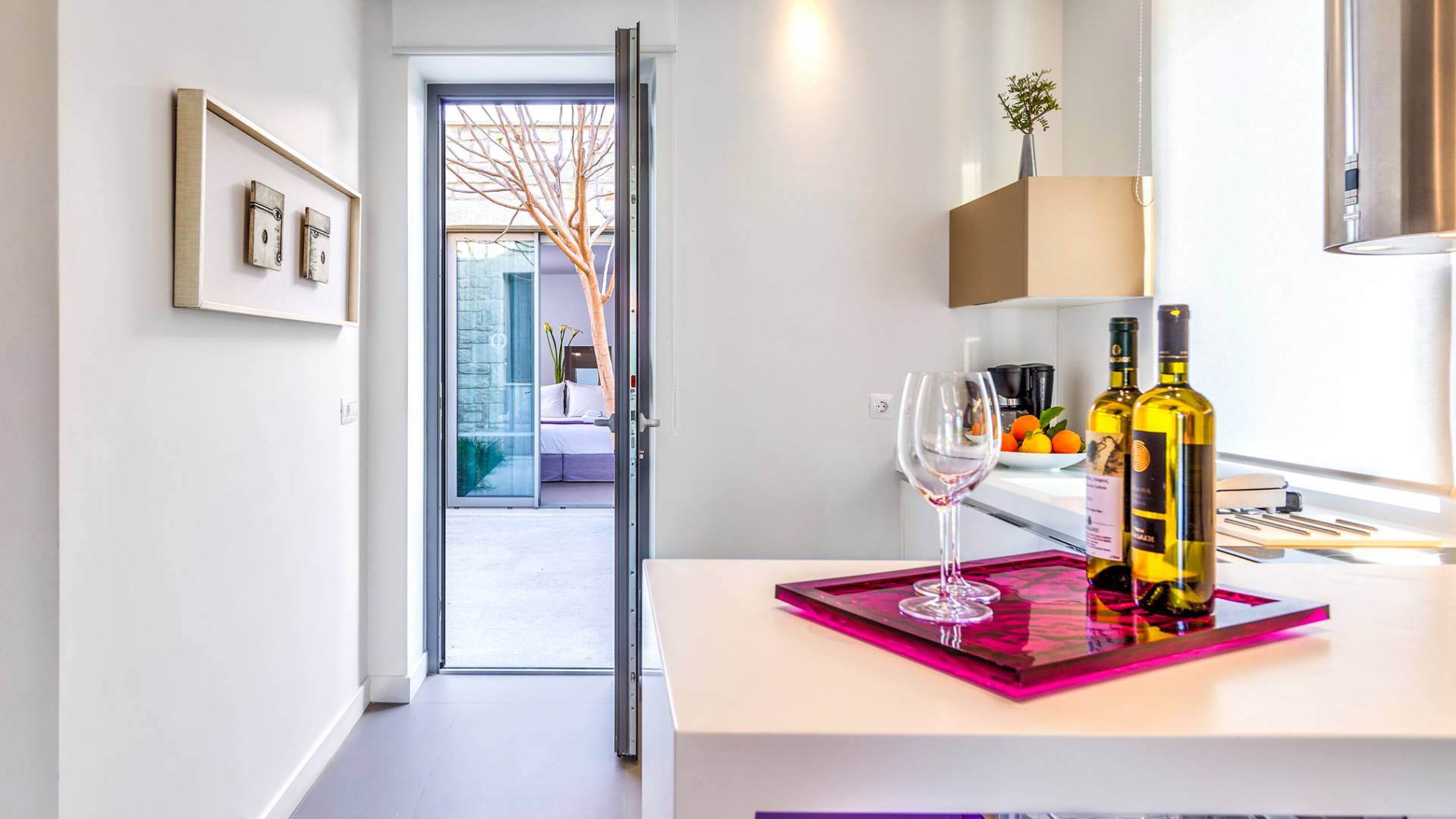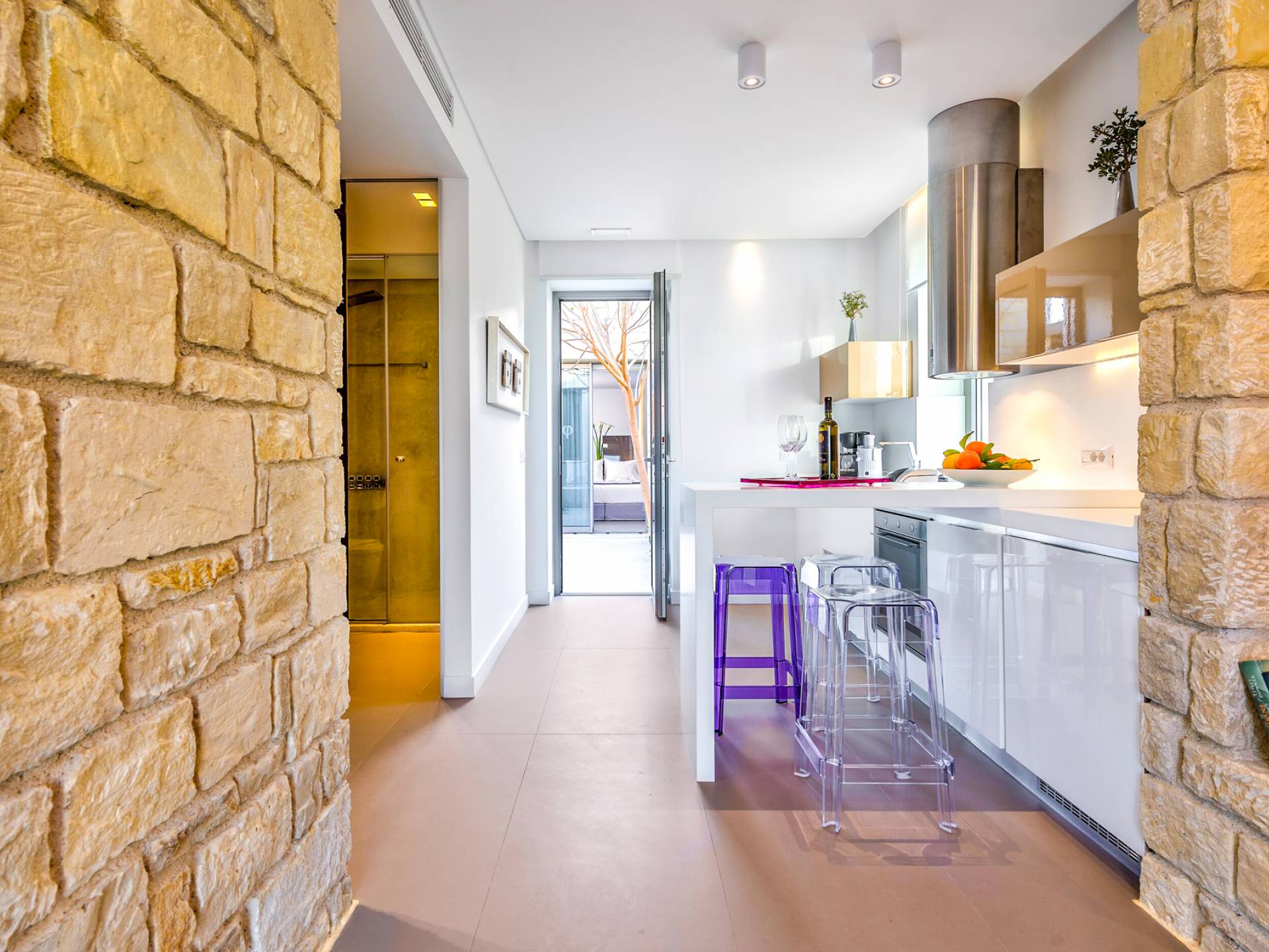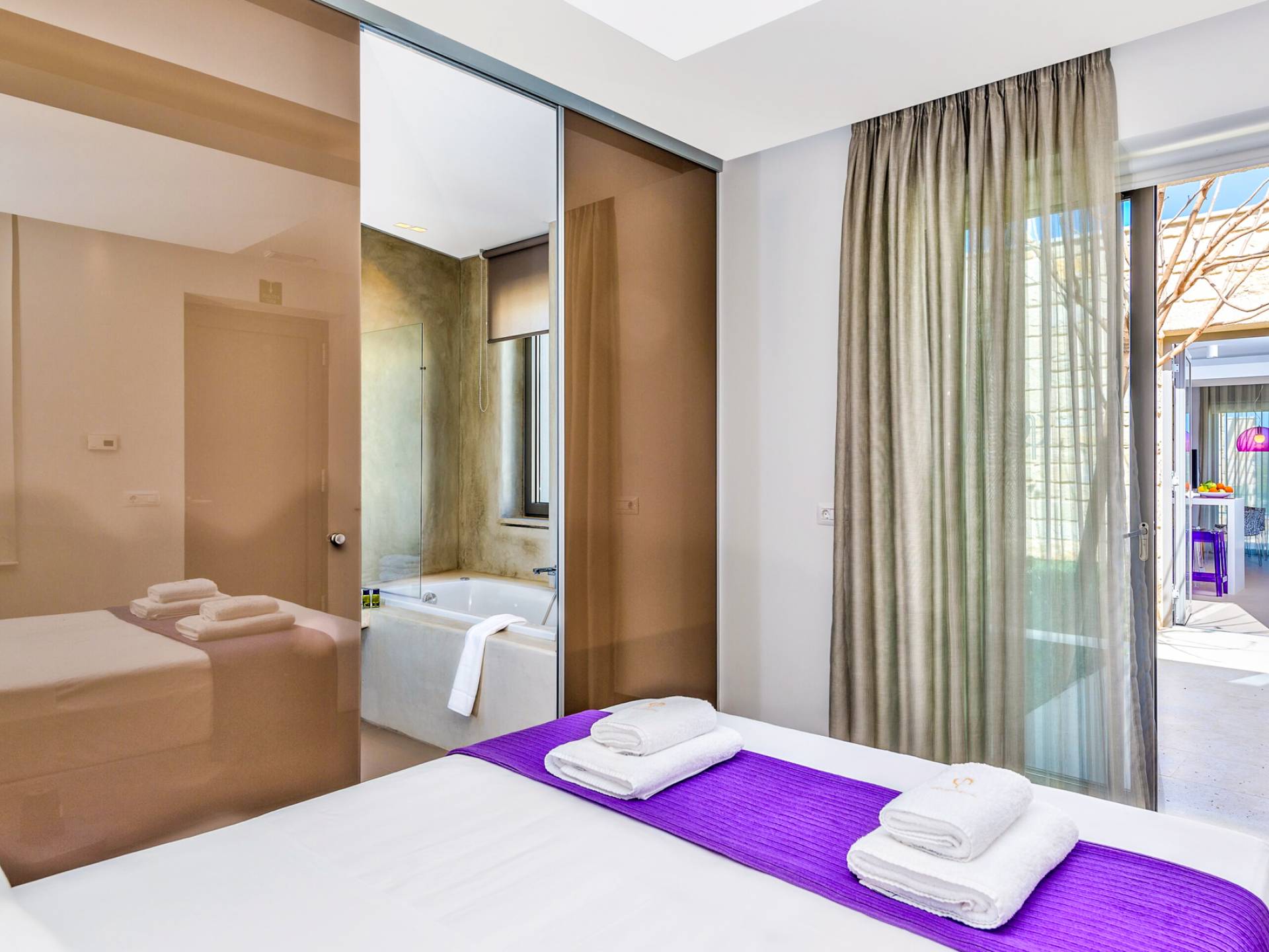 Der Innen- und Außenbereich sind auf einer Ebene konzentriert mit Zugang über einen rollstuhlgerechten Weg, der durch die Gärten zum Parkplatz führt. Betont wurde der Außenbereich, der mit den stilvollen architektonischen Linien des Innenbereichs harmoniert. Der Außenbereich bietet einen privaten Infinity-Pool für unendliche Momente der Entspannung und einen bezaubernden Essbereich, der von einer speziell entworfenen Pergola bedeckt ist und Schatten spendet, während die mediterrane Sonne durchscheint.