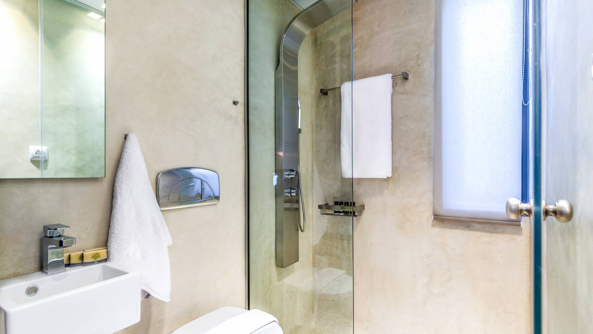 Der Wohnbereich ist modern mit umfangreichen Natursteinelementen, die mit modernen, sparsamen Linien verschmelzen, während die Küche mit praktischen Corian-Arbeitsflächen, hochmodernen Geräten und einem informellen Essbereich offen gestaltet ist. Das Hauptschlafzimmer ist offen mit einem preisgekrönten COCO Mat-Doppelbett und einer Glastrennwand, die den Schlafbereich vom Ankleidebereich trennt, während das en-suite Badezimmer über eine Whirlpool-Badewanne verfügt, die auf ein Fenster mit einzigartigem Meerblick blickt.