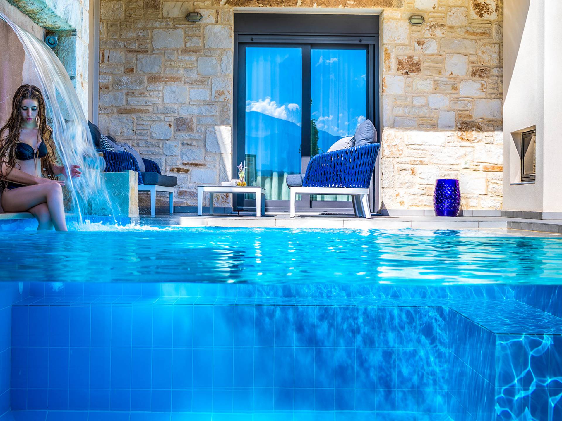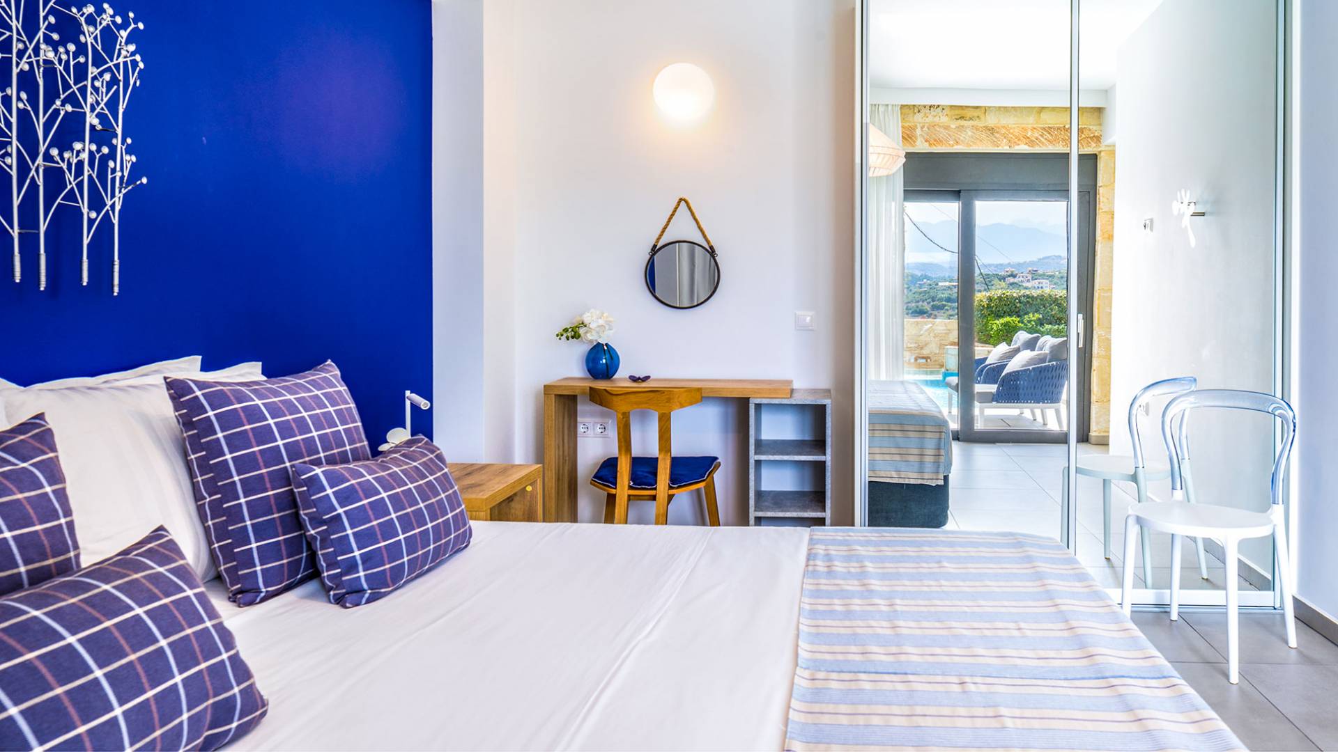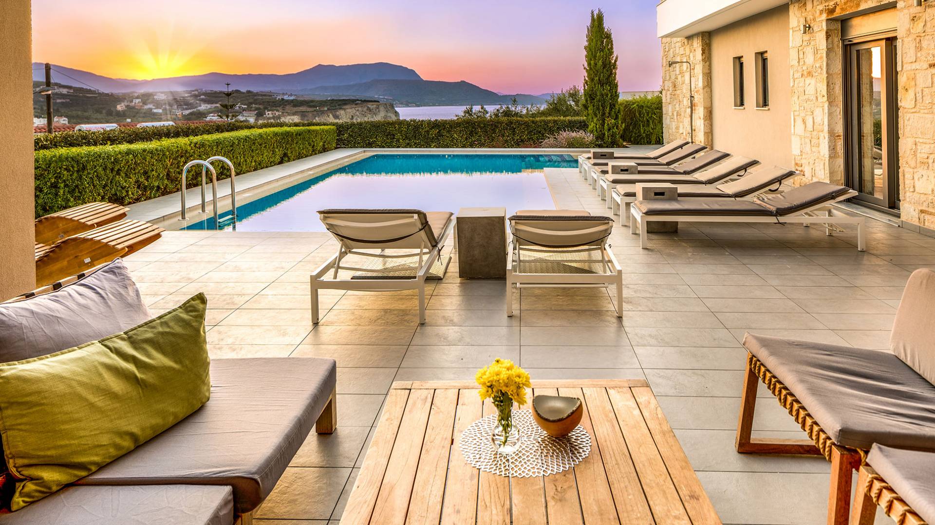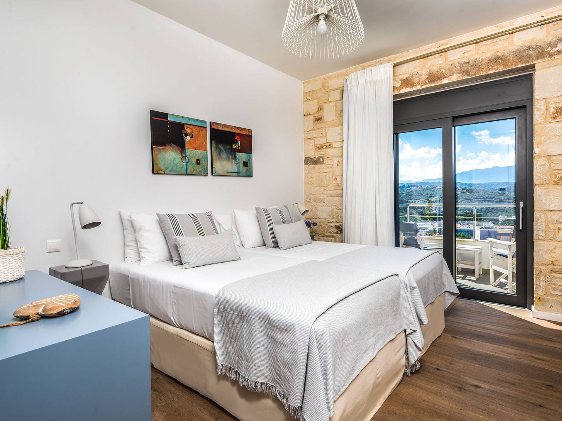 The villas blend contemporary style with natural materials like stone and wood, offering a warm and cozy feel. Stylish furnishings, soft earthy tones, and modern amenities ensure a comfortable stay, while handcrafted COCO-MAT beds provide restful sleep after a day of exploring Crete.