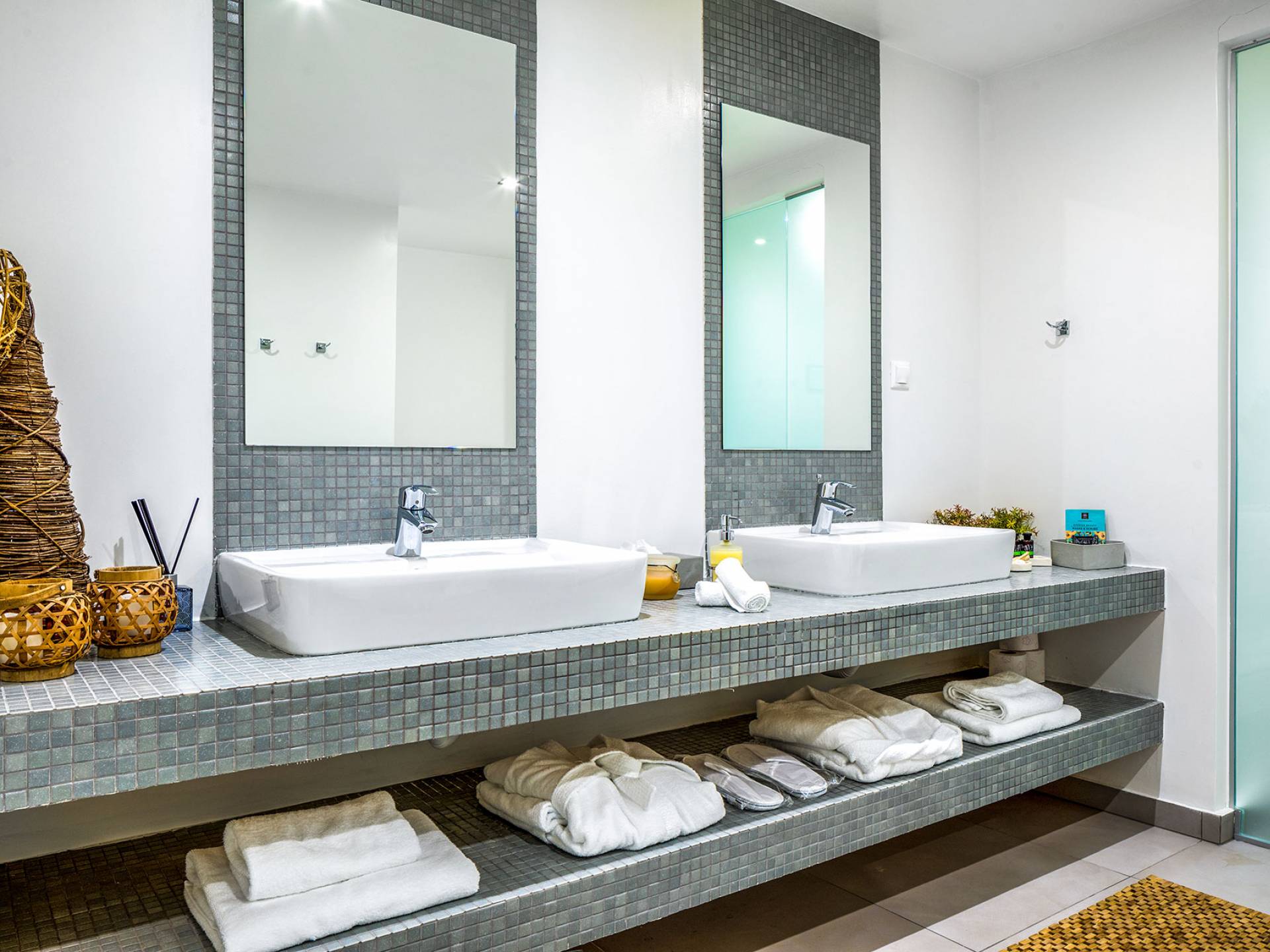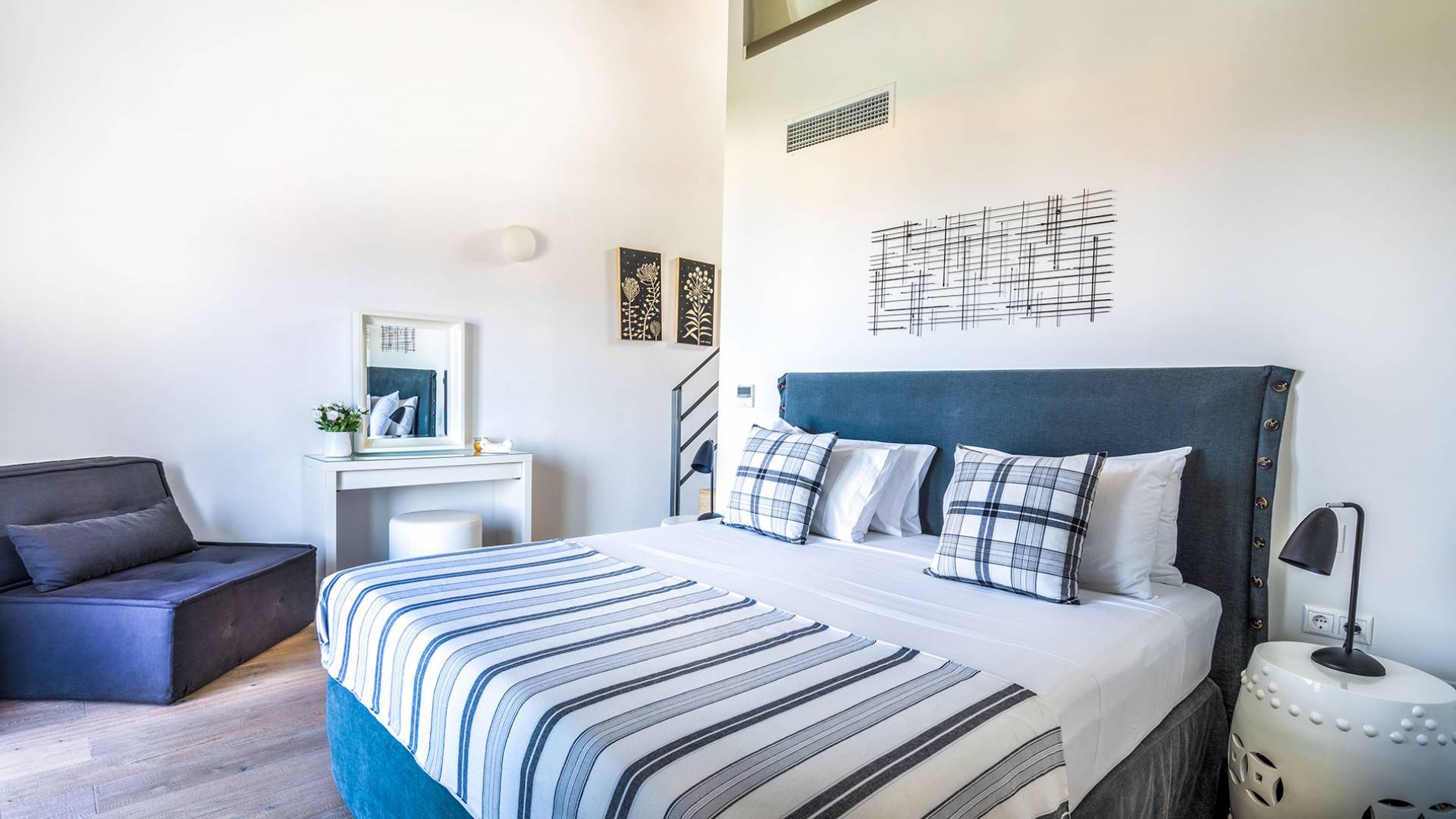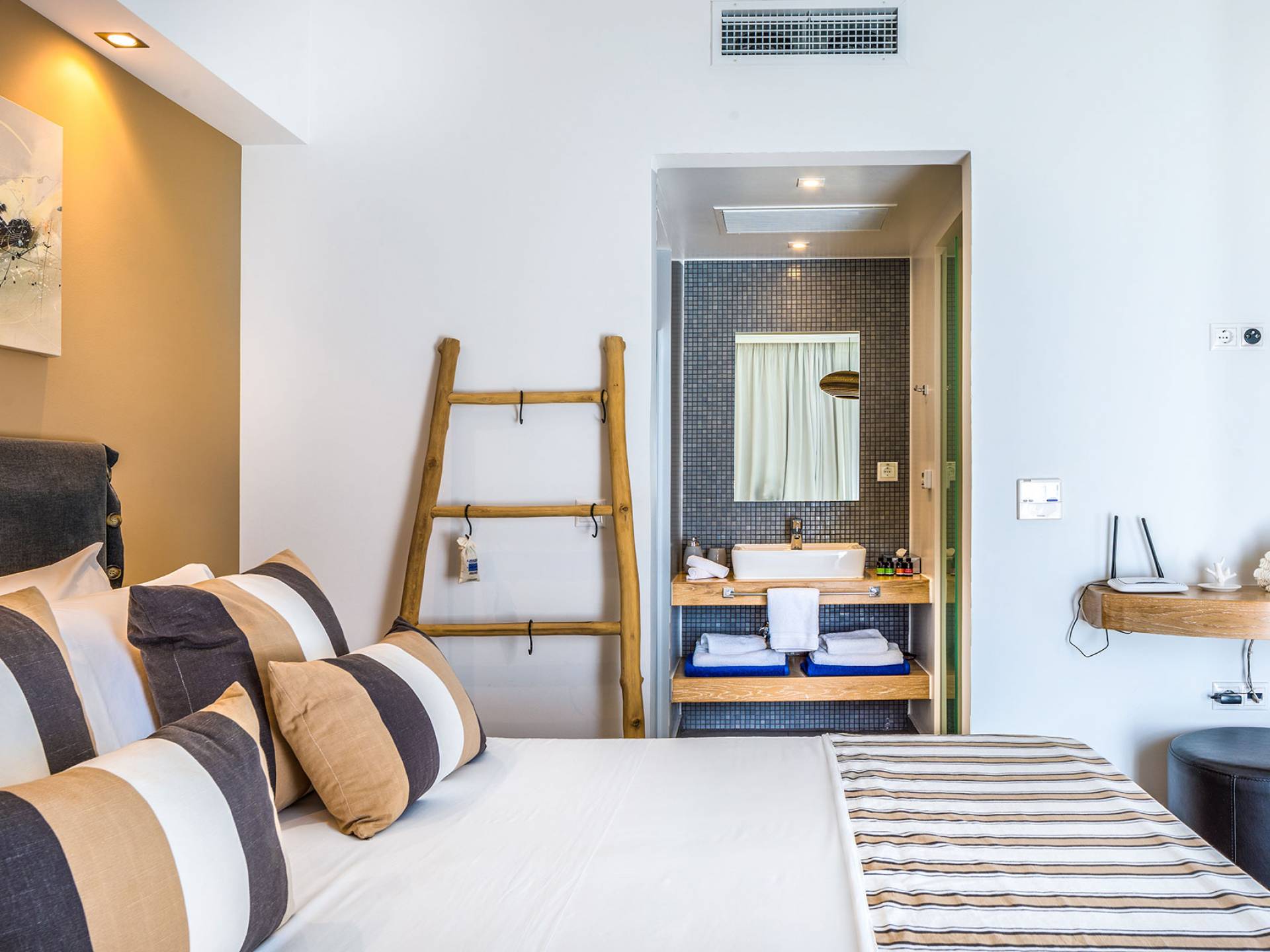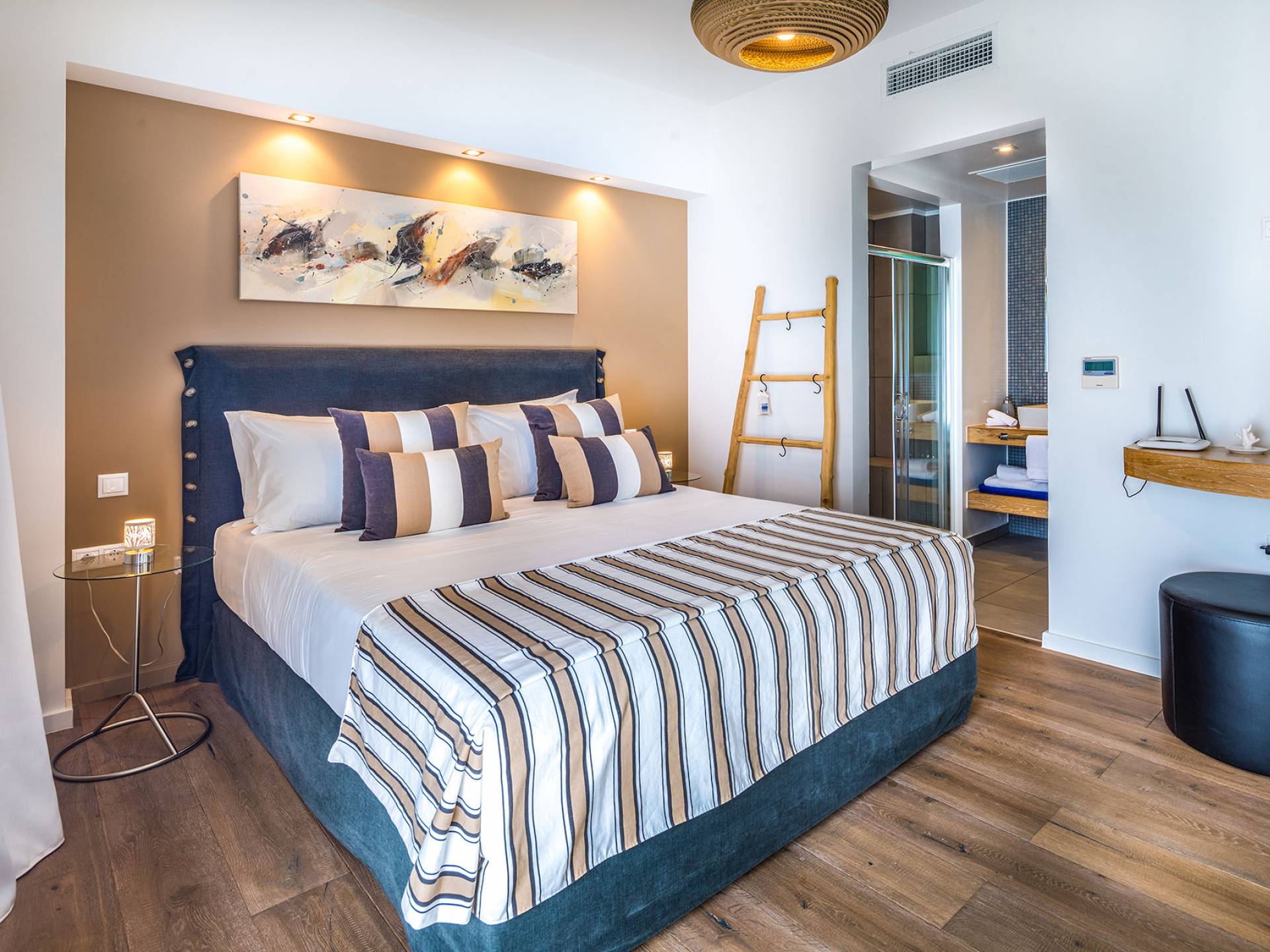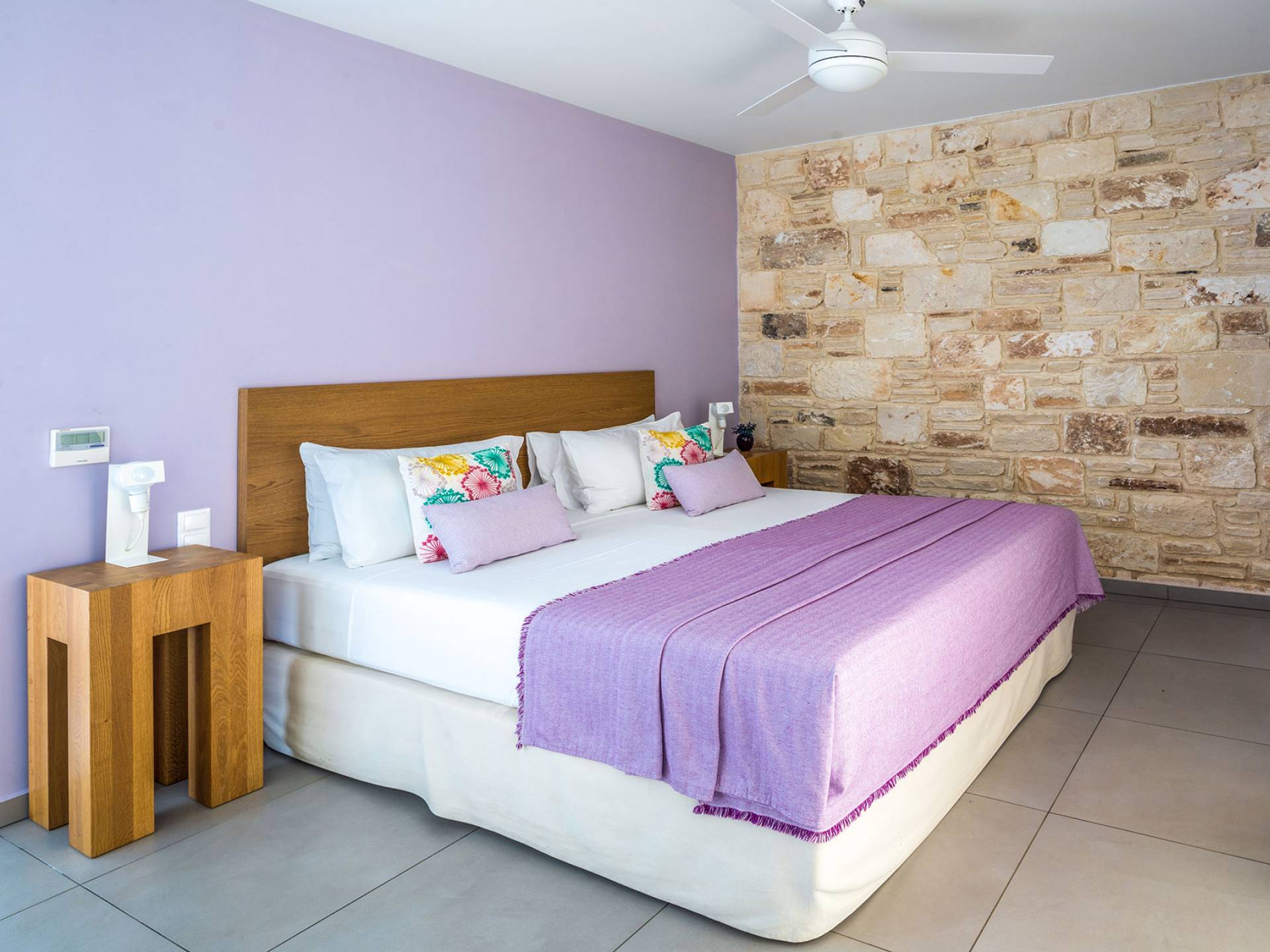 The villas blend contemporary style with natural materials like stone and wood, offering a warm and cozy feel. Stylish furnishings, soft earthy tones, and modern amenities ensure a comfortable stay, while handcrafted COCO-MAT beds provide restful sleep after a day of exploring Crete.