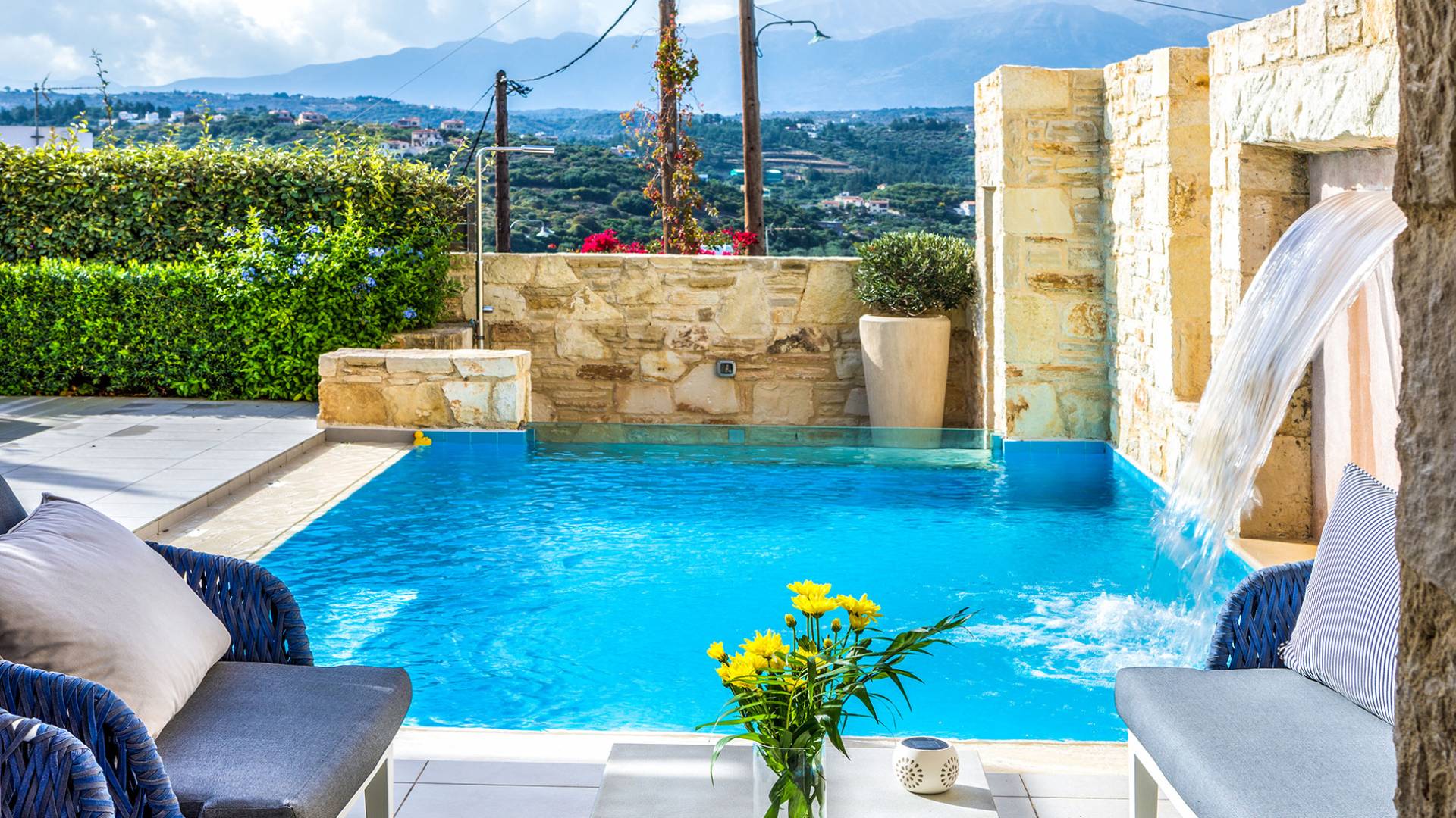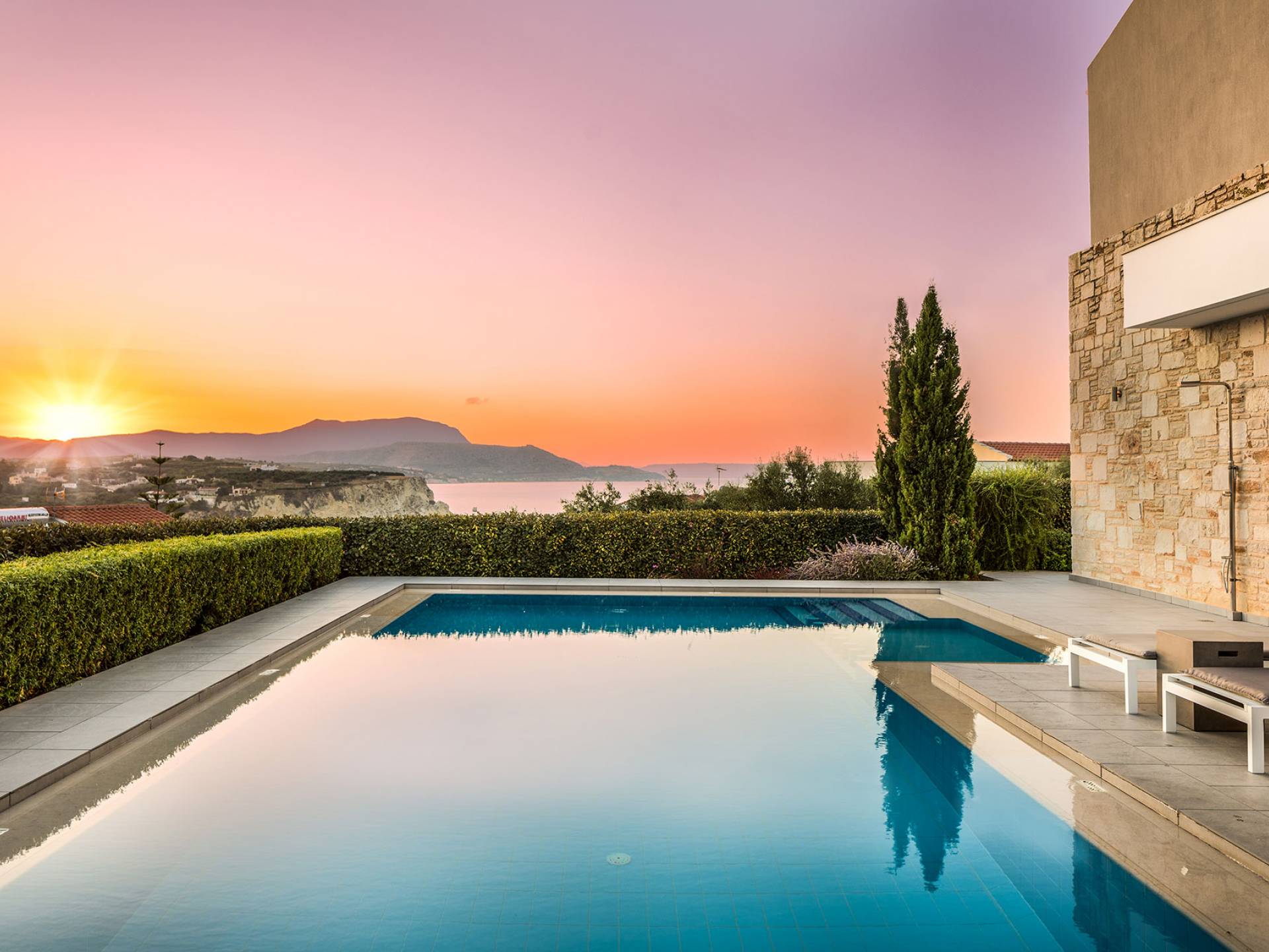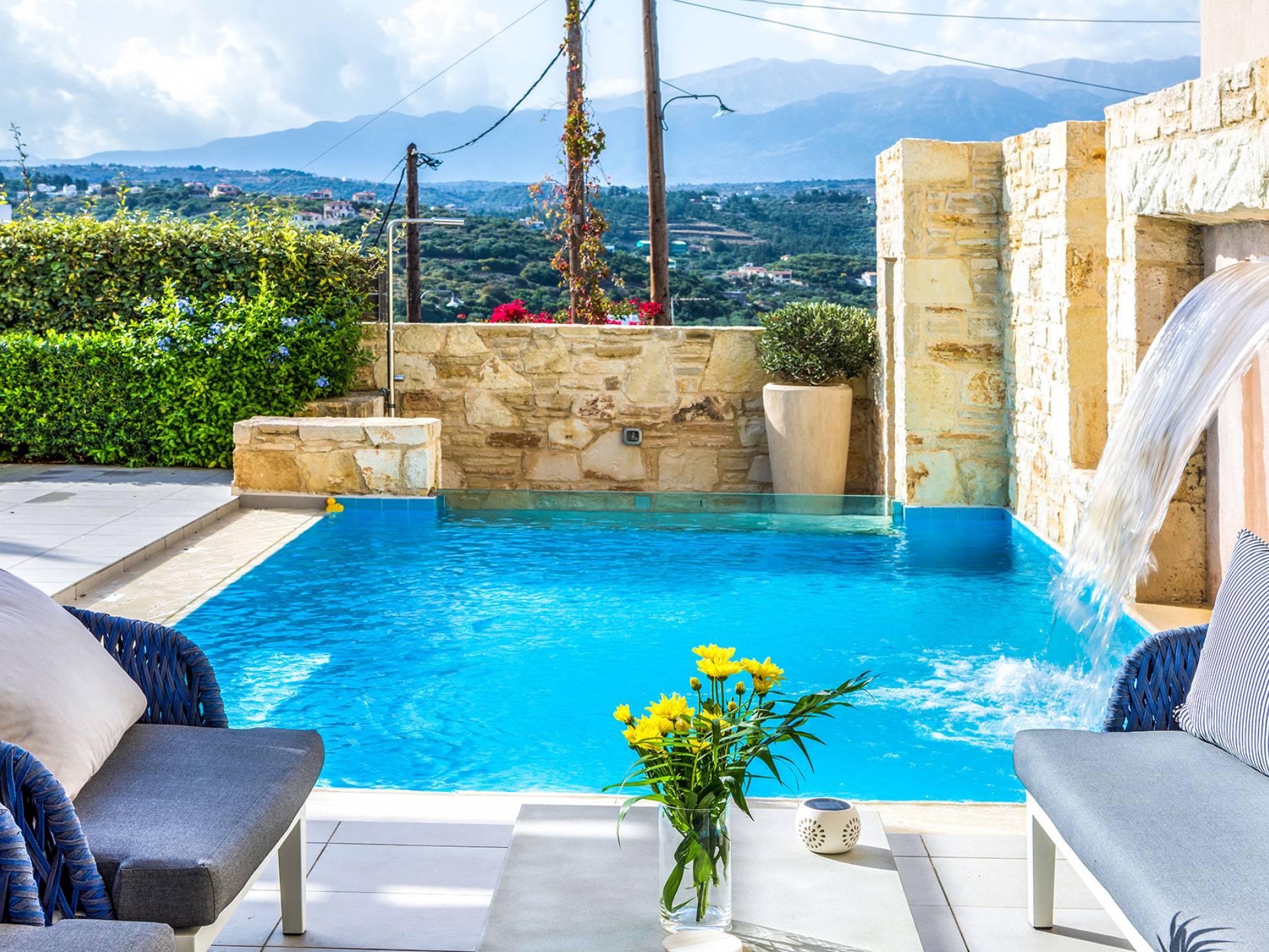 The villas enjoys a fantastic location just moments away from Almyrida, one of Crete’s most beloved summer destinations. Its stunning sandy beach is perfect for families and kids, offering safe swimming and beautiful scenery.