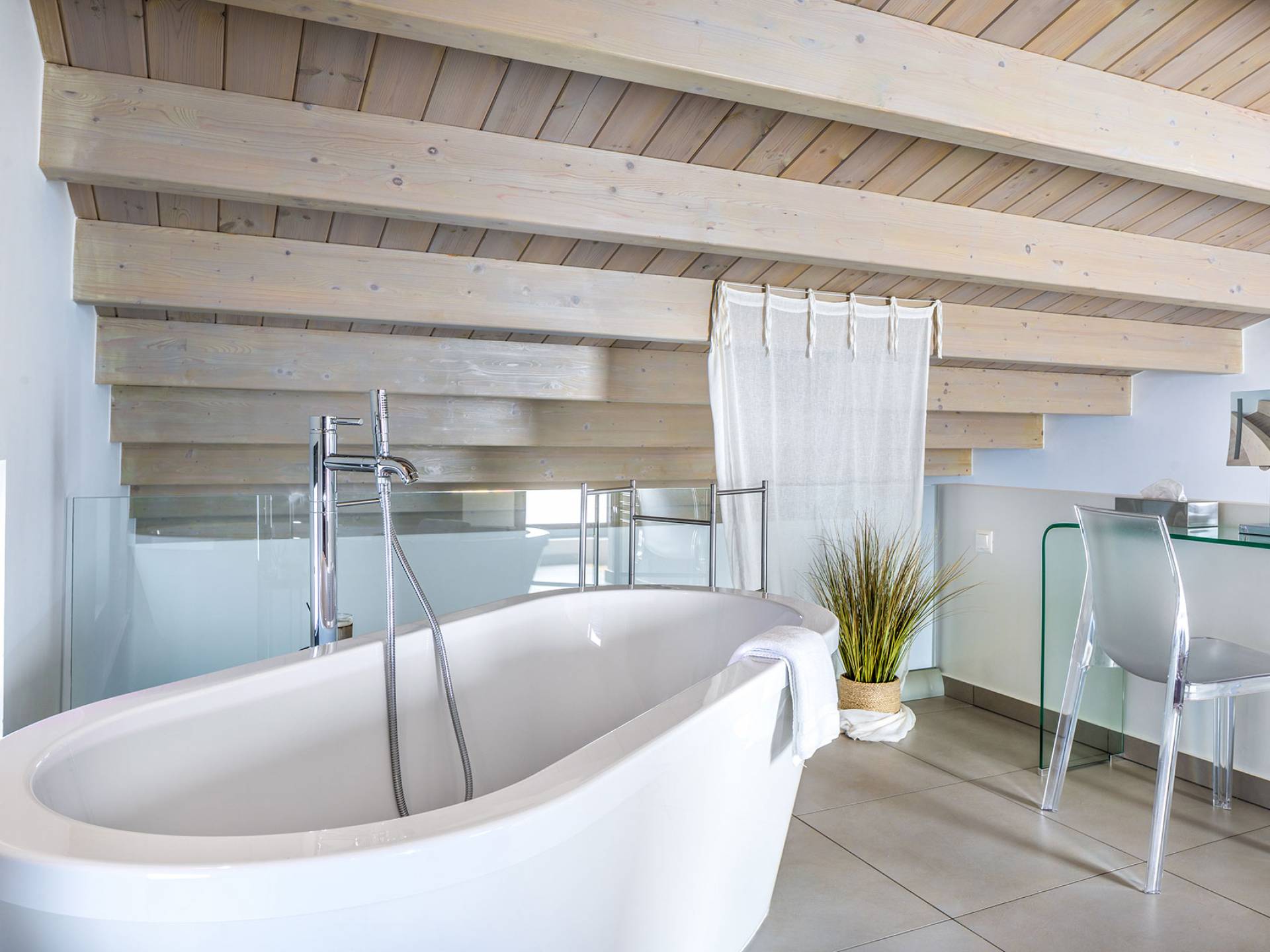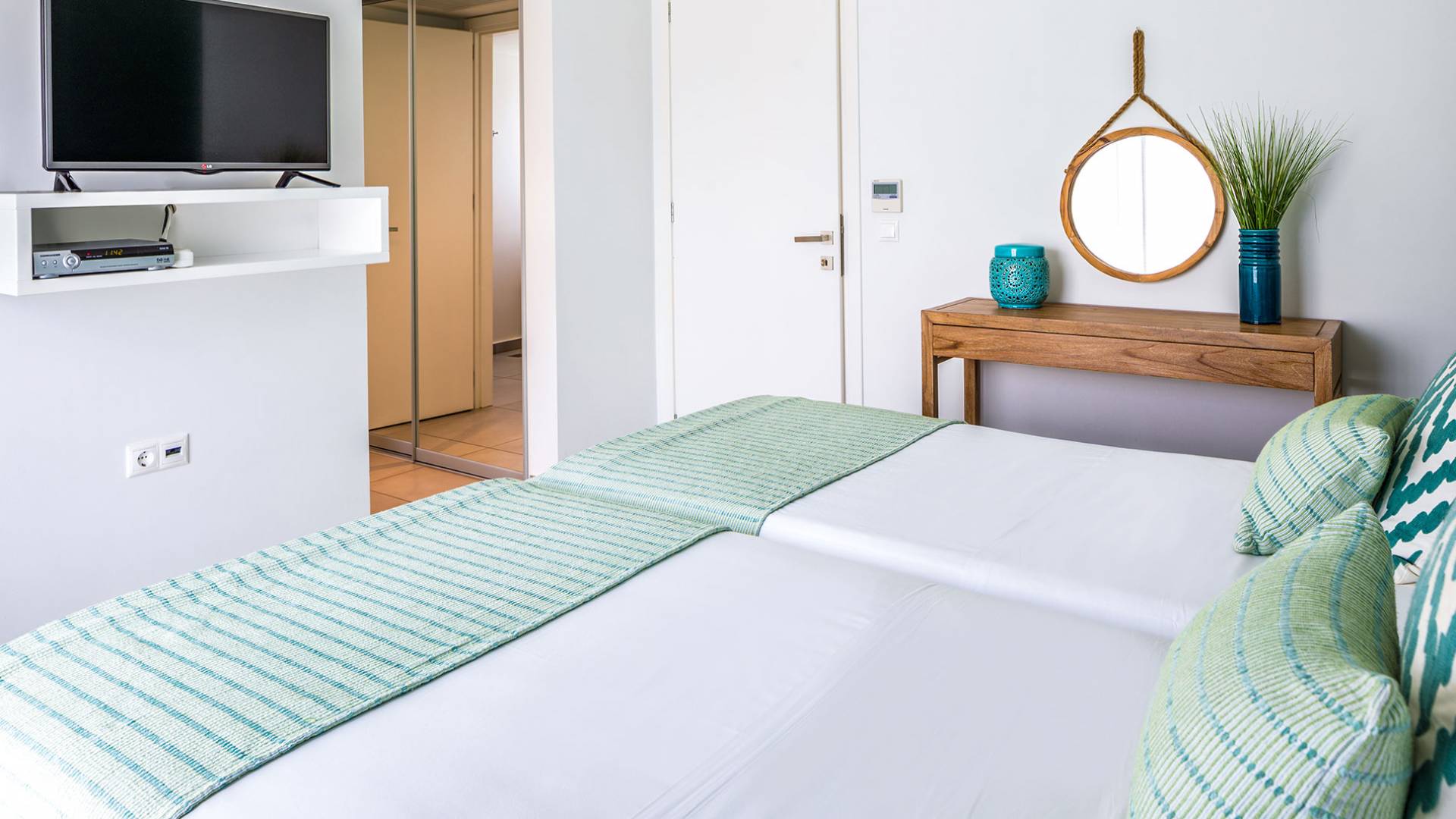 - Bedroom 4 with two single beds, ensuite bathroom and private balcony with sea view