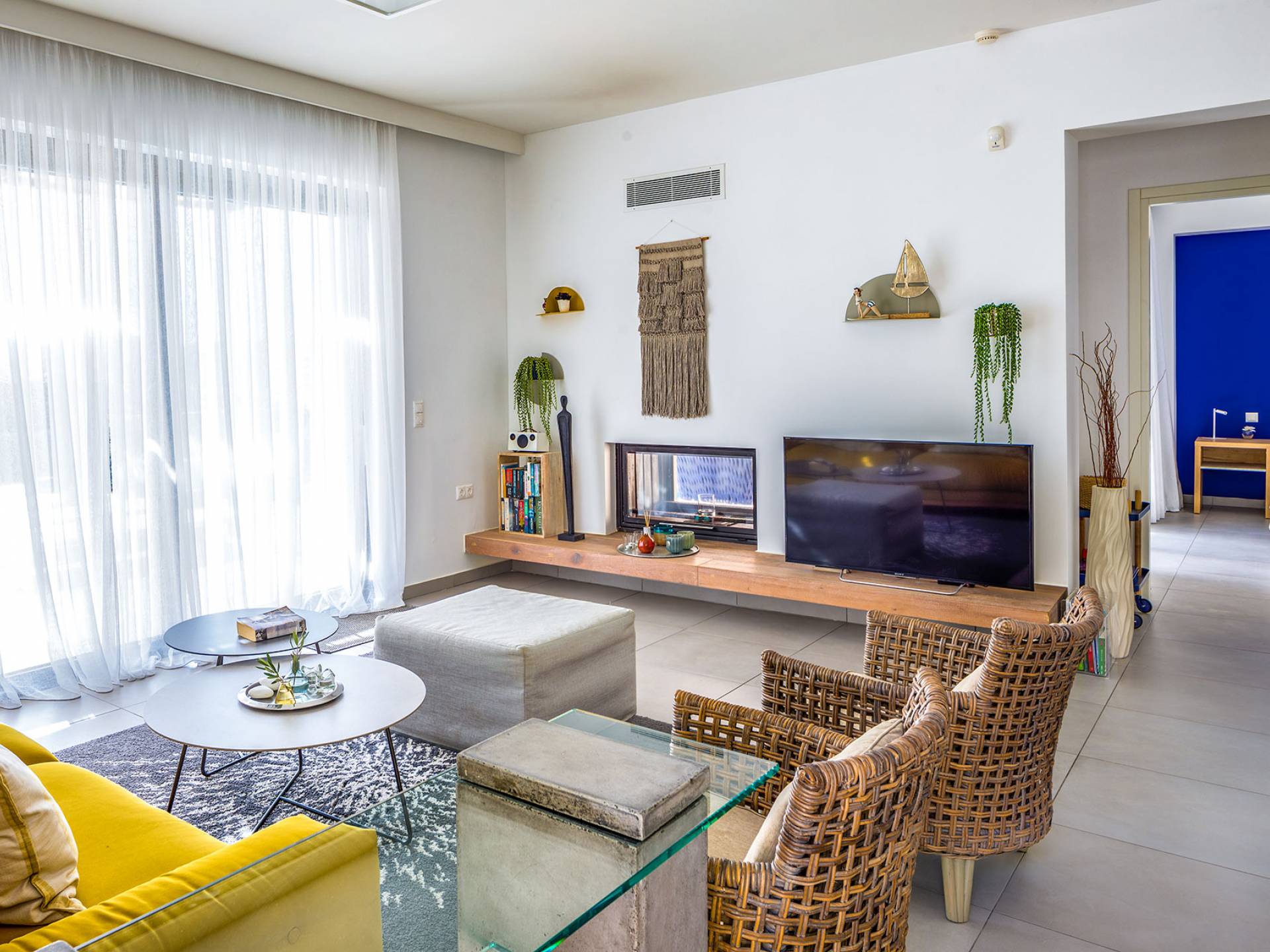 - Stylish open-plan living area with 50'' Smart TV and fireplace