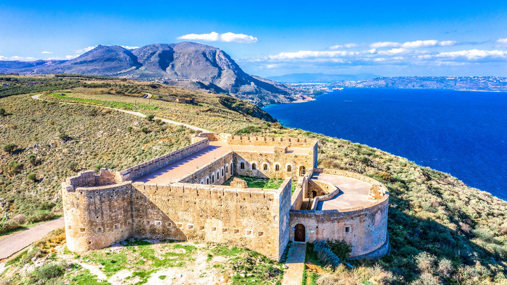 - Heraklion Airport (HER) – 115 km (2 hr drive).