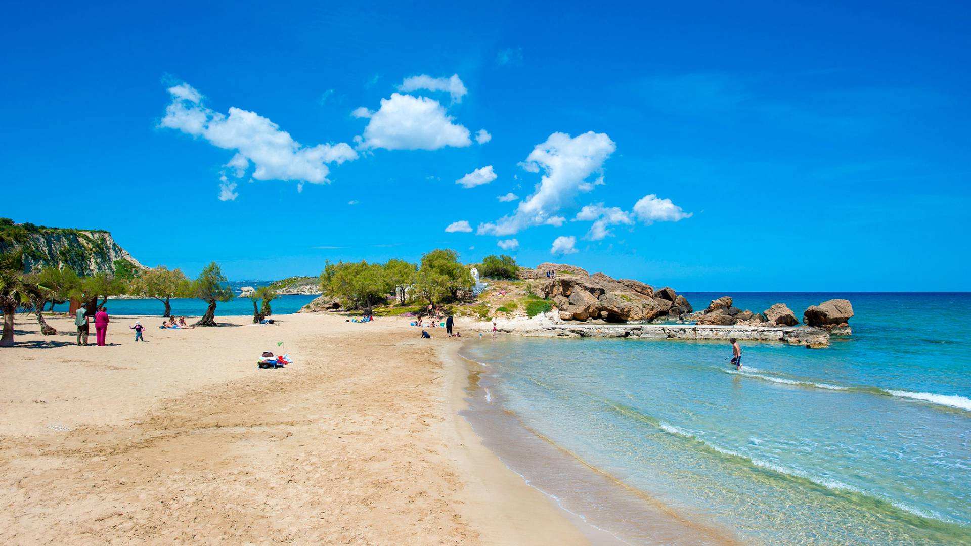 - Elafonisi – famous for its pink sand and crystal waters