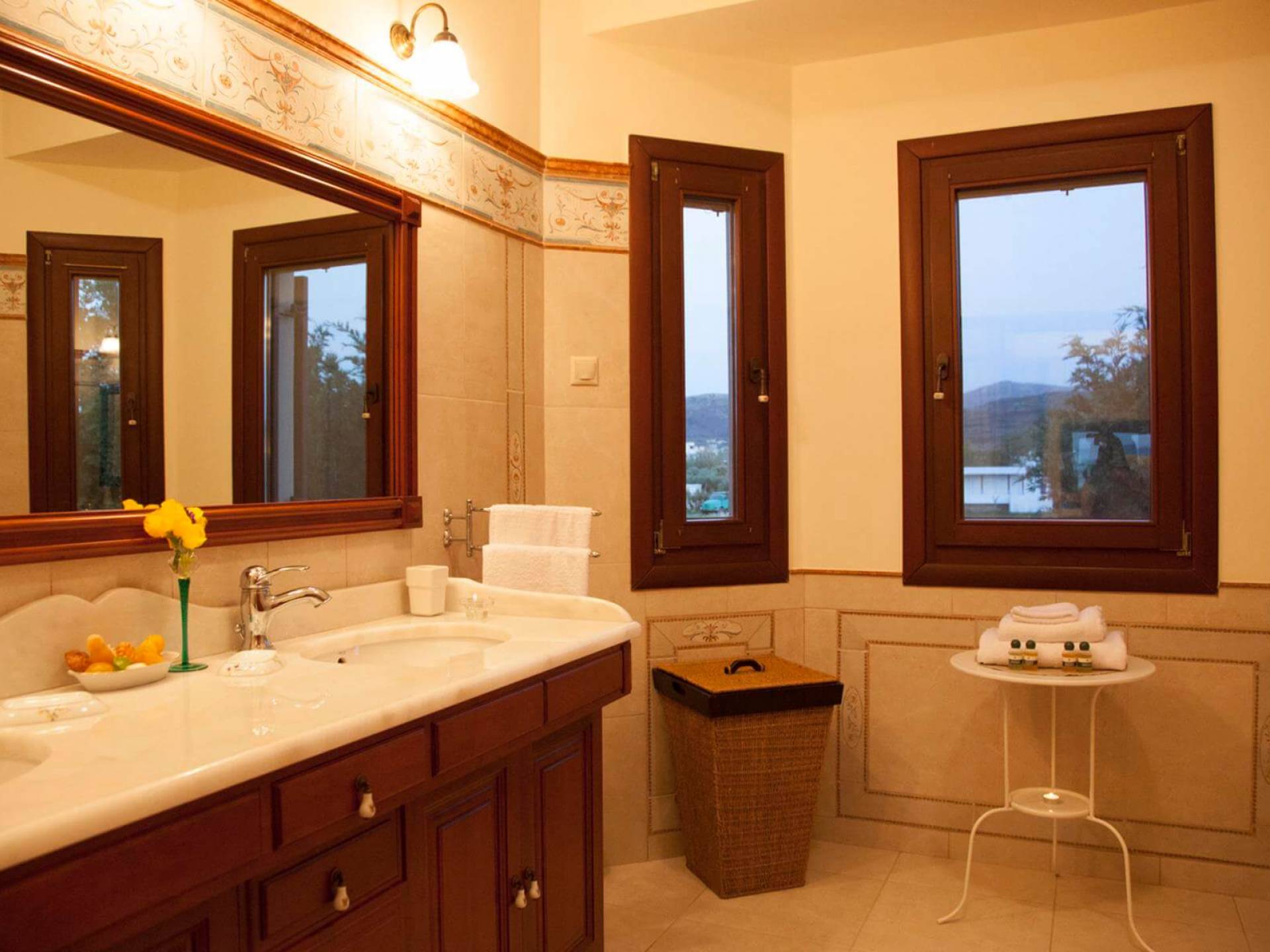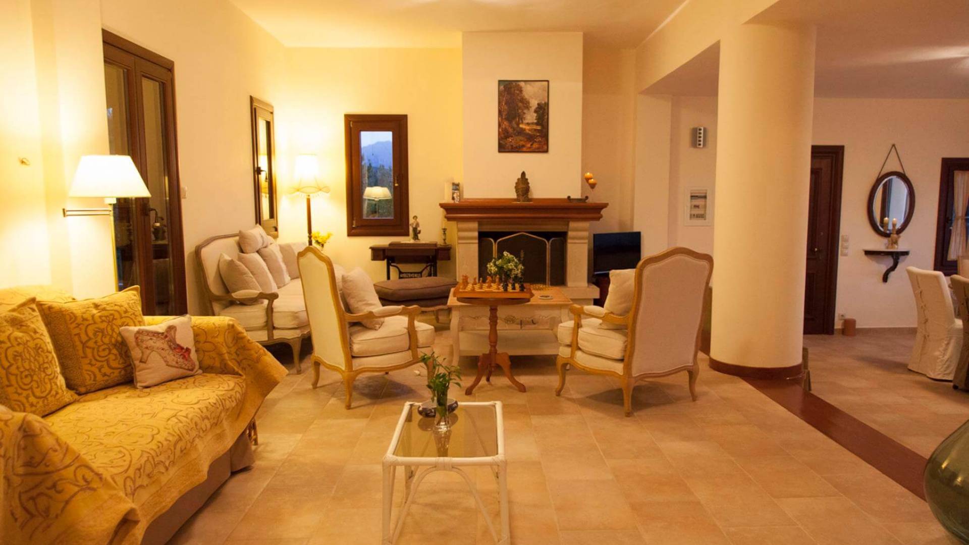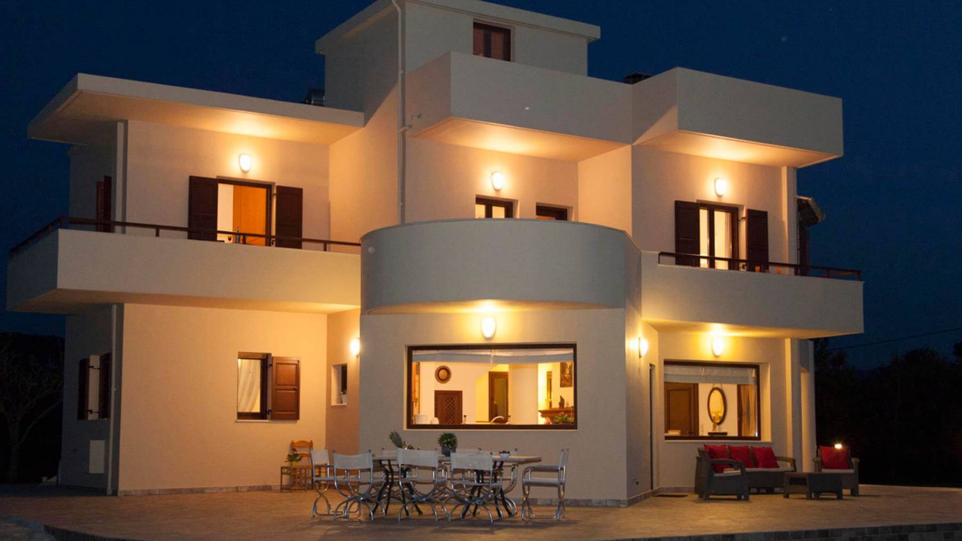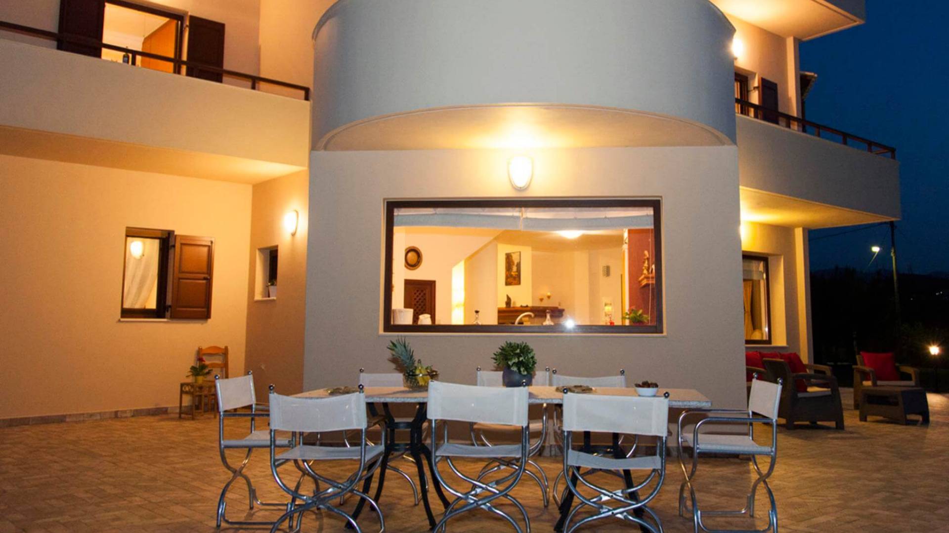 Im Erdgeschoss findet der Besucher in offener Anordnung eine voll ausgestattete Küche mit Speisekammer, einen Essbereich, das Wohnzimmer mit seinem schönen Kamin, ein Badezimmer und ein Schlafzimmer mit Doppelbett. Wenn man in den ersten Stock geht, findet man ein Doppelzimmer mit eigenem Bad, um die Terrasse herum, ein Zweibettzimmer, ein großes Badezimmer und ein weiteres Doppelzimmer. Alle Schlafzimmer profitieren von Balkon und Klimaanlage. Das erstaunlichste Erlebnis in der Allegra Villa Chania kann in einer Vollmondnacht sein, in der der Raum wunderschön beleuchtet ist, als ob es Tageslicht wäre!