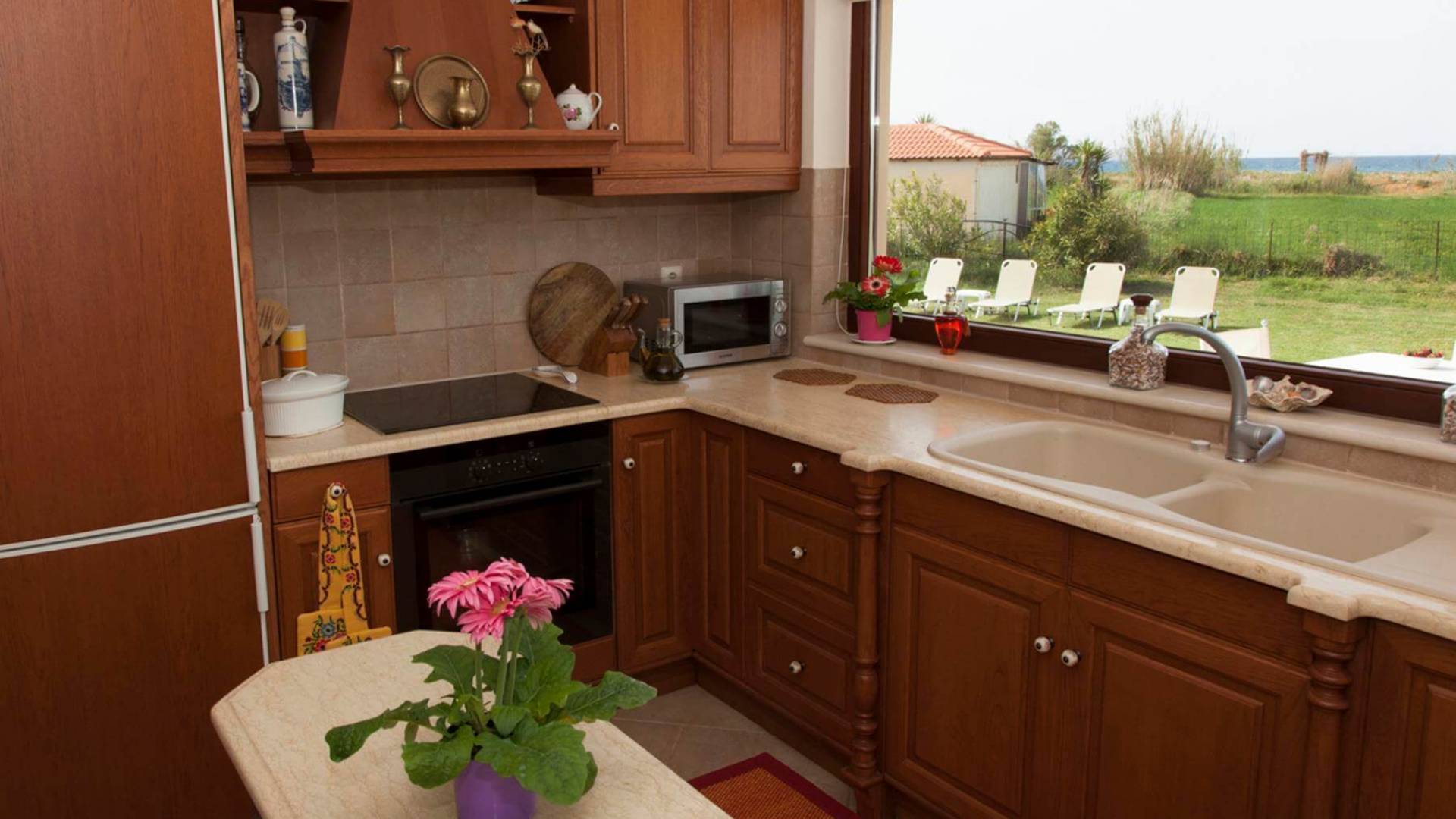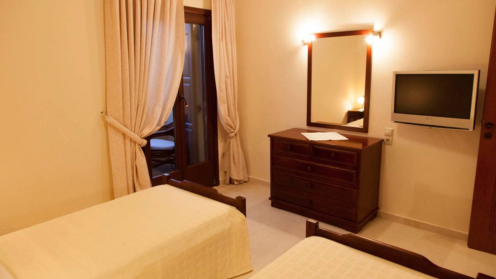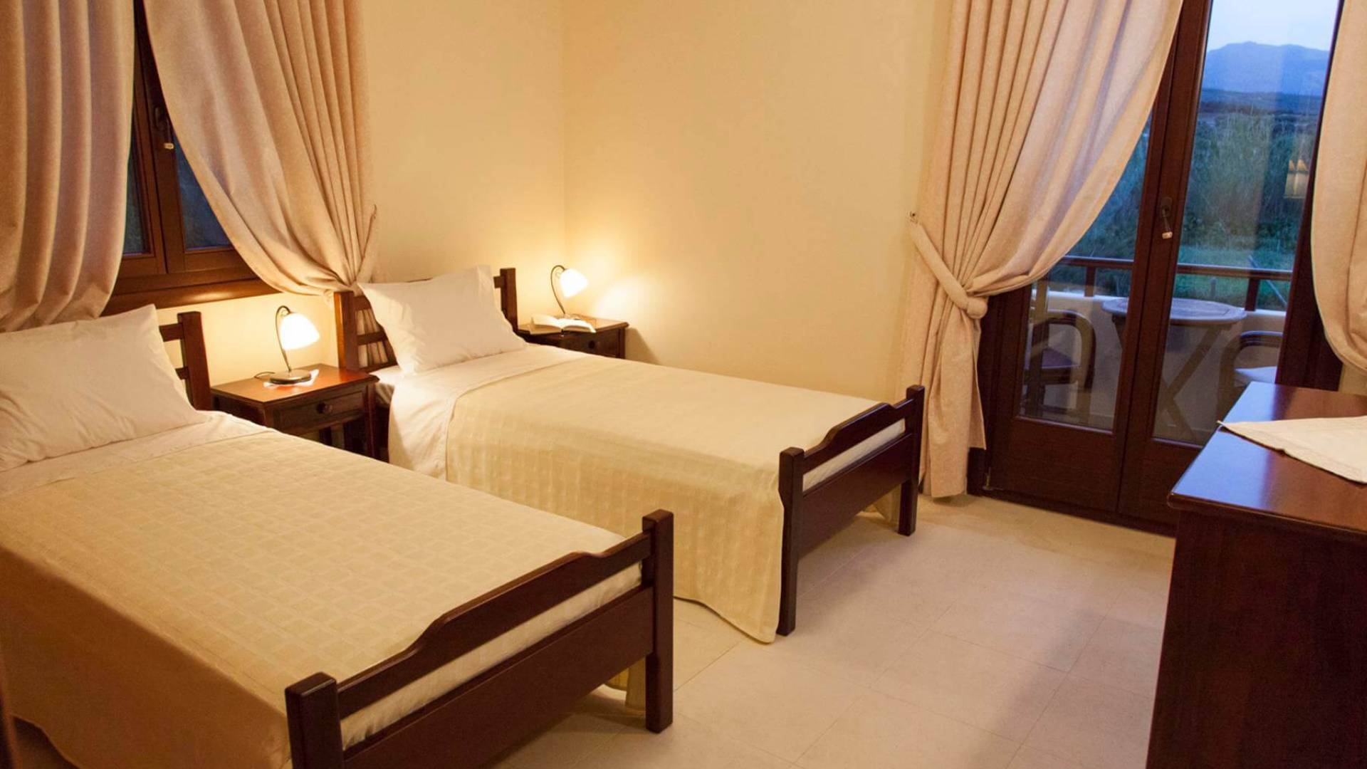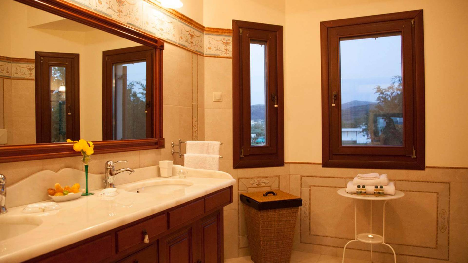 Im Erdgeschoss findet der Besucher in offener Anordnung eine voll ausgestattete Küche mit Speisekammer, einen Essbereich, das Wohnzimmer mit seinem schönen Kamin, ein Badezimmer und ein Schlafzimmer mit Doppelbett. Wenn man in den ersten Stock geht, findet man ein Doppelzimmer mit eigenem Bad, um die Terrasse herum, ein Zweibettzimmer, ein großes Badezimmer und ein weiteres Doppelzimmer. Alle Schlafzimmer profitieren von Balkon und Klimaanlage. Das erstaunlichste Erlebnis in der Allegra Villa Chania kann in einer Vollmondnacht sein, in der der Raum wunderschön beleuchtet ist, als ob es Tageslicht wäre!