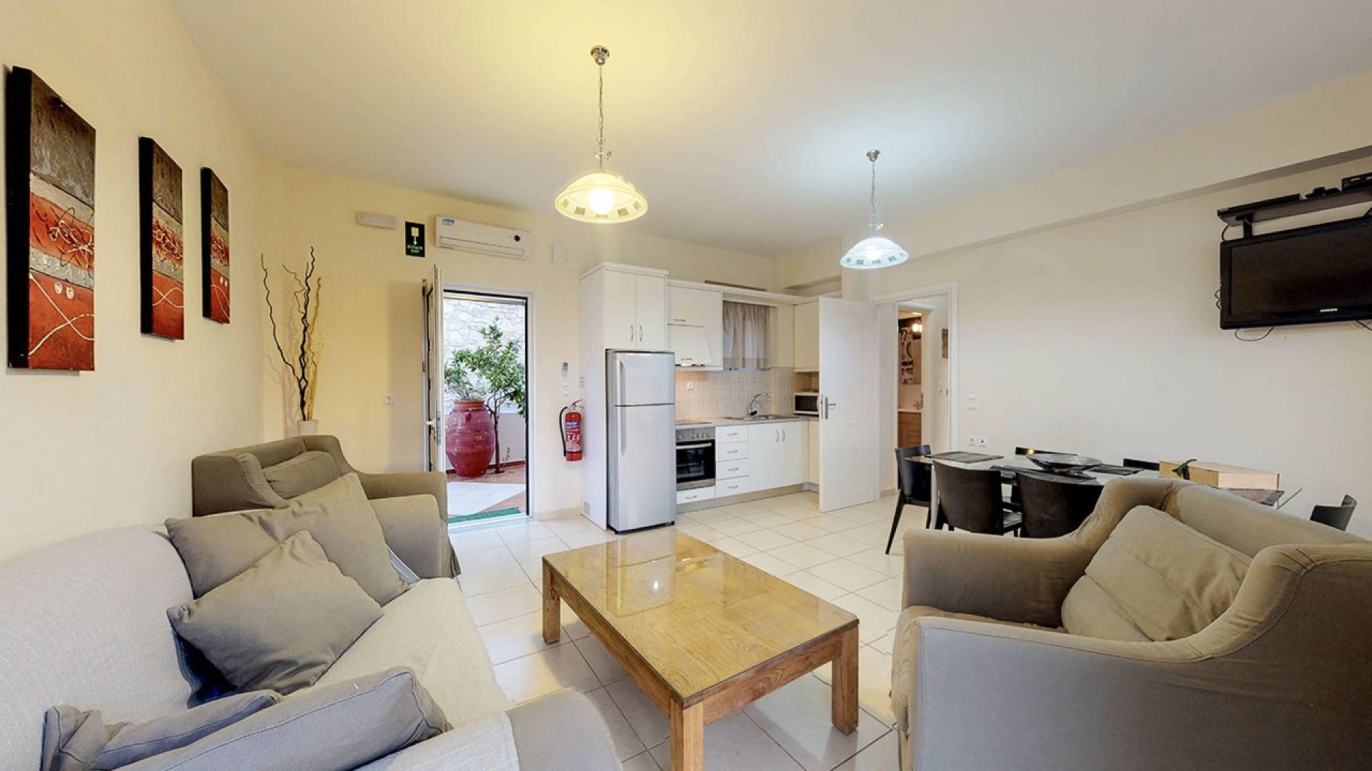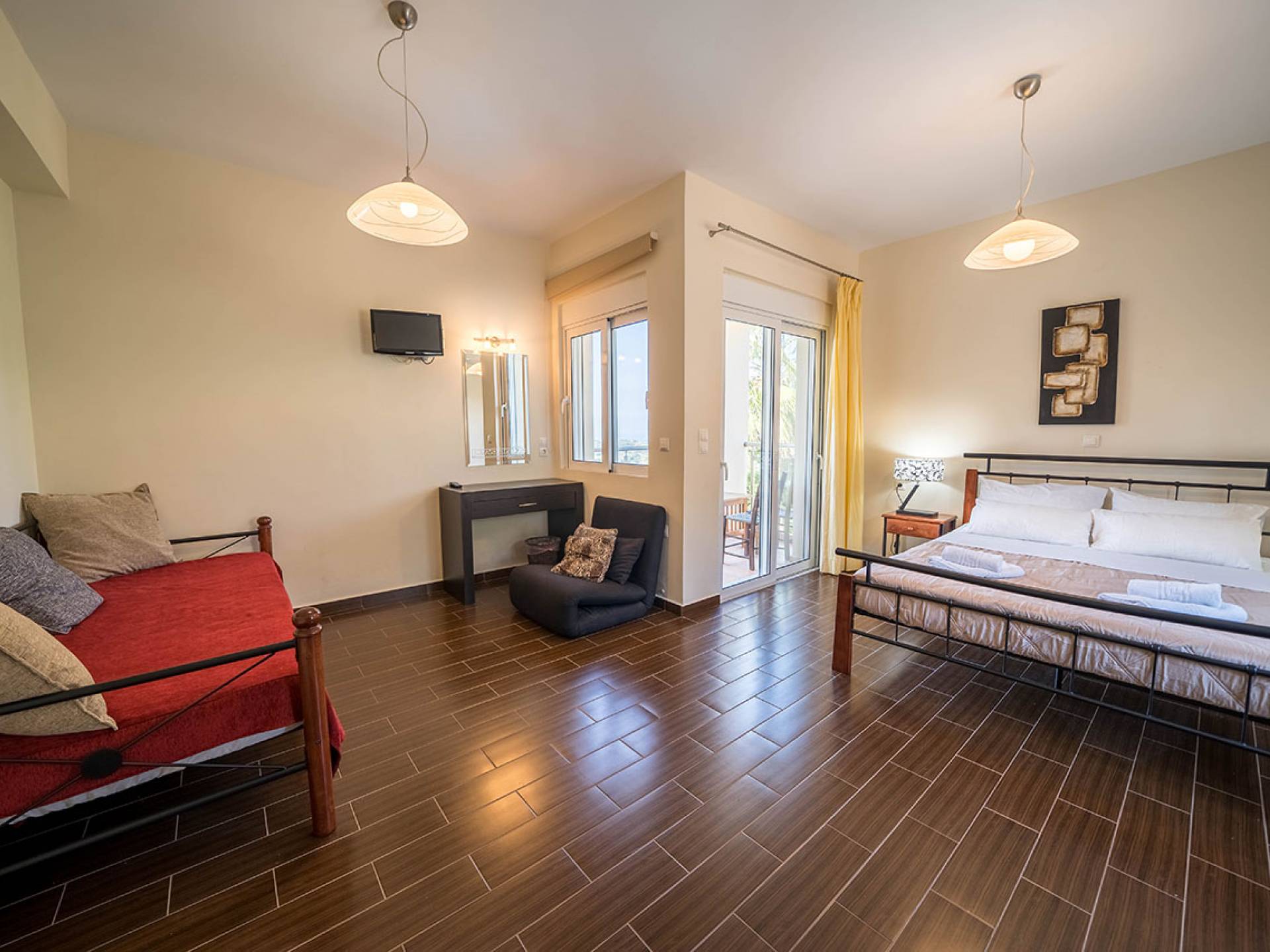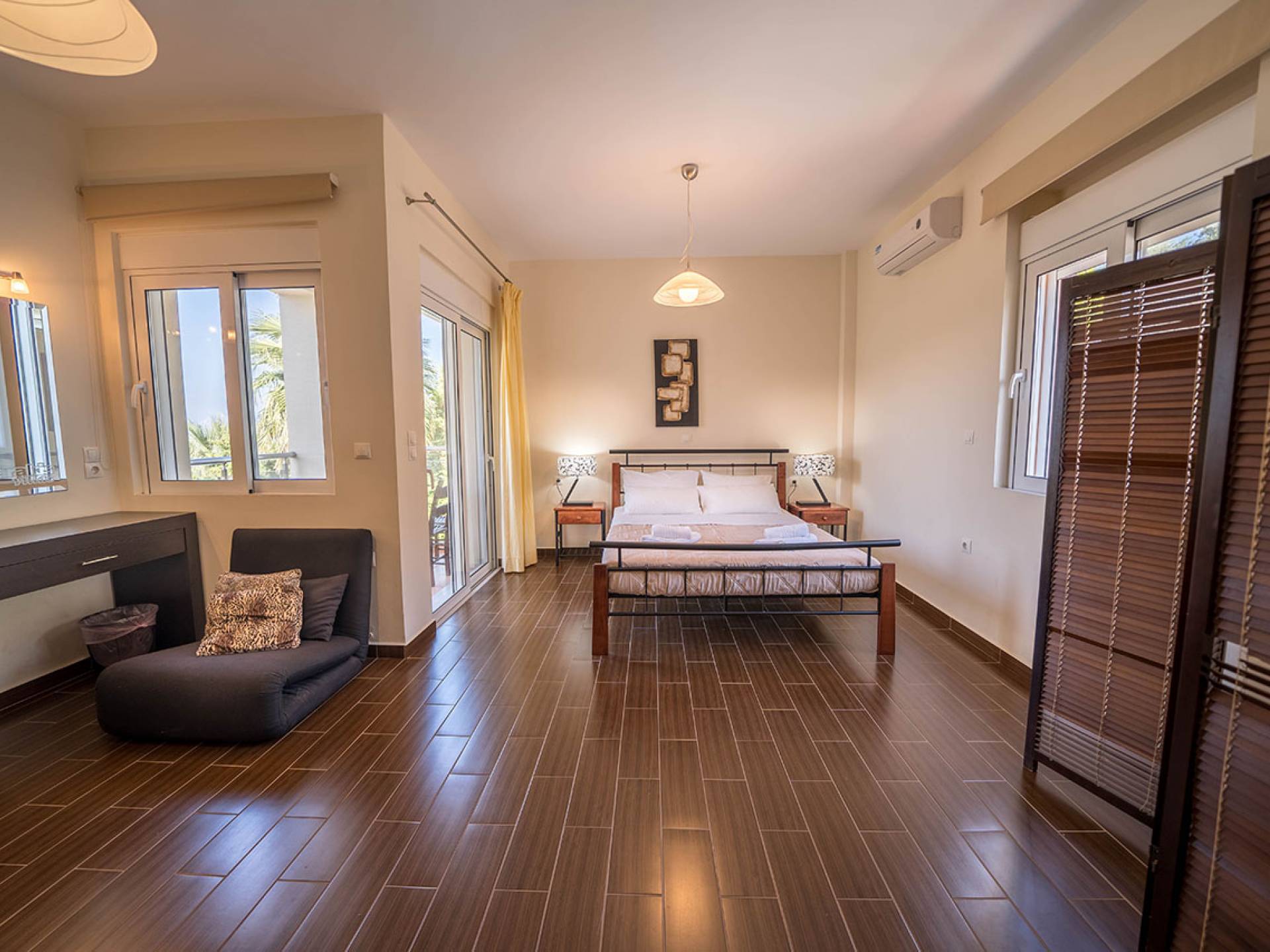 Durch die Nähe zu Chania lassen sich Sehenswürdigkeiten wie der venezianische Hafen, die Altstadtgassen und die lokalen Märkte und Restaurants bequem erkunden. Naturfreunde kommen bei Ausflügen zum Elafonissi-Strand, in die Samaria-Schlucht oder zur Balos-Lagune voll auf ihre Kosten.