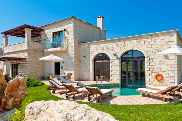 Caldera Villa IV Chania – Diese Luxusvilla bietet die perfekte Mischung aus Komfort und Luxus, ideal für Paare und Familien, die einen erholsamen Aufenthalt suchen. Nur wenige Schritte von den Sandstränden von Platanias und wenige Autominuten von der Stadt Chania entfernt gelegen, genießen Sie das Beste aus Entspannung und Erkundung.
