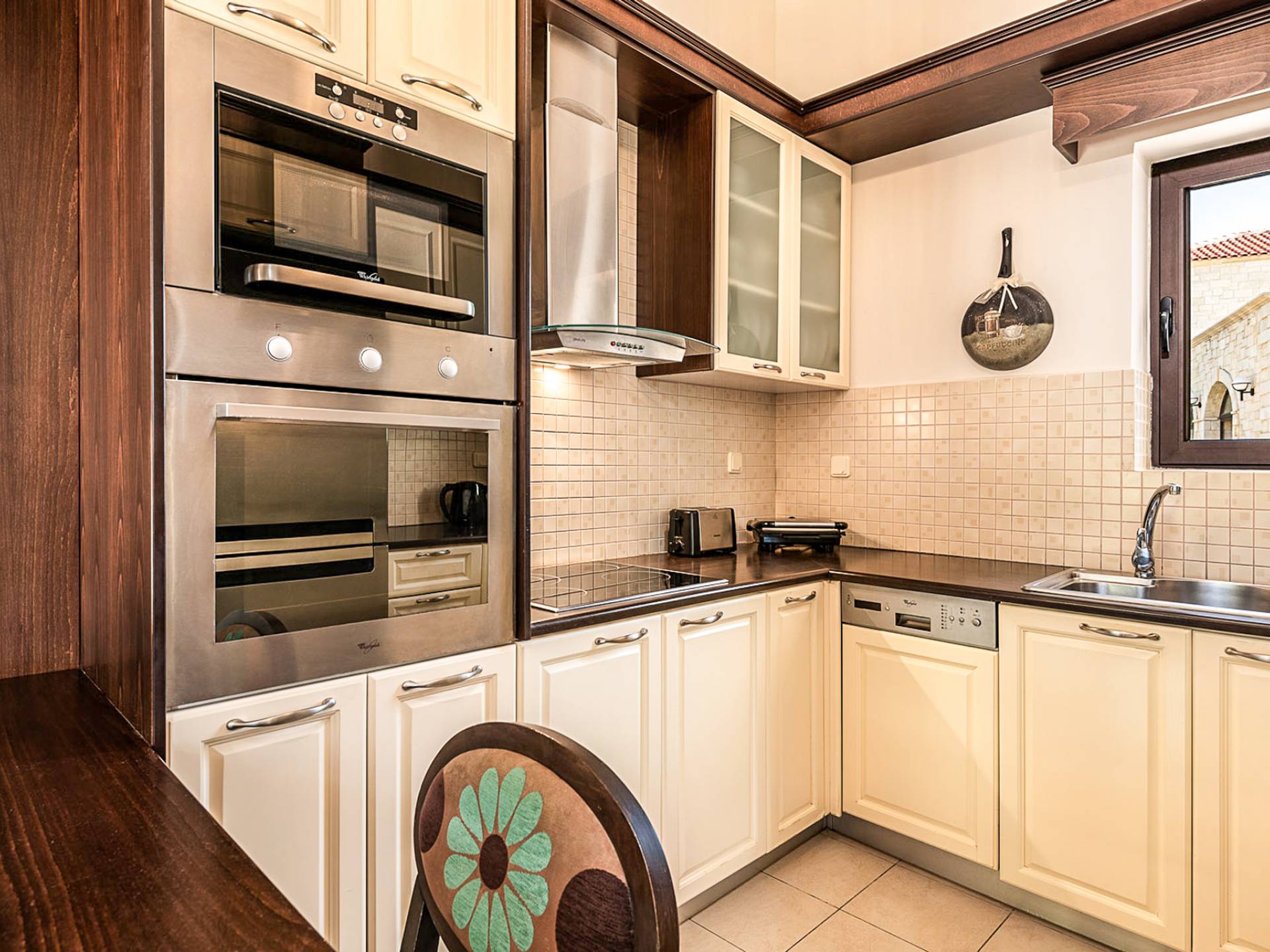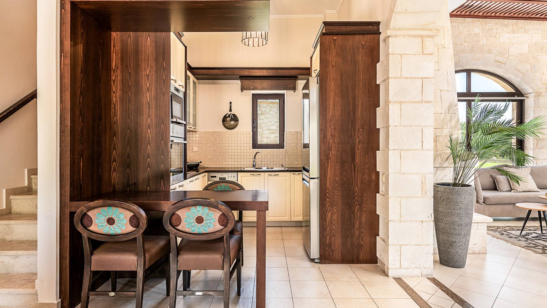 Ein Plasmafernseher, ein DVD-Player, ein Telefon, kostenloser WLAN-Internetzugang und ein Safe sind ebenfalls vorhanden. Eine voll ausgestattete Küche mit allen modernen Geräten, einschließlich Kühl-/Gefrierschrank, Backofen/Herd, Mikrowelle, Geschirrspüler, Boiler, Toaster, Filterkaffeemaschine, Bügeleisen und Bügelbrett. Im Gemeinschaftsraum aller Villen steht Ihnen eine Waschmaschine zur Verfügung. Jede Villa verfügt über einen eigenen Privatparkplatz.