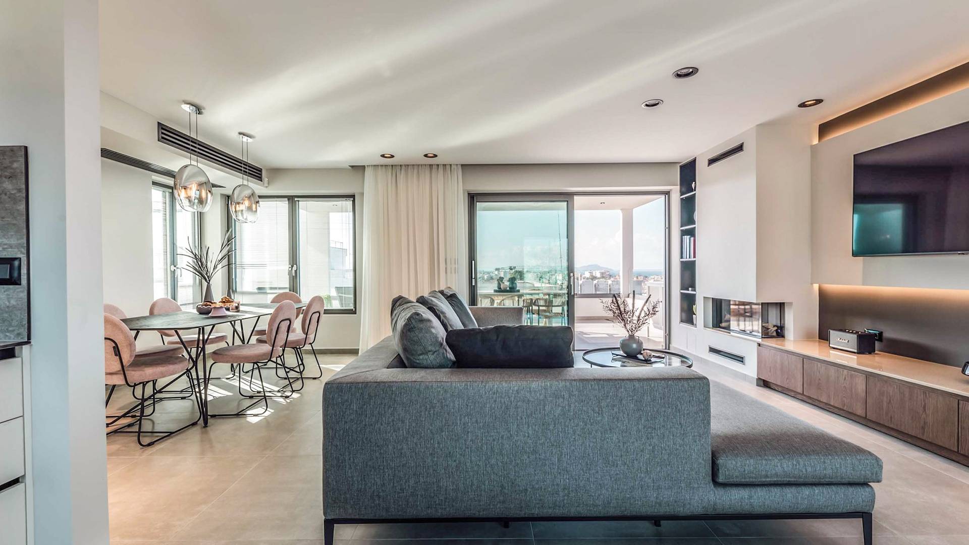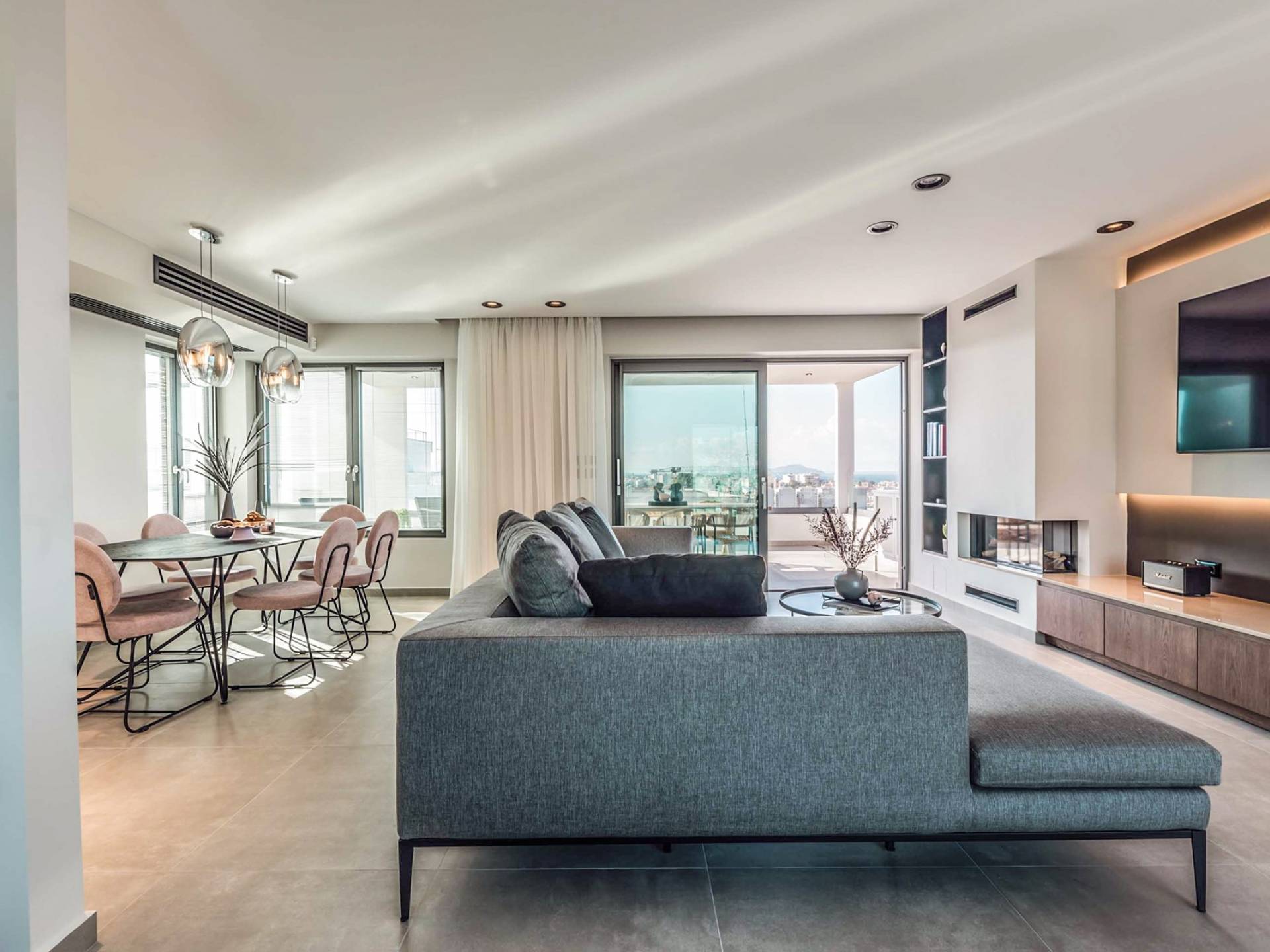 Das Anwesen ist von natürlichem Licht durchflutet und mit minimalistischen Möbeln ausgestattet, die speziell für dieses spezielle Projekt entworfen wurden. Alle Räume hinterlassen einen unauslöschlichen Eindruck im Herzen des Besuchers. Seine verschiedenen Luxuseinrichtungen, seine großzügigen, stilvollen Bereiche, seine einzigartige Lage und seine unvergleichliche natürliche Schönheit machen das City Moment Penthouse zur perfekten Gelegenheit für einen hochwertigen Aufenthalt und zum idealen Zuhause.