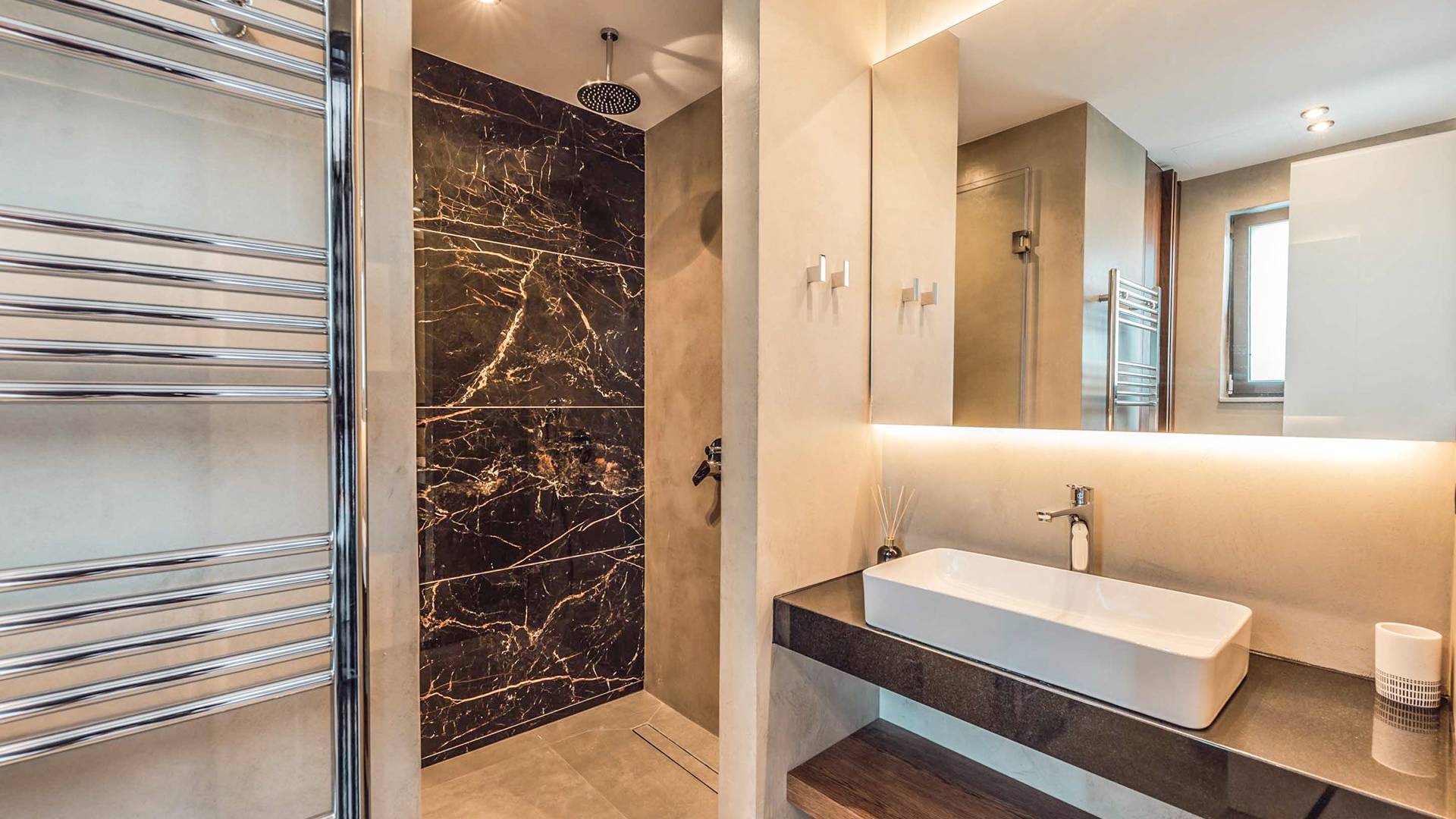 Das atemberaubende Penthouse verfügt über großzügige Innen- und Außenbereiche, die bis zu 6 Gäste großzügig beherbergen können, mit großzügigem Design, erstklassigen Annehmlichkeiten, handgefertigten Möbeln, einem üppigen Wohnzimmer und einem Essbereich im Obergeschoss, die das utopische Refugium vervollständigen. Auf zwei Etagen verteilt, im 5. und 6. Stock eines neuen Gebäudes, haben die Eigentümer jedes Zimmer so gestaltet, dass es sich wie ein immersiver Zufluchtsort anfühlt. Auf der Eingangsebene befindet sich der offene Wohnbereich mit einem Wohnbereich mit Sat-TV, einem modernen Kamin für gemütliche Abende, einem Essbereich und einer voll ausgestatteten, modernen Einbauküche.