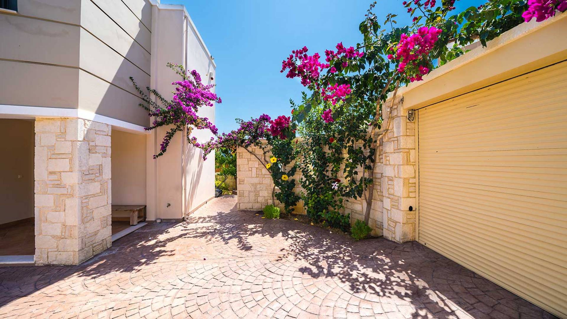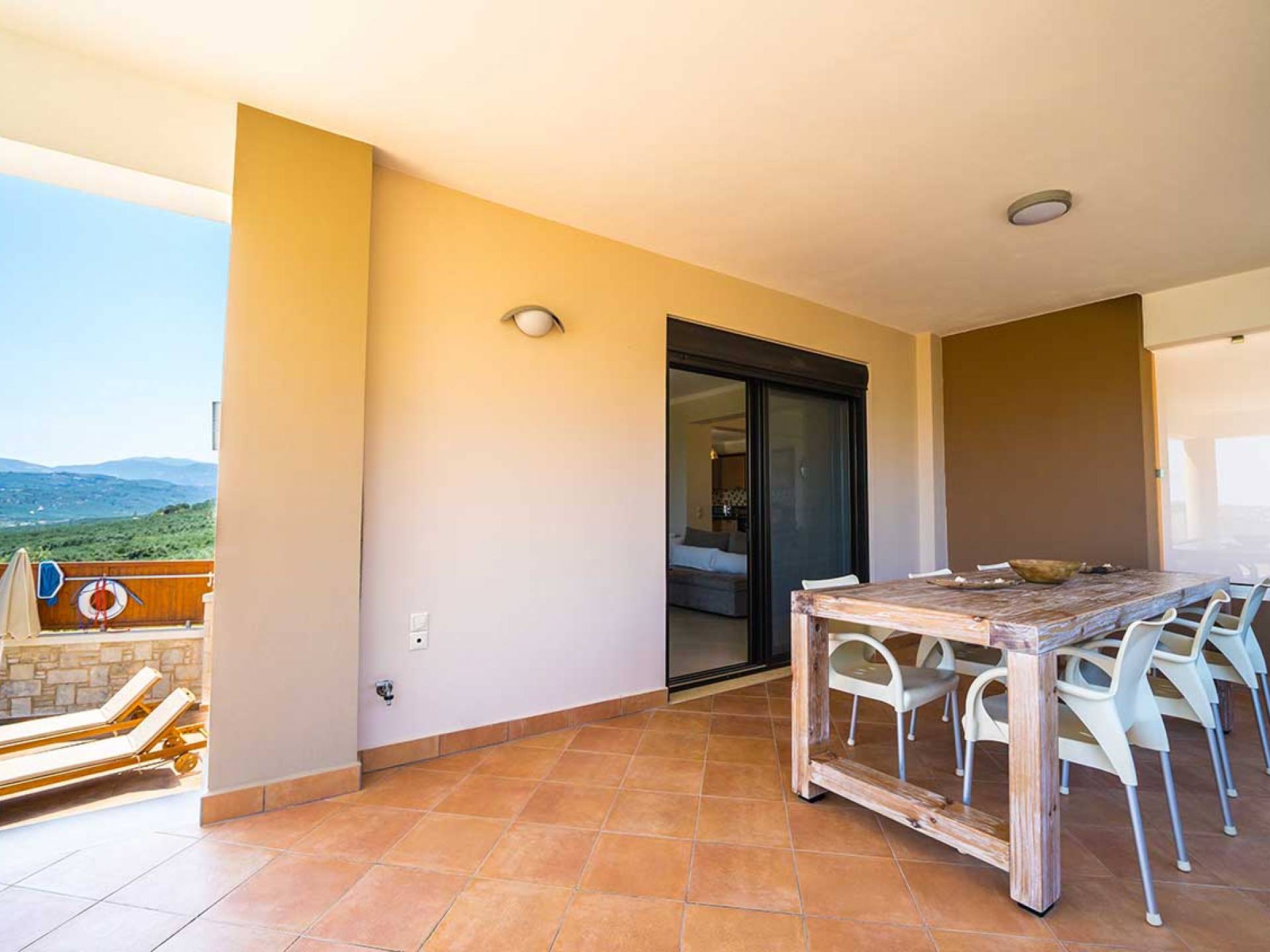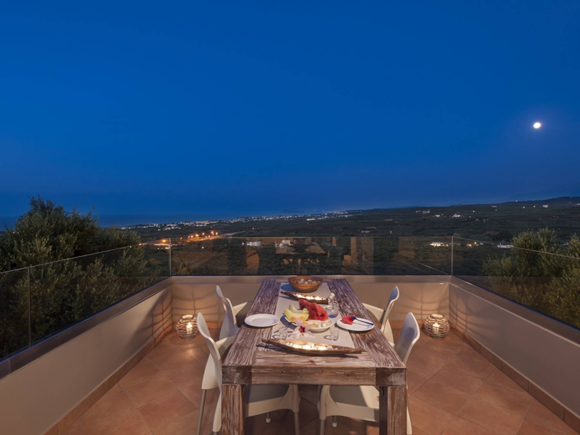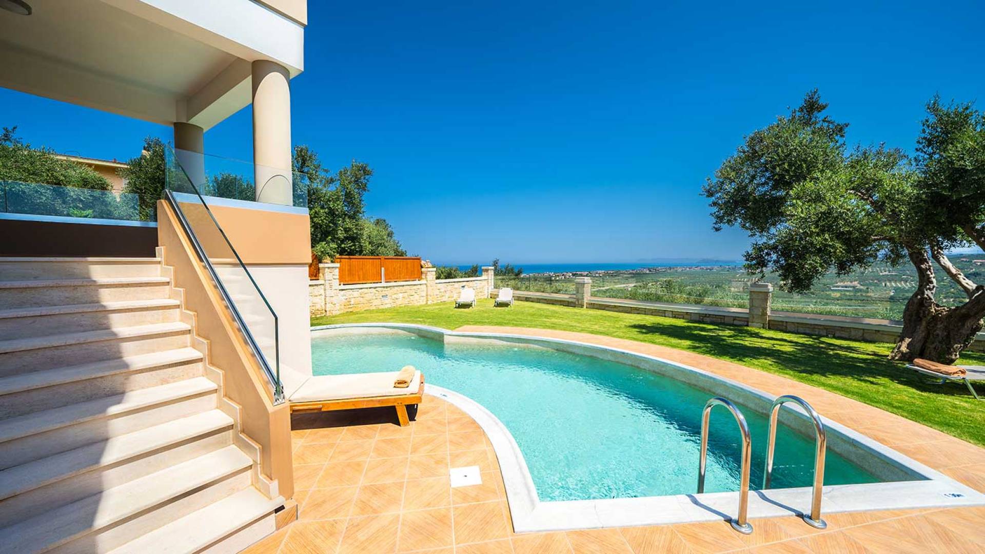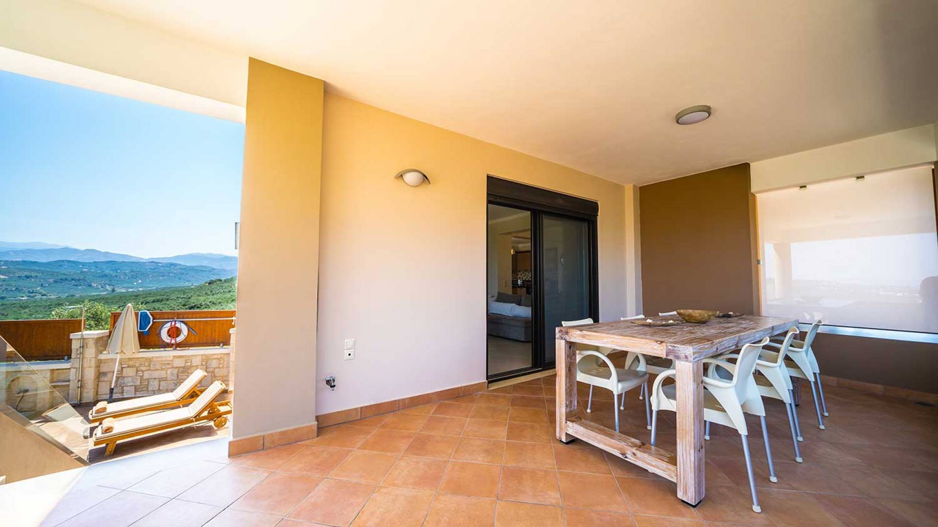 Es gibt einen großen privaten Swimmingpool mit optionaler Heizung, einen großen privaten Garten mit Grillplatz und einen Parkplatz. Der gesamte Poolbereich ist mit Sonnenliegen, Stühlen und Tischen zum Essen und Sonnenschirmen ausgestattet. Am Abend können Sie entweder den herrlichen romantischen Sonnenuntergang genießen, der mit den schönsten Farben den klaren blauen Mittelmeerhimmel malt oder Sie fahren in ca. 3-4 Minuten Entfernung zu den nächsten Restaurants und probieren die kretische Küche. Entspannen Sie sich und genießen Sie die private und exklusive Atmosphäre eines Deluxe-Hauses mit 5-Sterne-Ausstattung.