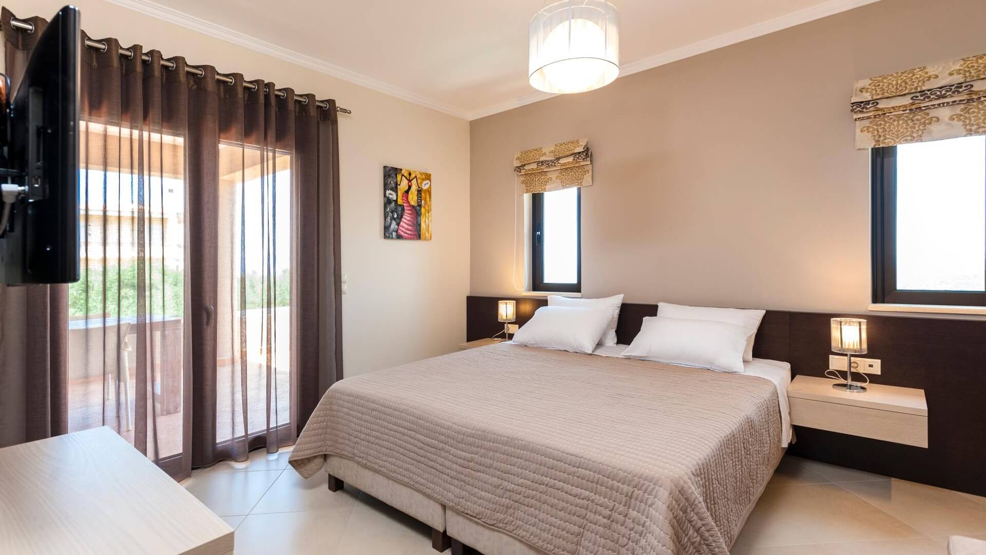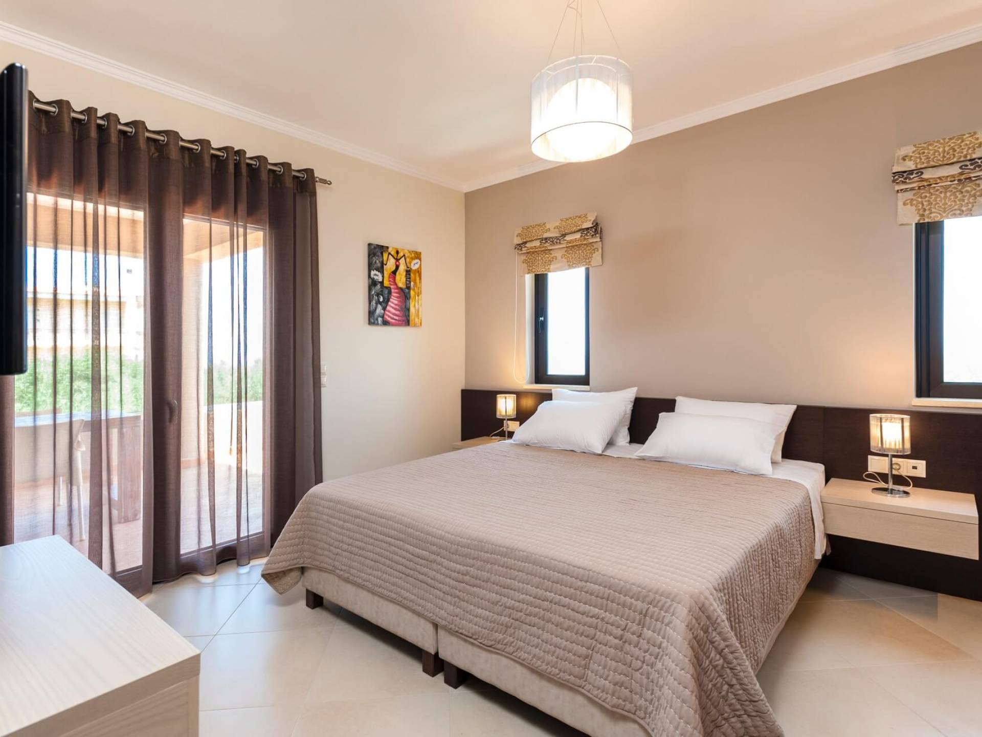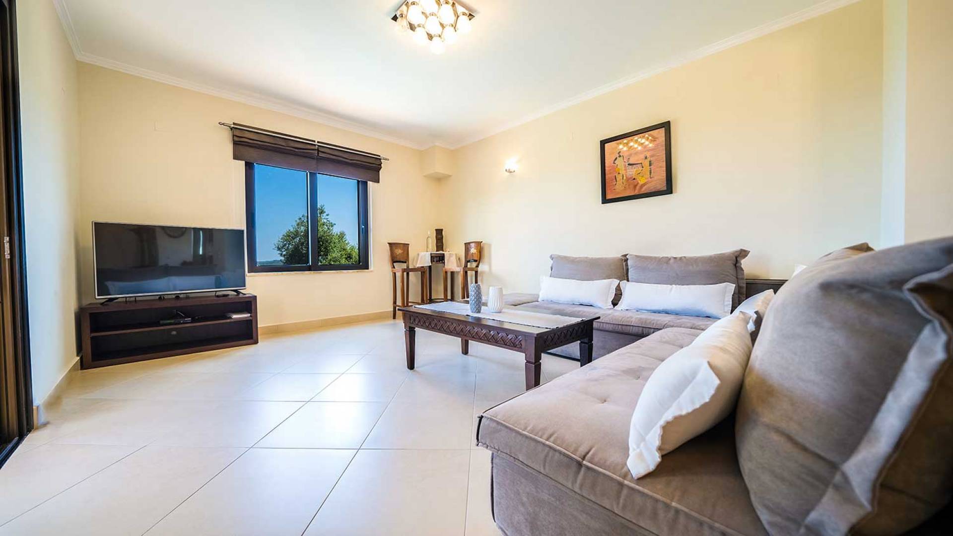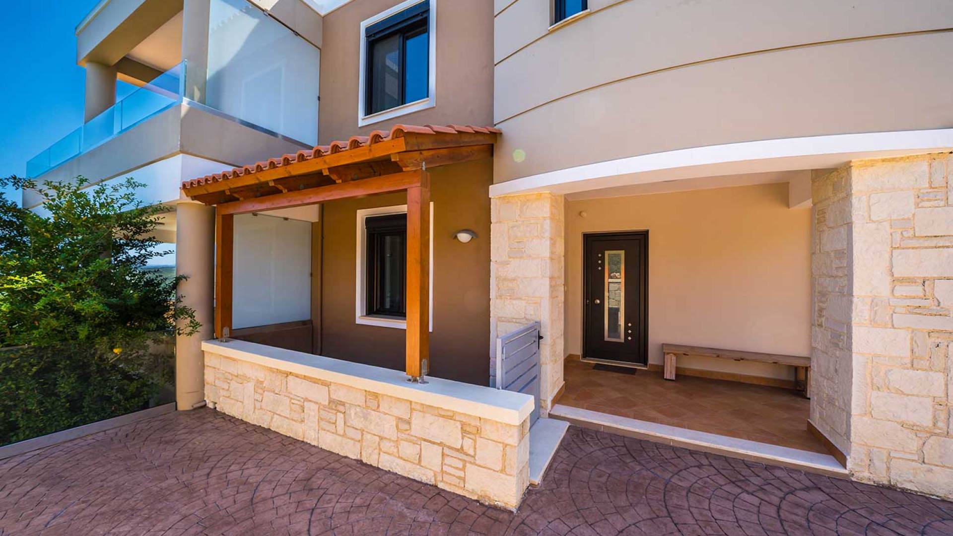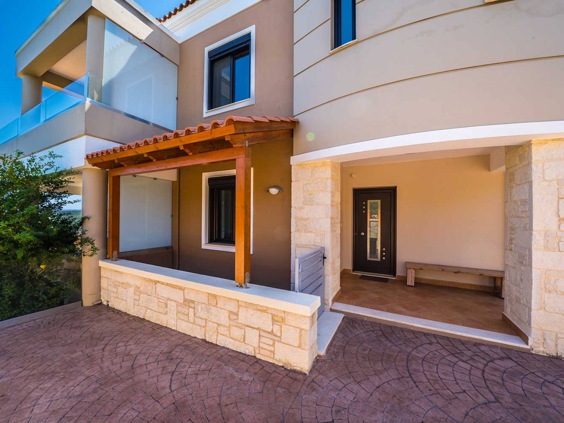 Es gibt einen großen privaten Swimmingpool mit optionaler Heizung, einen großen privaten Garten mit Grillplatz und einen Parkplatz. Der gesamte Poolbereich ist mit Sonnenliegen, Stühlen und Tischen zum Essen und Sonnenschirmen ausgestattet. Am Abend können Sie entweder den herrlichen romantischen Sonnenuntergang genießen, der mit den schönsten Farben den klaren blauen Mittelmeerhimmel malt oder Sie fahren in ca. 3-4 Minuten Entfernung zu den nächsten Restaurants und probieren die kretische Küche. Entspannen Sie sich und genießen Sie die private und exklusive Atmosphäre eines Deluxe-Hauses mit 5-Sterne-Ausstattung.