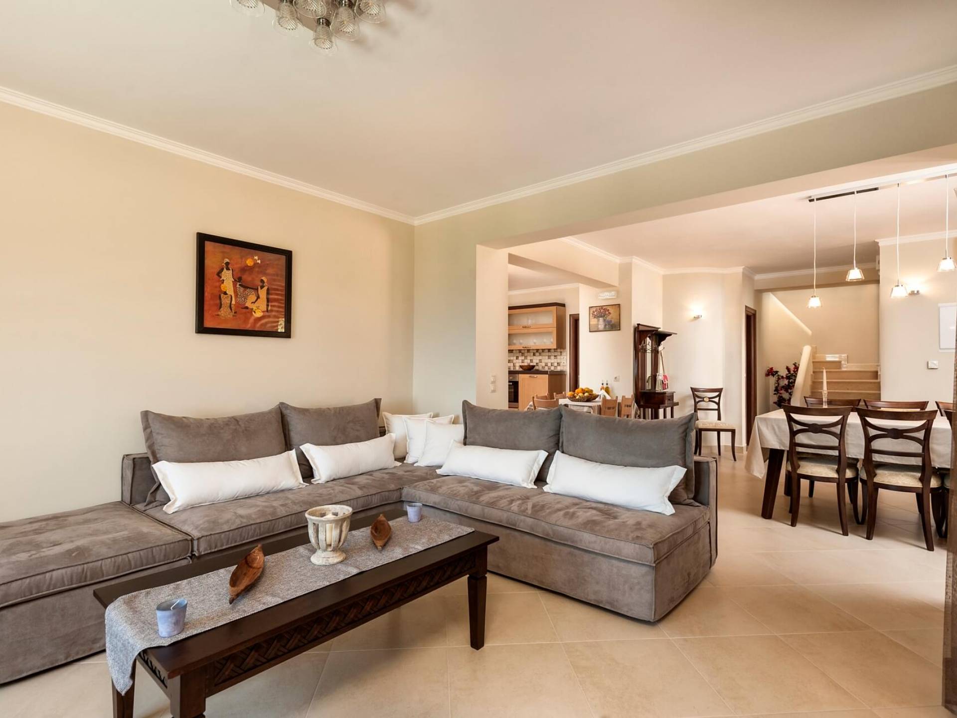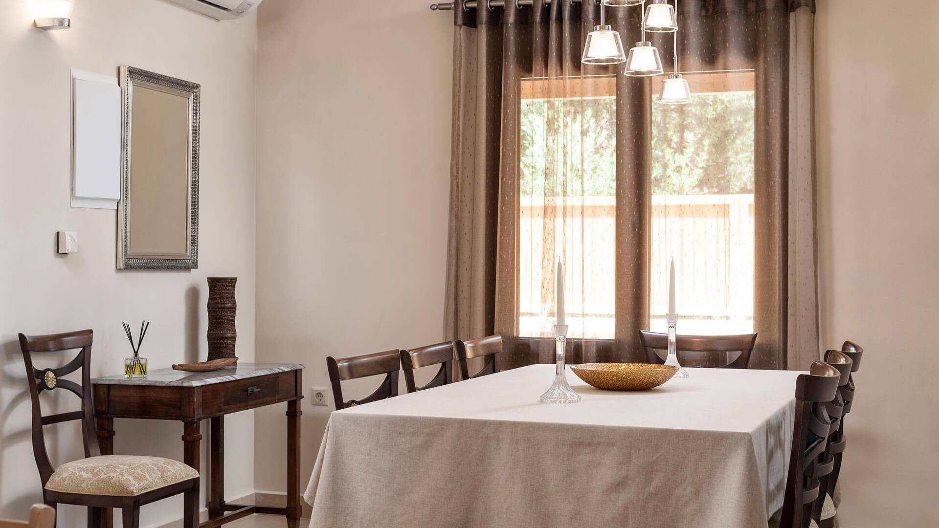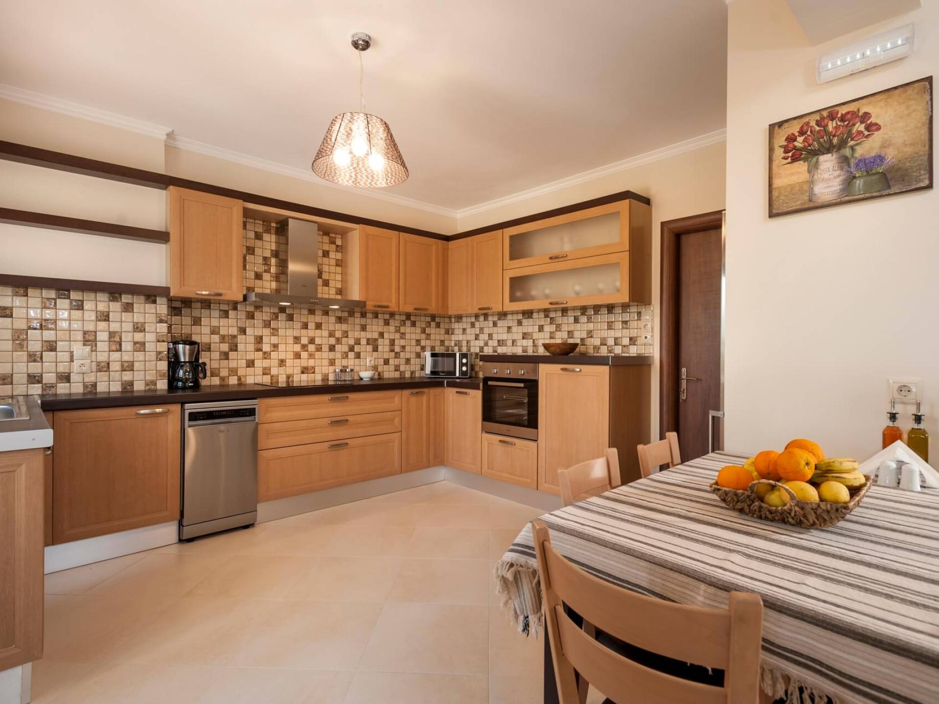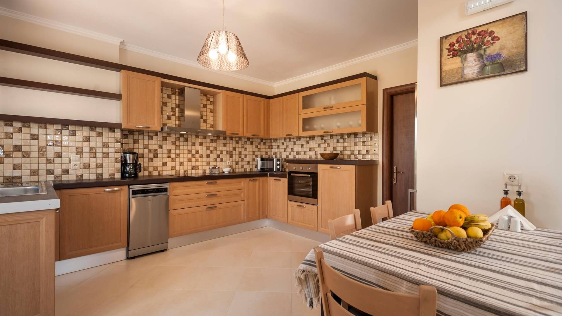 Die Dimitrios Villa Chania besteht aus 3 Schlafzimmern, 2 Bädern, einem großen Wohnzimmer, einem Essbereich und einer voll ausgestatteten Küche. Es gibt auch einen Dachboden mit einem weiteren Bett im 3. Schlafzimmer. Dimitrios Villa Chania verfügt über 2 Schlafzimmer mit Doppelbetten und 1 Schlafzimmer mit zwei Einzelbetten. Sie können auch von allen Fenstern der Villa eine herrliche Aussicht genießen.
