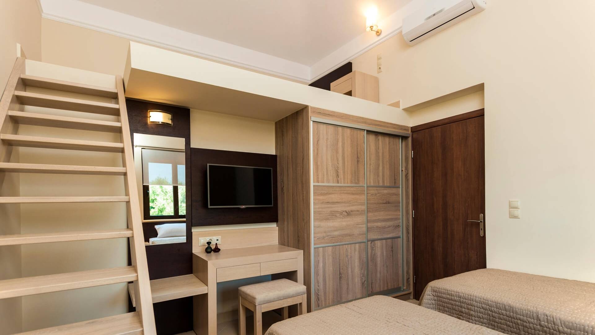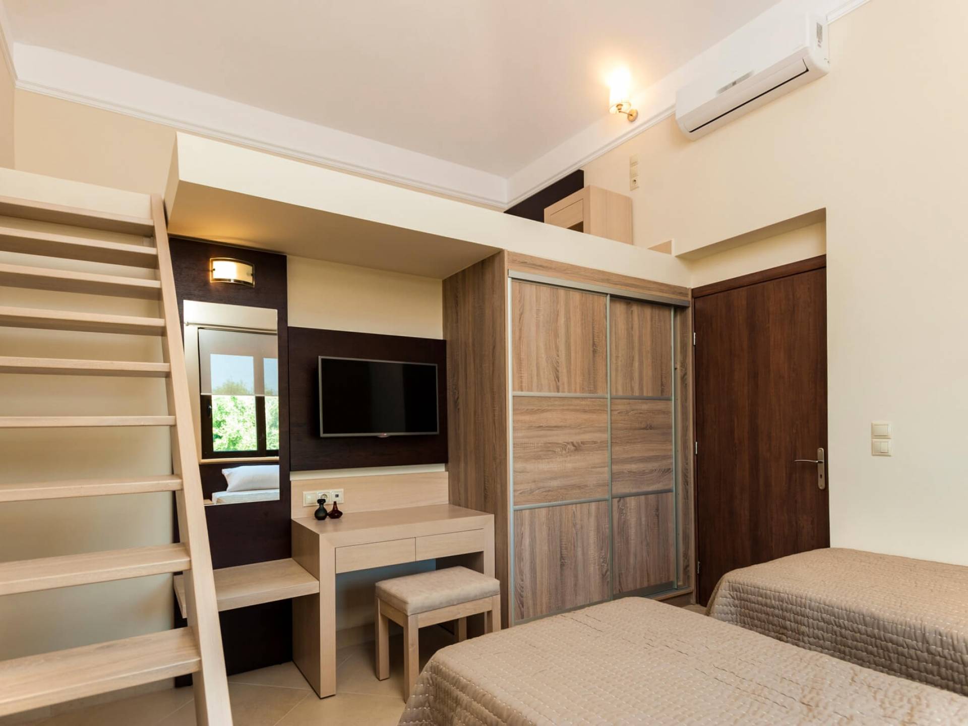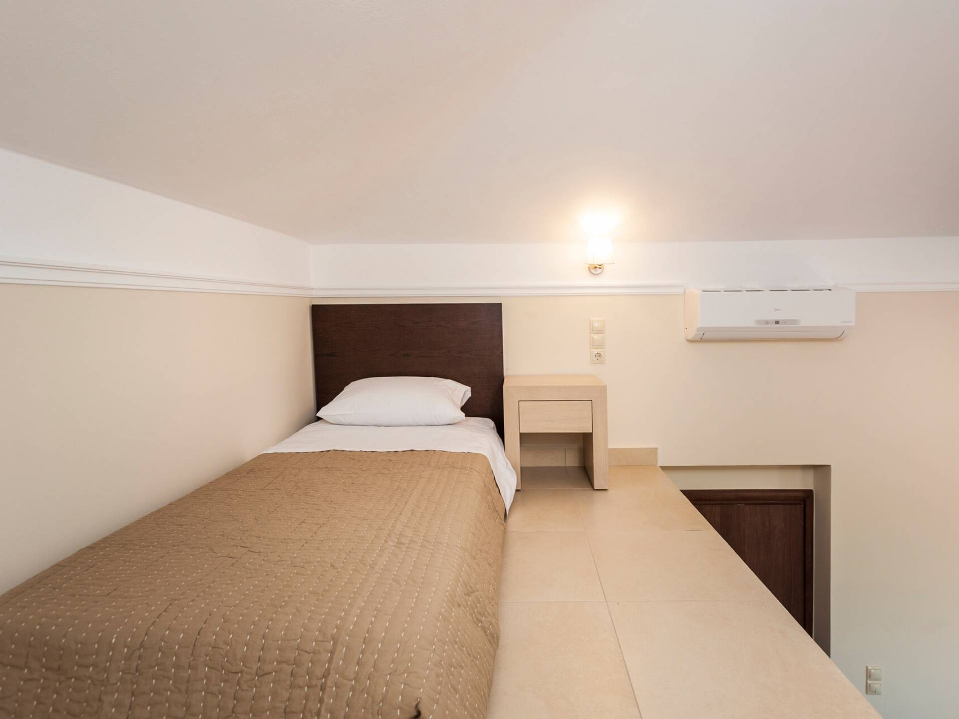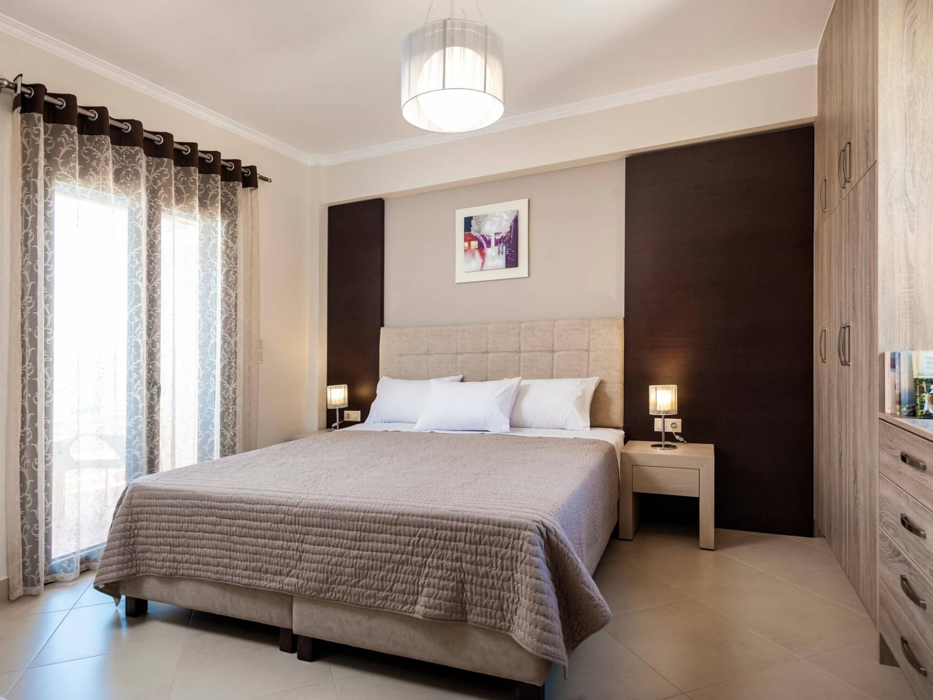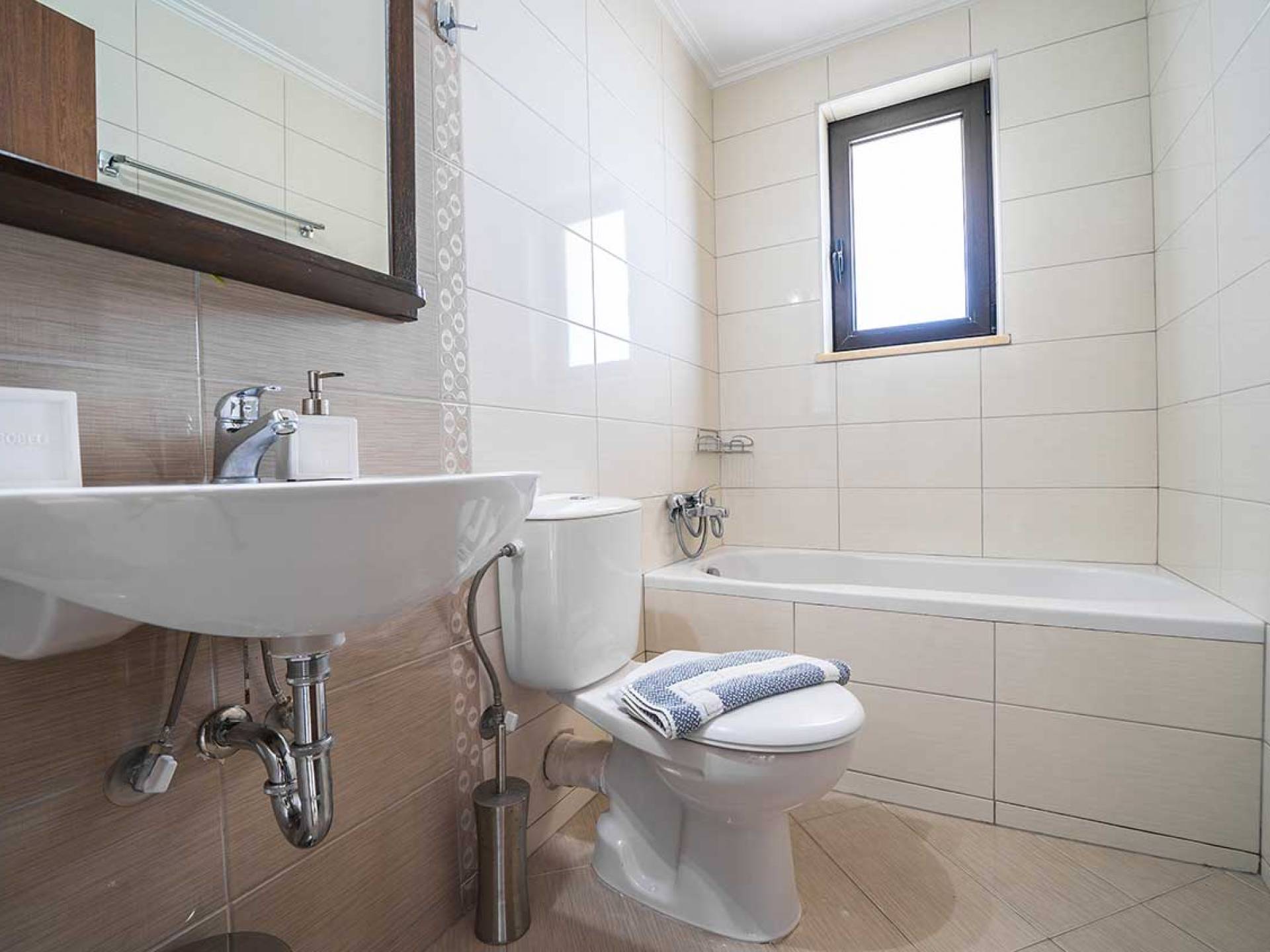 Die Dimitrios Villa Chania besteht aus 3 Schlafzimmern, 2 Bädern, einem großen Wohnzimmer, einem Essbereich und einer voll ausgestatteten Küche. Es gibt auch einen Dachboden mit einem weiteren Bett im 3. Schlafzimmer. Dimitrios Villa Chania verfügt über 2 Schlafzimmer mit Doppelbetten und 1 Schlafzimmer mit zwei Einzelbetten. Sie können auch von allen Fenstern der Villa eine herrliche Aussicht genießen.
