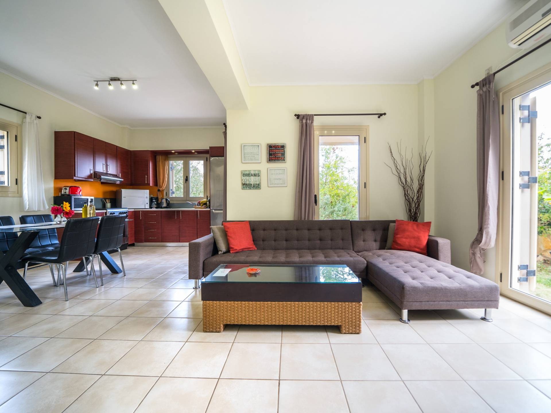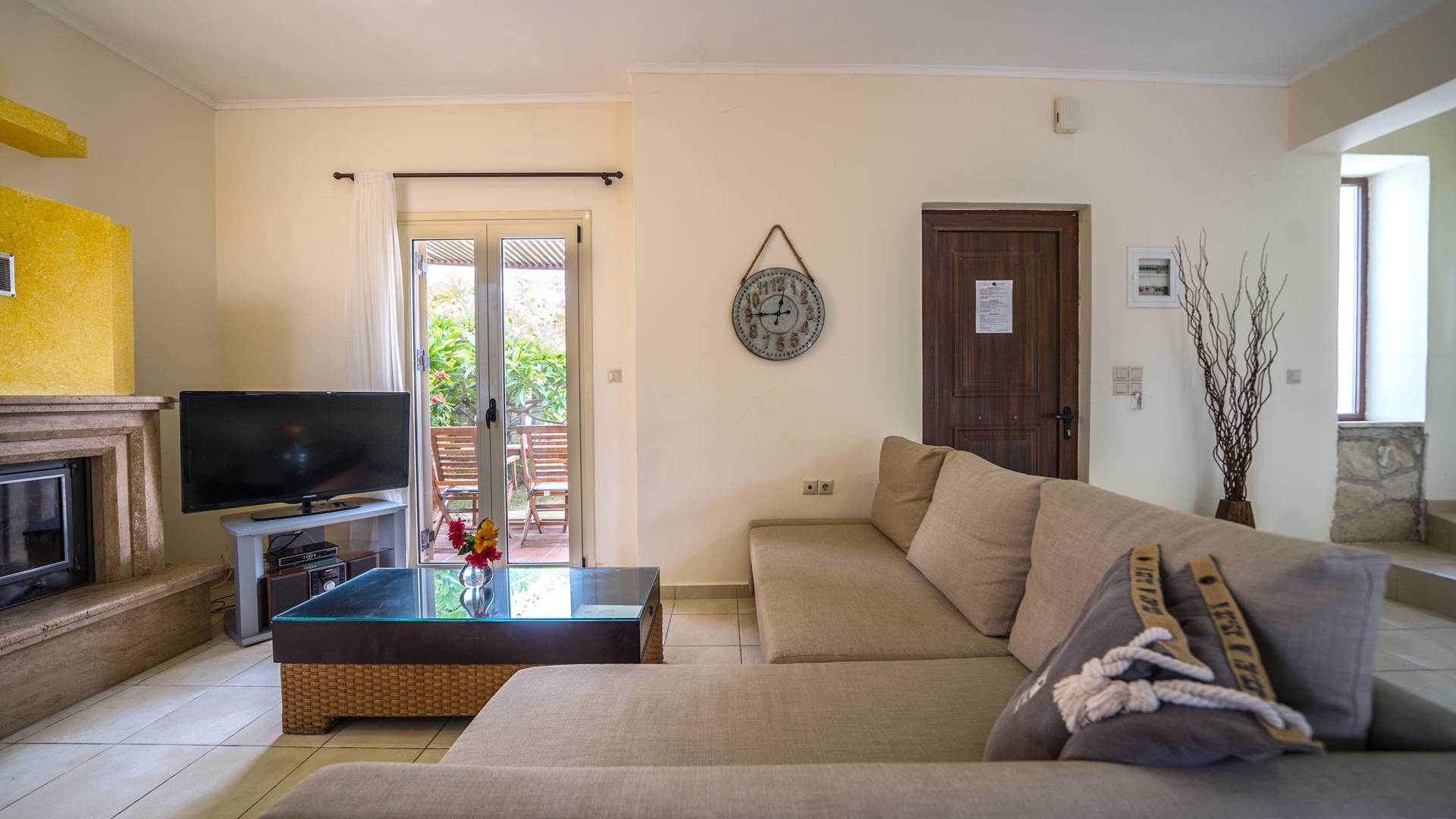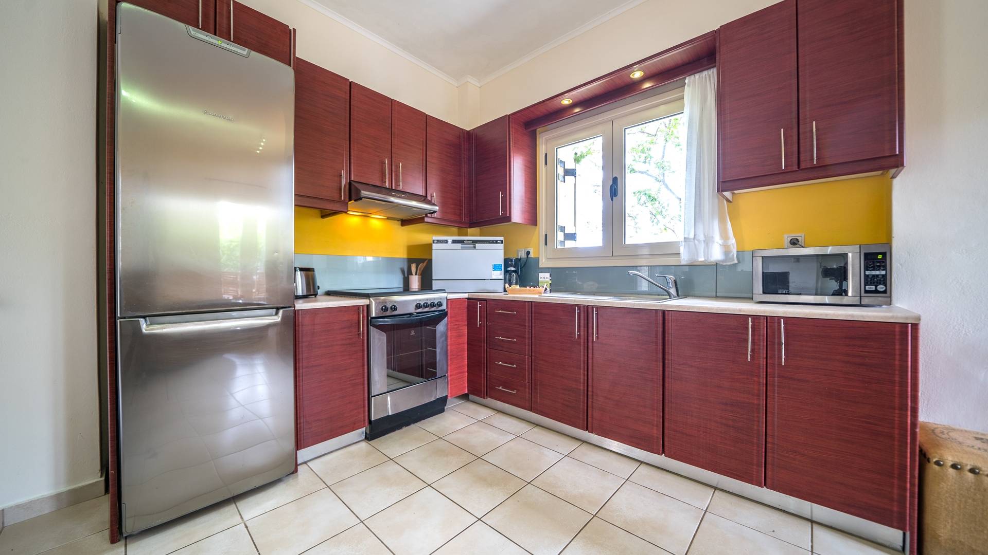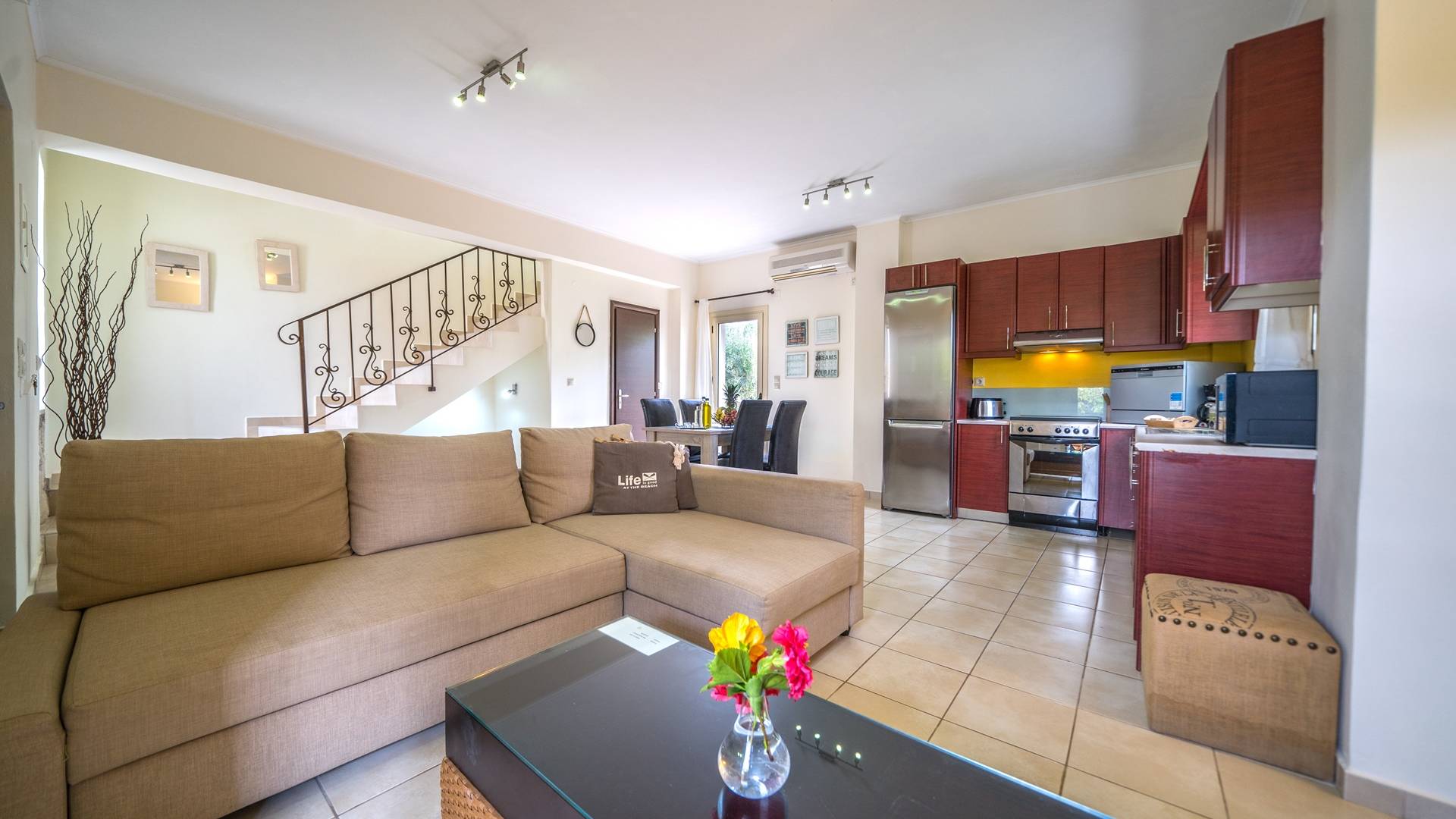 Jede Villa verfügt über ein offenes Erdgeschoss mit einer voll ausgestatteten Küche, einem geräumigen Wohnzimmer mit einem Sofa-Bett für einen zusätzlichen Gast. Ein Flachbildfernseher, ein Speicherschrank und ein Waschmaschin sind ebenfalls bereitgestellt. Im Obergeschoss finden die Gäste ein Hauptschlafzimmer mit Queensize-Bett, Klimaanlage, Fernseher und einem Balkon mit wunderschönen Aussichten. Das zweite Schlafzimmer umfasst zwei Einzelbetten und Klimaanlage, und es gibt ein gemeinsames Badezimmer mit moderner Dusche.