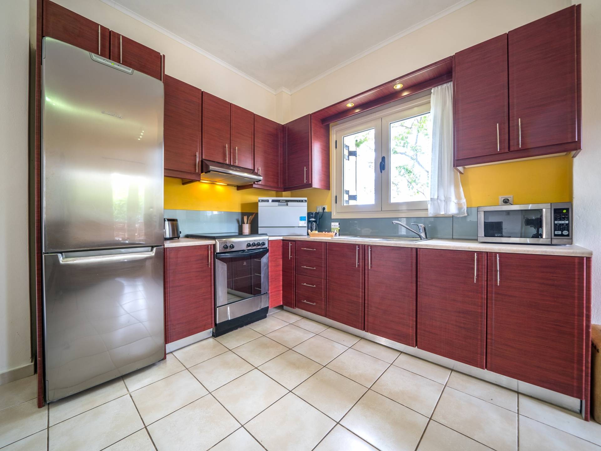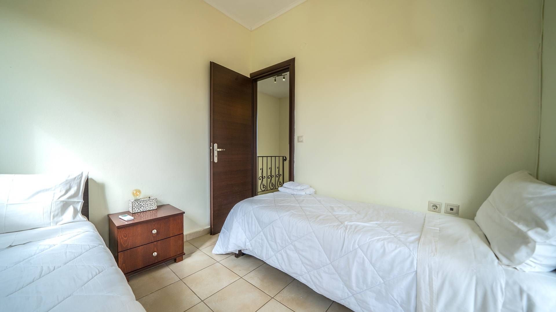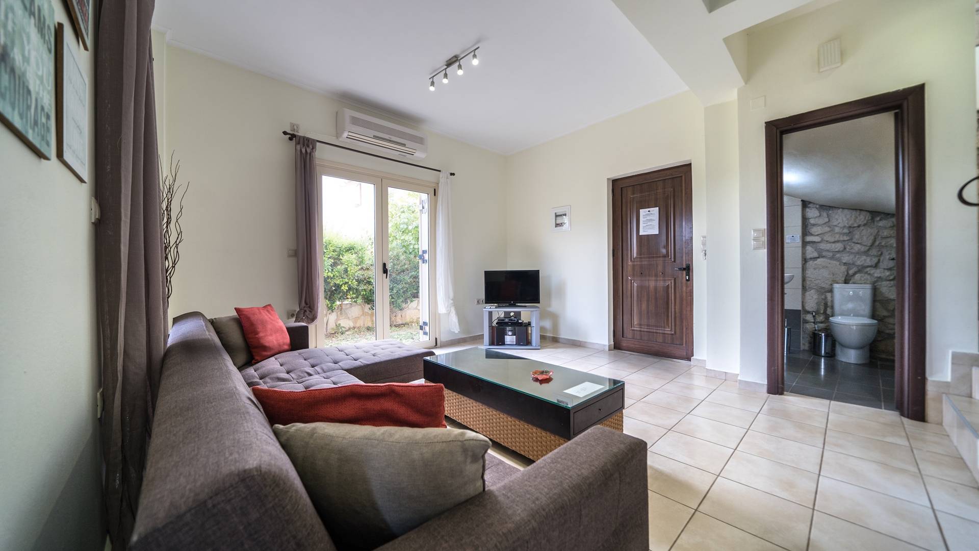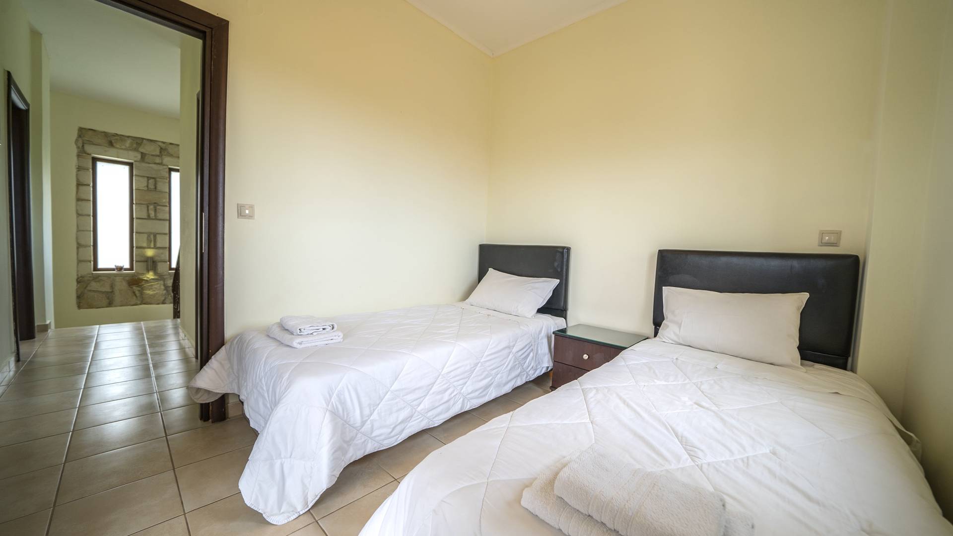 Jede Villa verfügt über ein offenes Erdgeschoss mit einer voll ausgestatteten Küche, einem geräumigen Wohnzimmer mit einem Sofa-Bett für einen zusätzlichen Gast. Ein Flachbildfernseher, ein Speicherschrank und ein Waschmaschin sind ebenfalls bereitgestellt. Im Obergeschoss finden die Gäste ein Hauptschlafzimmer mit Queensize-Bett, Klimaanlage, Fernseher und einem Balkon mit wunderschönen Aussichten. Das zweite Schlafzimmer umfasst zwei Einzelbetten und Klimaanlage, und es gibt ein gemeinsames Badezimmer mit moderner Dusche.