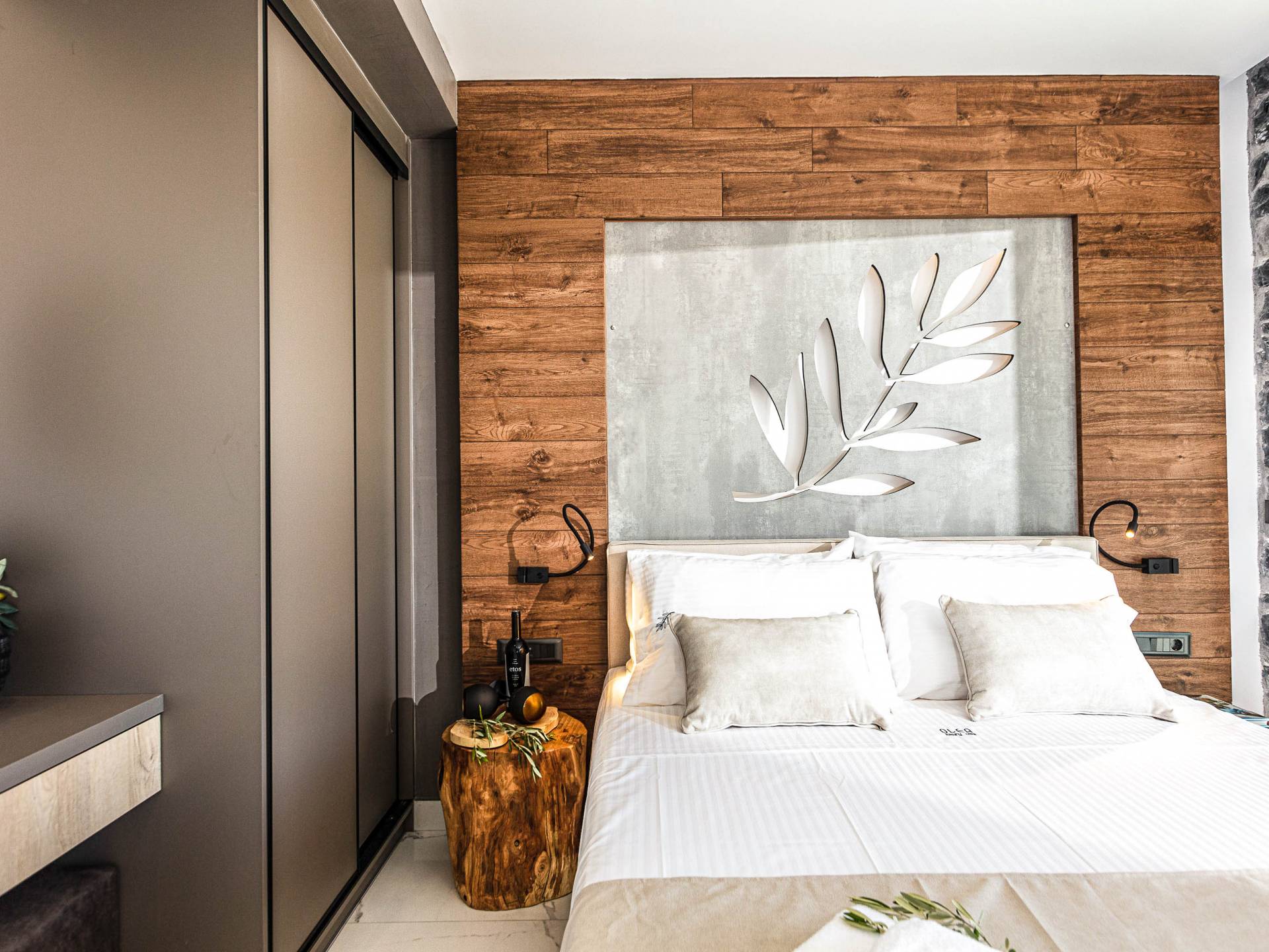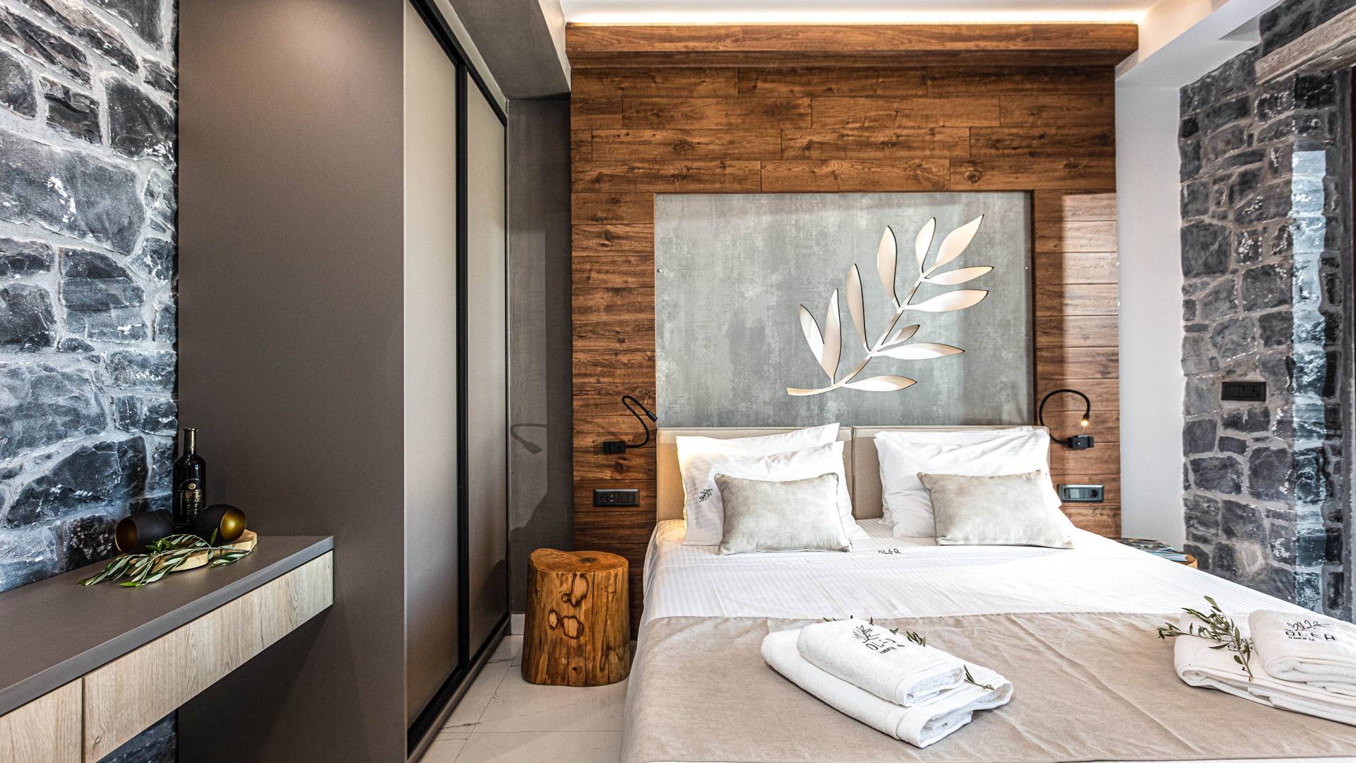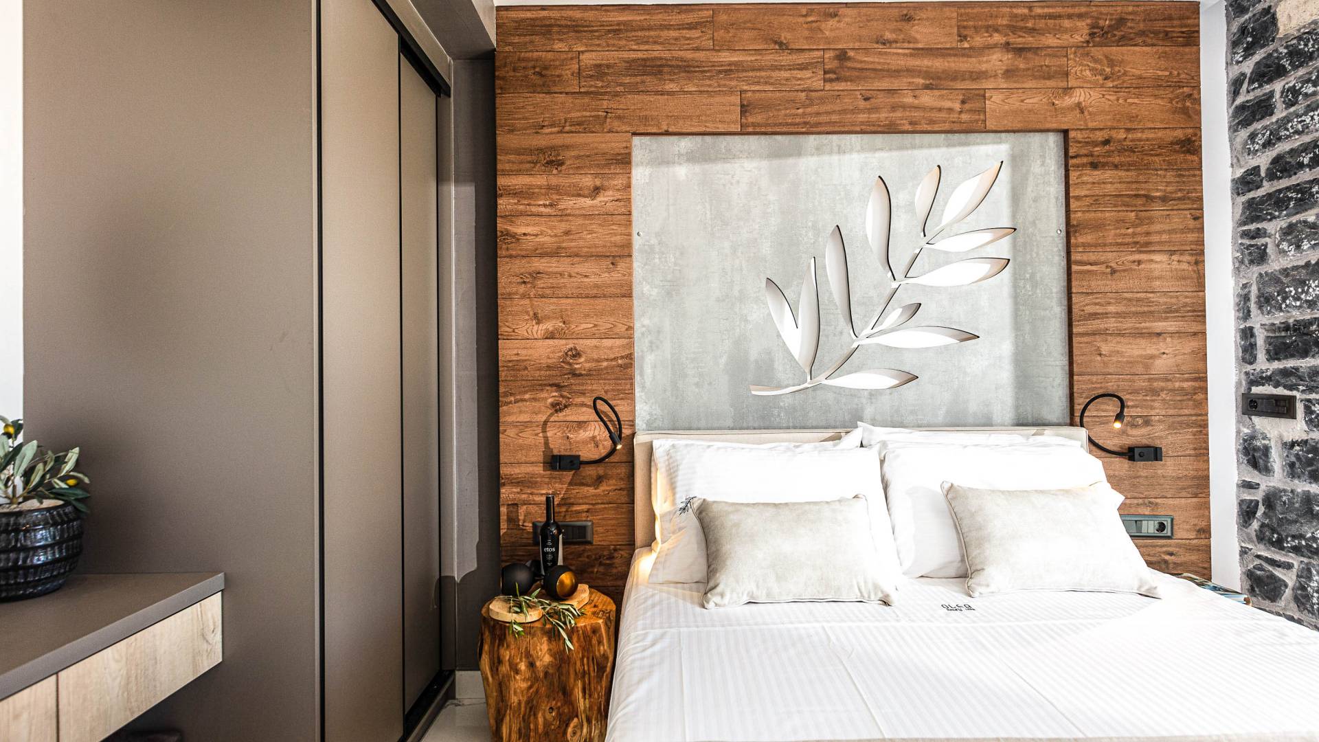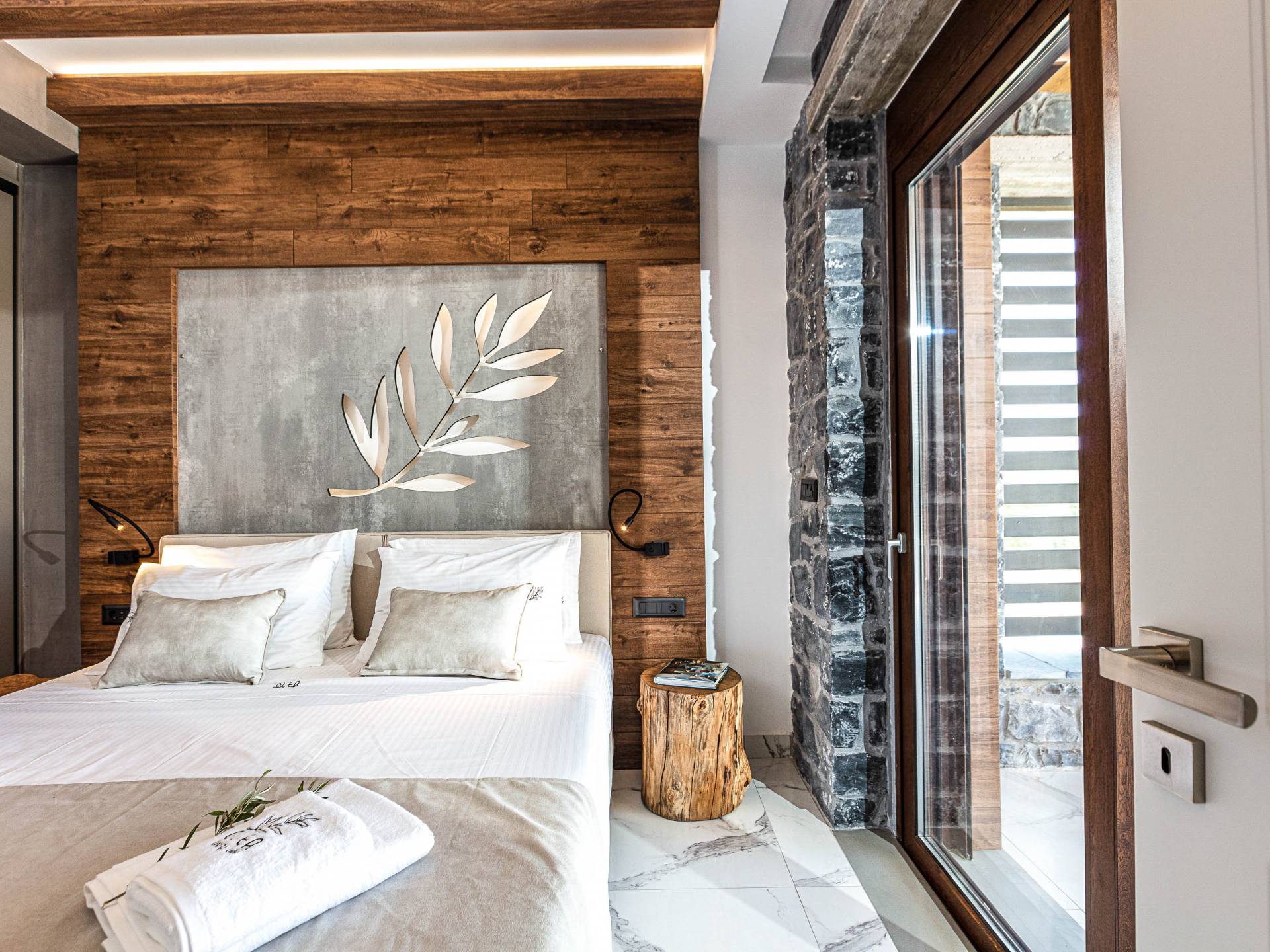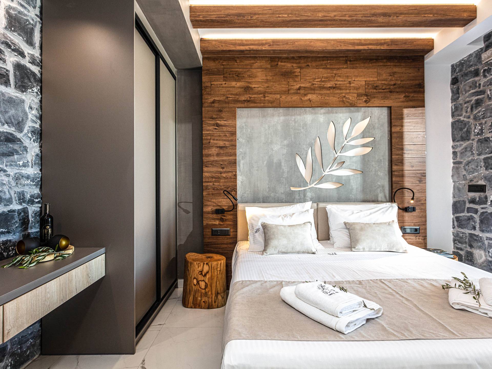 Die erste Etage beherbergt die restlichen drei wunderschön eingerichteten Schlafzimmer, jedes klimatisiert und in warmen Erdtönen mit geschmackvollen Olivenzweig-Kunstwerken dekoriert, die das kretische Erbe der Villa symbolisieren. Zwei Schlafzimmer verfügen über Kingsize-Betten (1,60 m x 2,00 m) und private Balkone mit herrlichem Meerblick, während das dritte Schlafzimmer über zwei Einzelbetten (0,90 m x 2,00 m) verfügt, die bei Bedarf in ein Kingsize-Bett umgewandelt werden können ein eigener Balkon mit Meerblick. Jedes Schlafzimmer verfügt über ein eigenes Bad und bietet so Privatsphäre und Komfort für größere Gruppen. Auf dieser Etage befindet sich auch ein Waschraum mit einer Waschtrockner-Kombination.