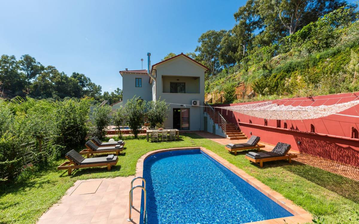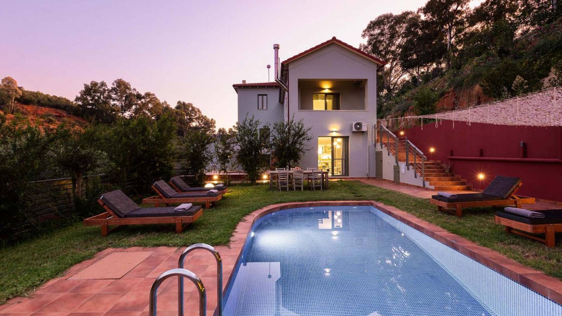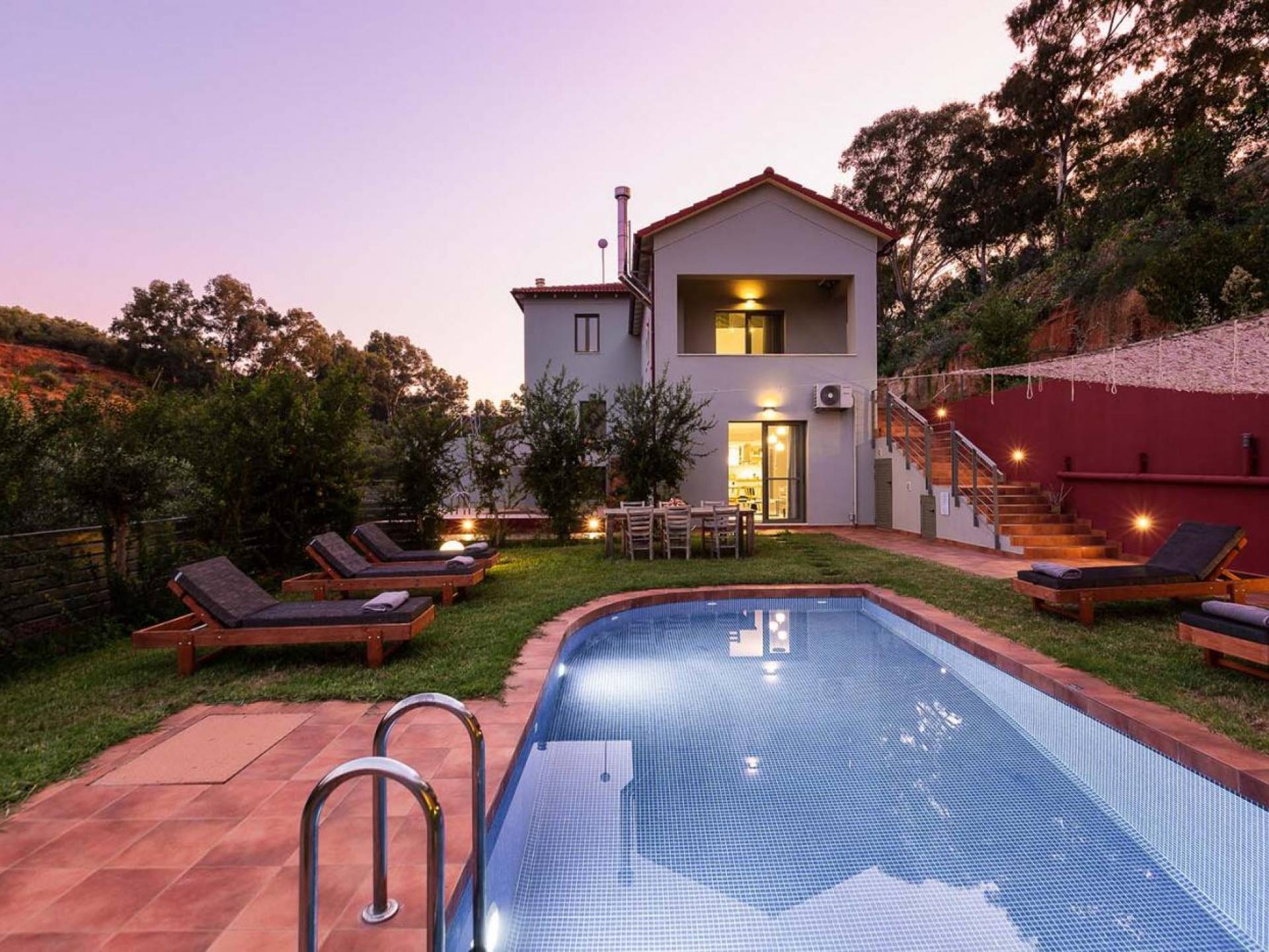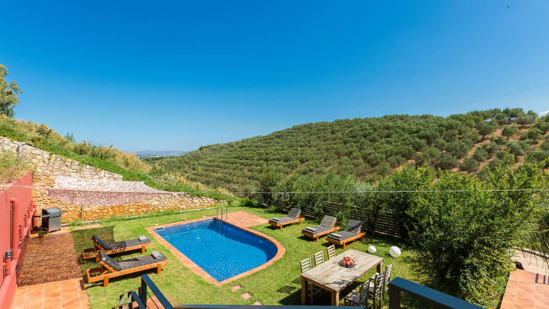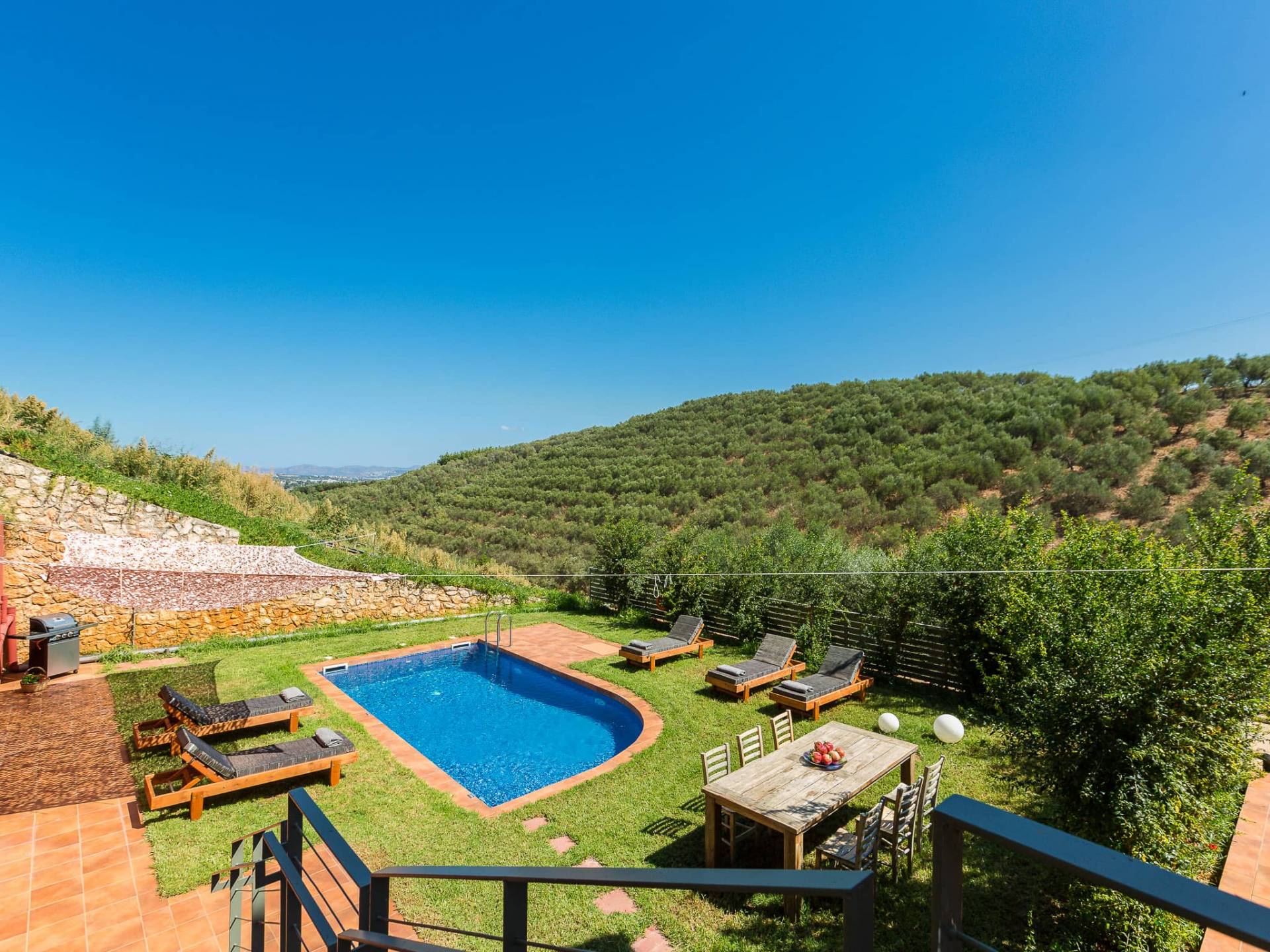 Die faszinierende und vielfältige Natur des Anwesens umfasst 2 Doppelzimmer im Haupthaus sowie 3 Badezimmer, einen privaten Pool, Lounge-Decks, eine voll ausgestattete Küche und einen Grill im Freien. Alles, was Sie brauchen, um Ihrer Fantasie freien Lauf zu lassen, um einen idealen Urlaub zu gestalten. Typisch für die Gegend sind die wunderschönen Terrassengärten, die das Herrenhaus üppig umschließen. Entspannen Sie sich und genießen Sie diese erstklassige Luxusunterkunft!