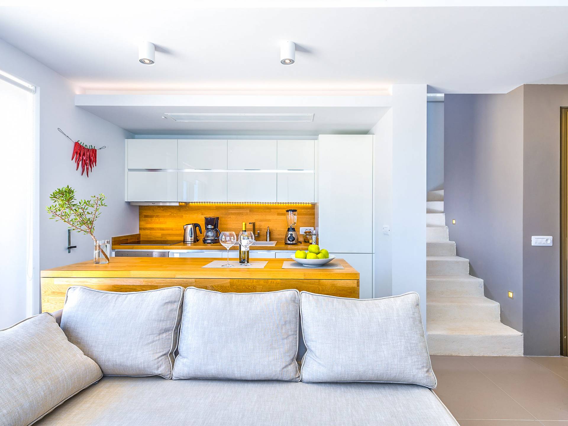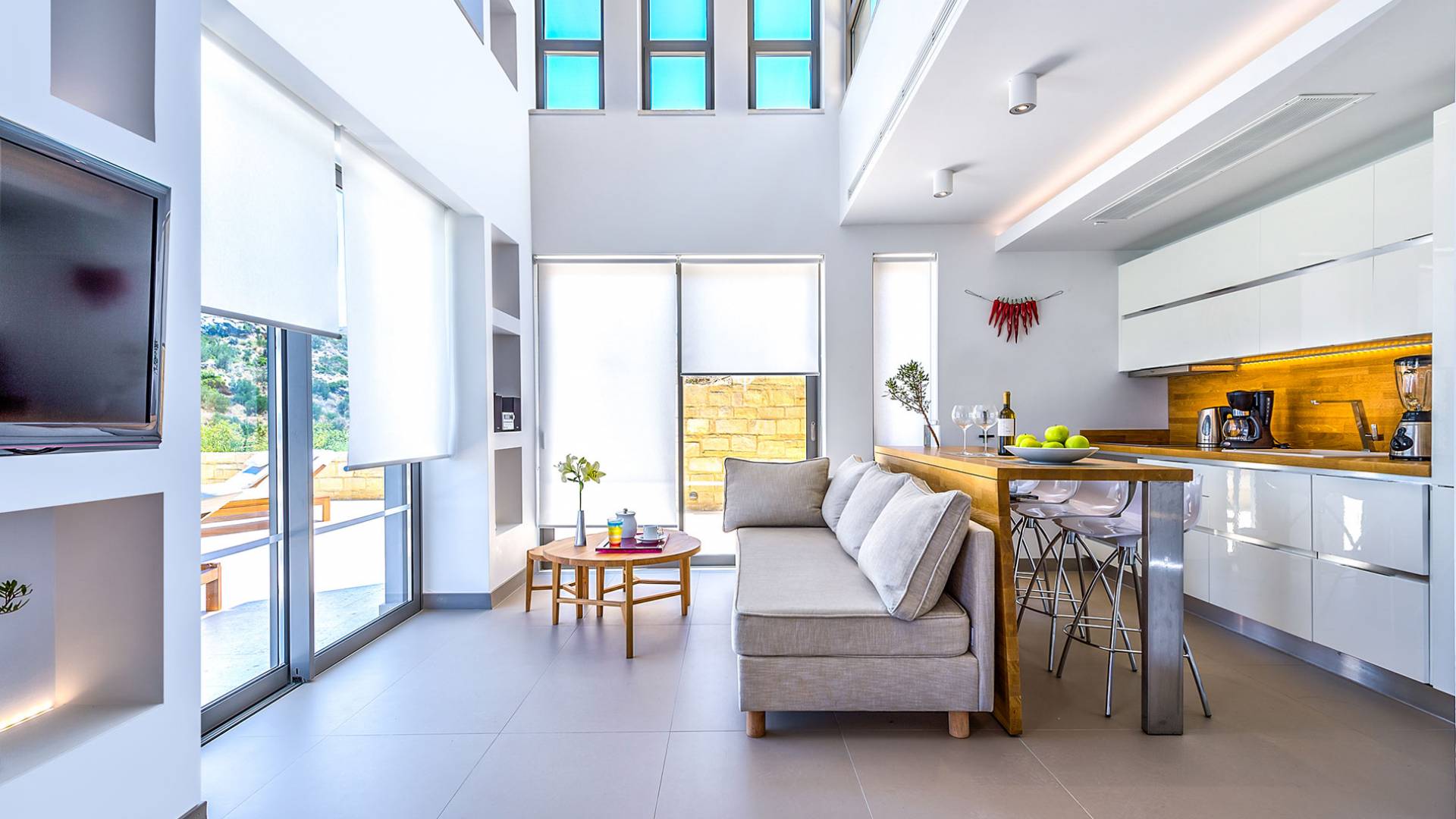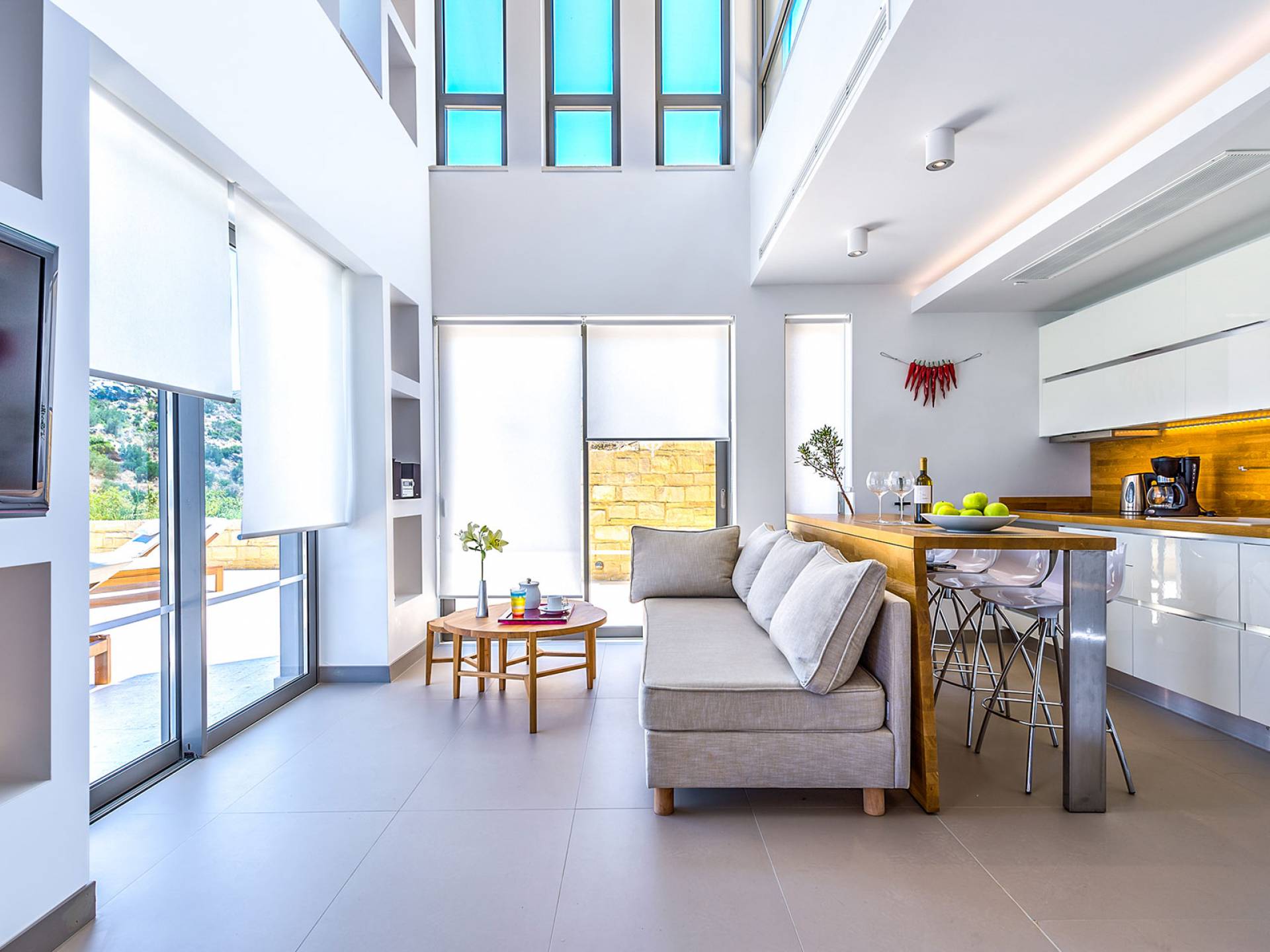 Die stilistischen Details der Harmony Villa verleihen dieser wunderschönen Komposition den letzten Schliff und garantieren unvergessliche Ferien auf Kreta. Die Villa Harmony dient als Ihr privater Rückzugsort, in dem Sie den Mythos von Kreta mit seinen langlebigen Meeren und vielfältigen Landschaften erkunden.