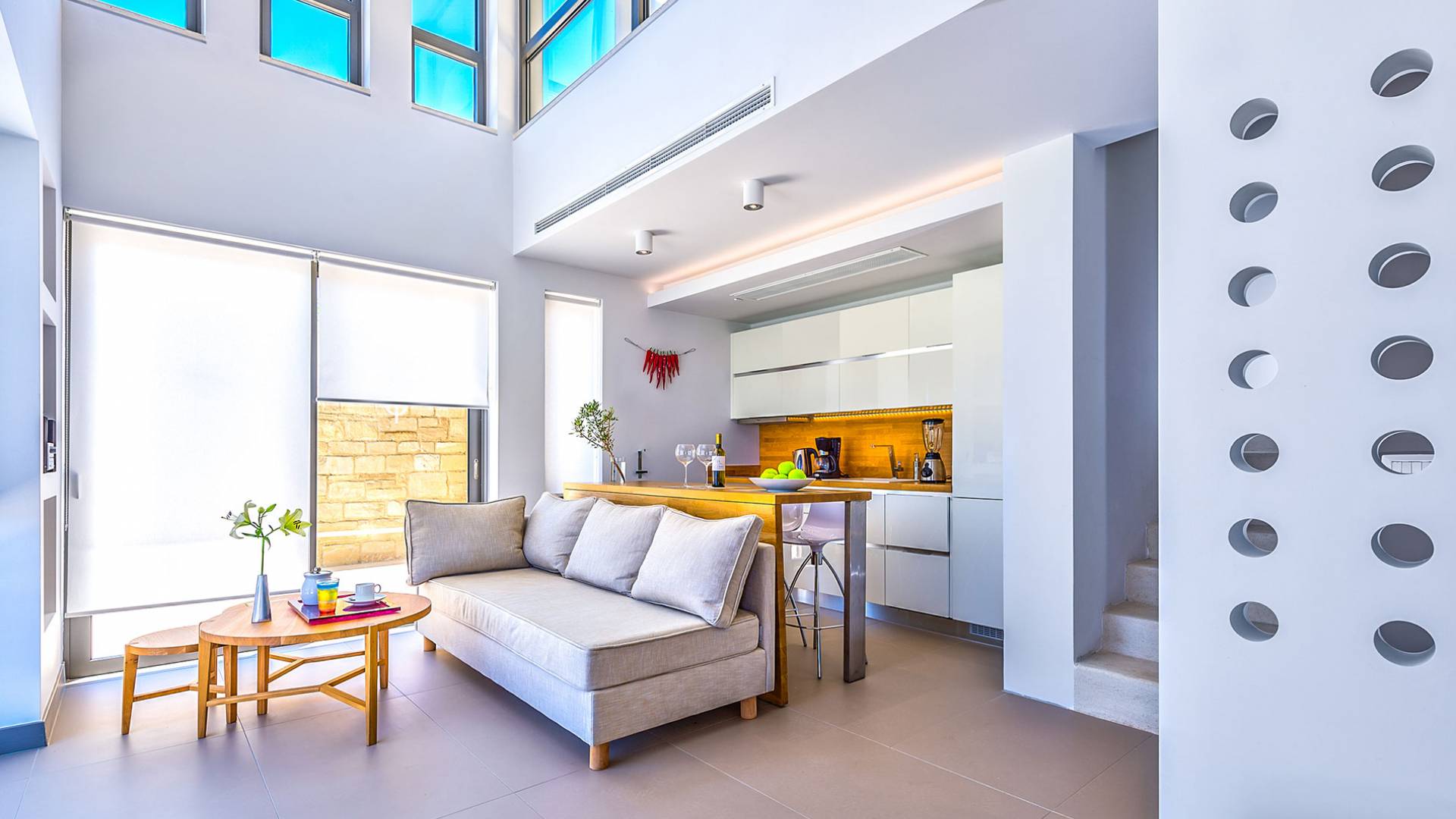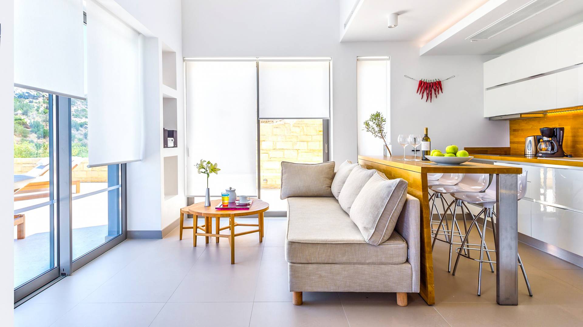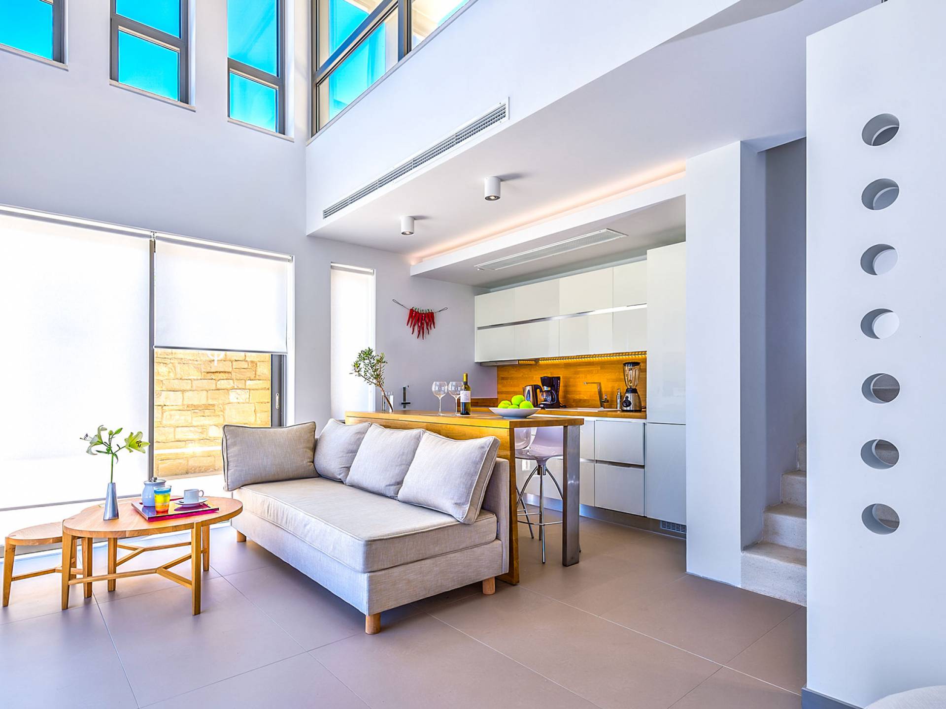 Die stilistischen Details der Harmony Villa verleihen dieser wunderschönen Komposition den letzten Schliff und garantieren unvergessliche Ferien auf Kreta. Die Villa Harmony dient als Ihr privater Rückzugsort, in dem Sie den Mythos von Kreta mit seinen langlebigen Meeren und vielfältigen Landschaften erkunden.