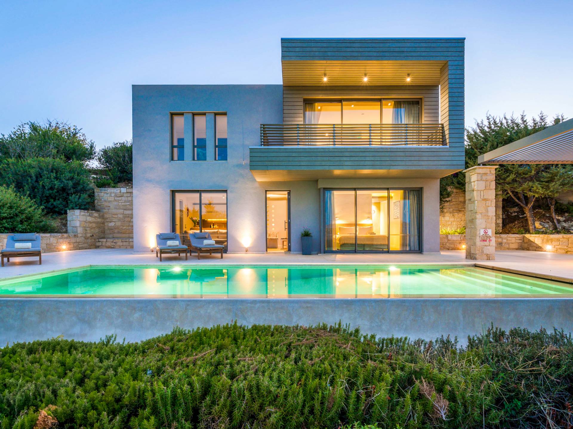 Harmony Villa Chania steht für Ruhe und Privatsphäre. Auf einem grünen Hügel mit Blick auf die ewige Ägäis bietet die Villa Harmony einen herrlichen Panoramablick und faszinierende Sonnenuntergänge, die den endlosen Horizont in einer lebendigen Palette färben. Die Villa liegt in Frieden mit ihrem umgebenden natürlichen Ambiente, das die süßesten Düfte des traditionellen Kretas festhält und sie mit modernen Elementen verbindet, um Komfort und Luxus in jedem Moment zu gewährleisten.