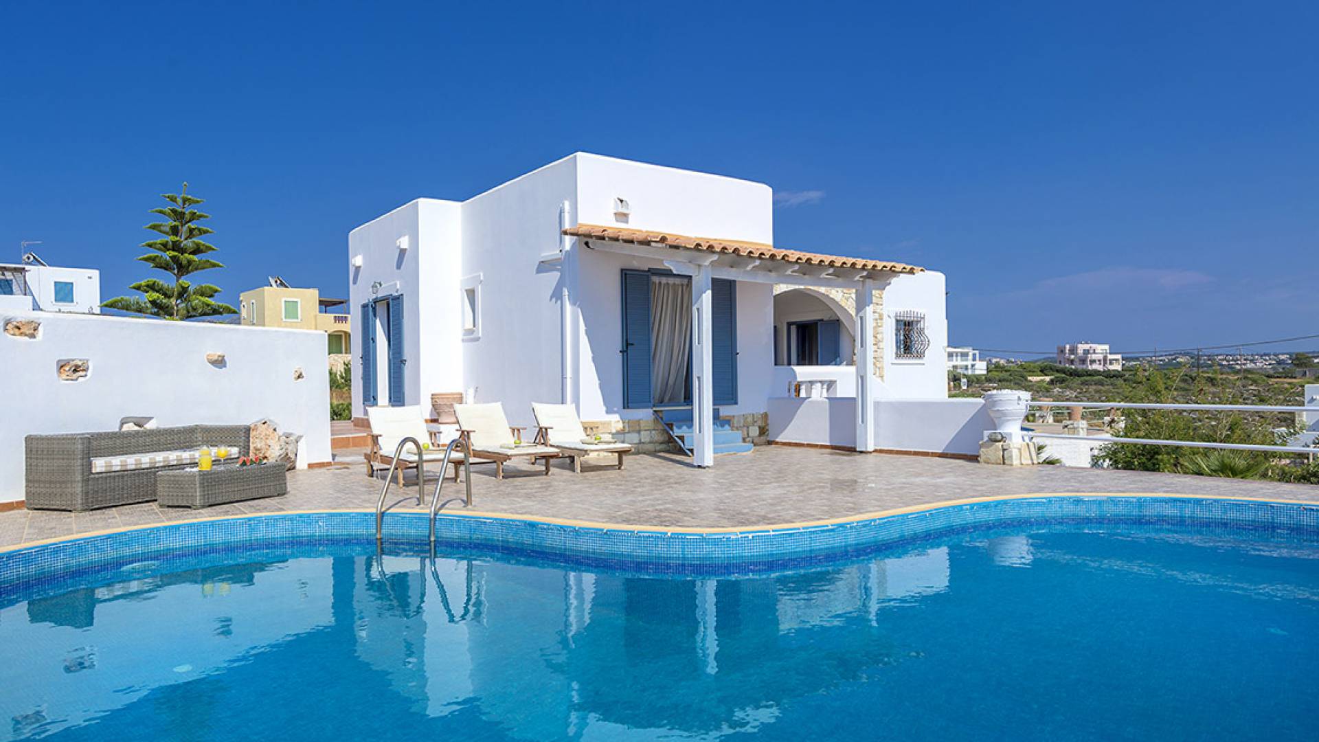 Farbe blau, Sonne und Luxus, nichts kann diese Kombination übertreffen. Was gibt es sonst noch für Ihren Urlaub zu fragen? Gönnen Sie sich einen beheizten privaten Pool in der Gemütlichkeit Ihrer eigenen Villa, entweder drinnen oder draußen. Das…