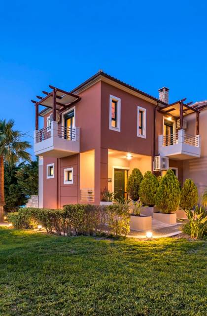 Myrtia Villa ist eine luxuriöse Maisonette von 110 m², die inmitten riesiger üppiger Gärten gebaut wurde und einen großartigen Meerblick und Dienstleistungen in absoluter Privatsphäre bietet. Villa Myrtia verfügt über einen eigenen privaten Pool (80 m²), Parkplatz. Es ist mit Sat-TV, DVD- und CD-Player, WLAN-Internetzugang, einem Badezimmer mit Whirlpool und Luxuskosmetik, einer voll ausgestatteten Küche, einer Waschmaschine, einem Kühlschrank, einem Gefrierschrank, einem Kamin, einer Klimaanlage ausgestattet. Klimaanlage, Heizung. Beide Etagen verfügen über geräumige Veranden, auf denen Sie Ihr Frühstück oder leichte Snacks mit Blick auf das Meer genießen können. Es ist ideal für romantische Kurzurlaube und absolute Entspannung, da die Gäste einen wahren Urlaub genießen können, der die Ruhe der Landschaft genießt und sich in der Nähe aller wichtigen Sehenswürdigkeiten befindet. Gäste können den täglichen Reinigungsservice und den Wechsel von bestickter Bettwäsche und Handtüchern, Strandtüchern, Massagen, Aromatherapie-Sitzungen im Marmor-Hamam, Zimmerservice und Babysitting genießen.
