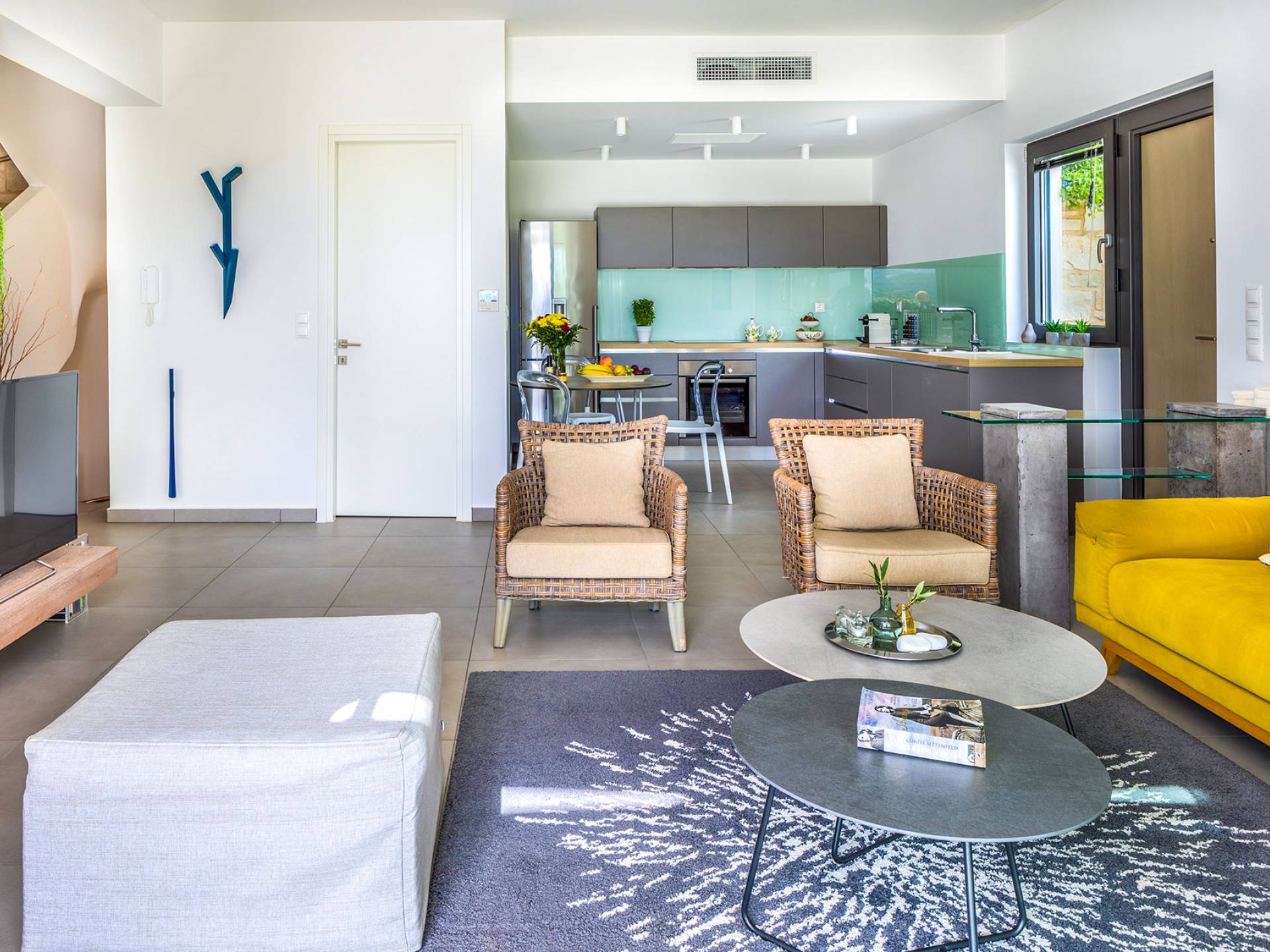 Die Gäste haben die Möglichkeit, sich in den hübschen und stilvollen Wohnbereichen zu entspannen, sich in den gemütlichen Wohnbereichen zurückzulehnen und die bereitgestellten luxuriösen Einrichtungen zu genießen. Die moderne und voll ausgestattete Küche ermöglicht es den Gästen, eine Mahlzeit ihrer Wahl mit Kräutern aus dem Garten zuzubereiten. Egal, ob Sie eine private Luxusvilla in Griechenland oder einen entspannenden Ort für Ihren Urlaub suchen, die Nova Villa Chania ist der perfekte Ort! Stellen Sie sich vor, Sie legen sich nach einem Bad im Pool oder einer erfrischenden Dusche im Wasserfall auf die Sonnenliege und blicken auf die malerische Landschaft von Almyrida und die wunderschönen Weißen Berge.